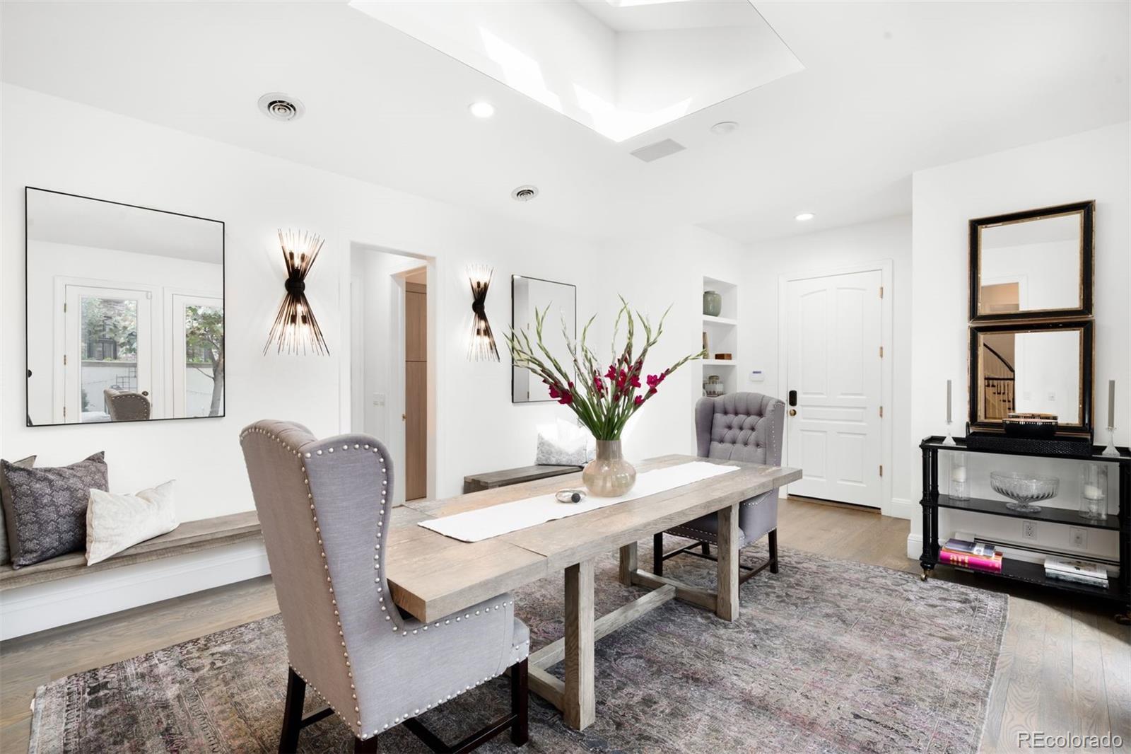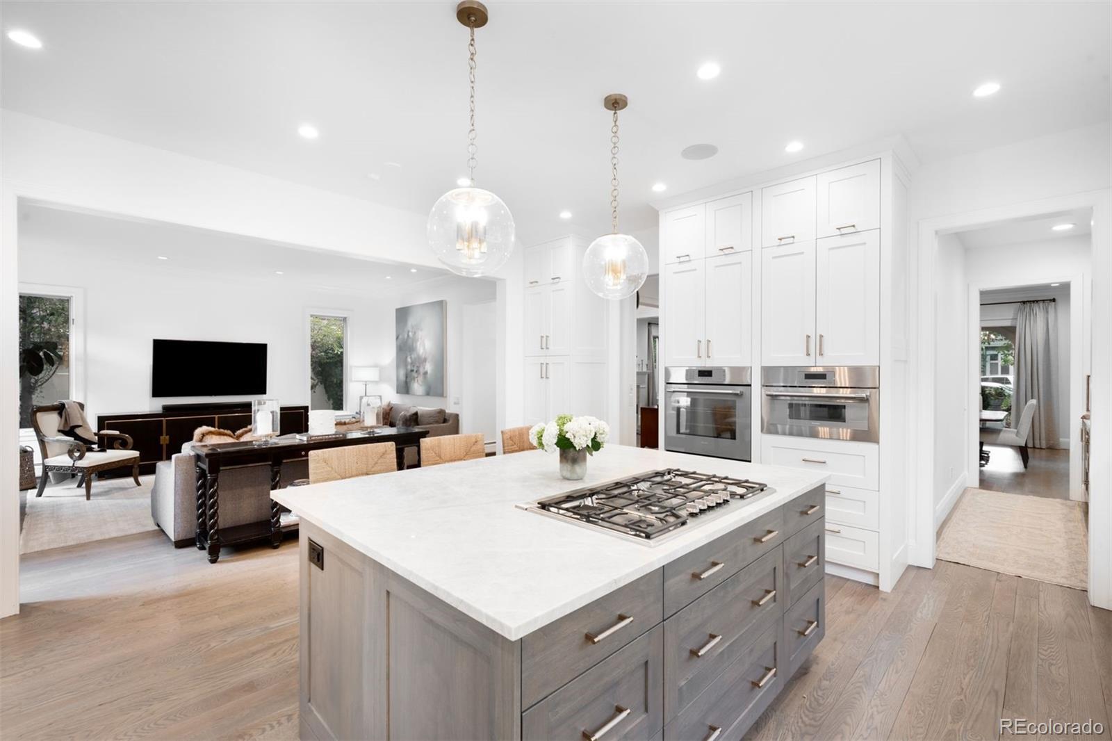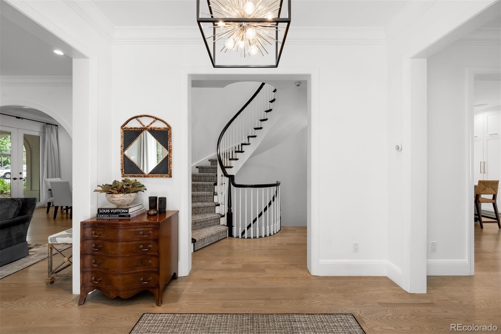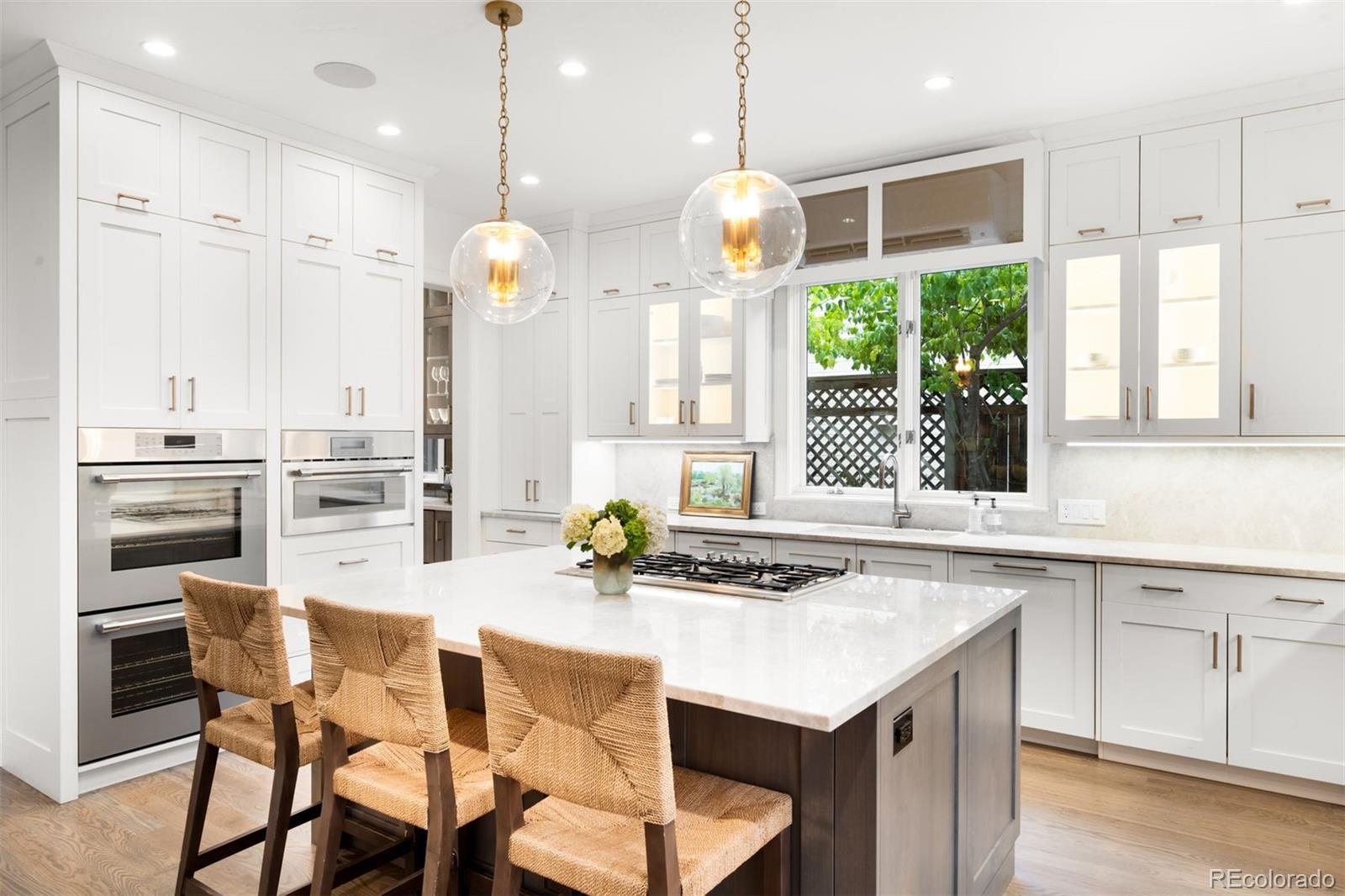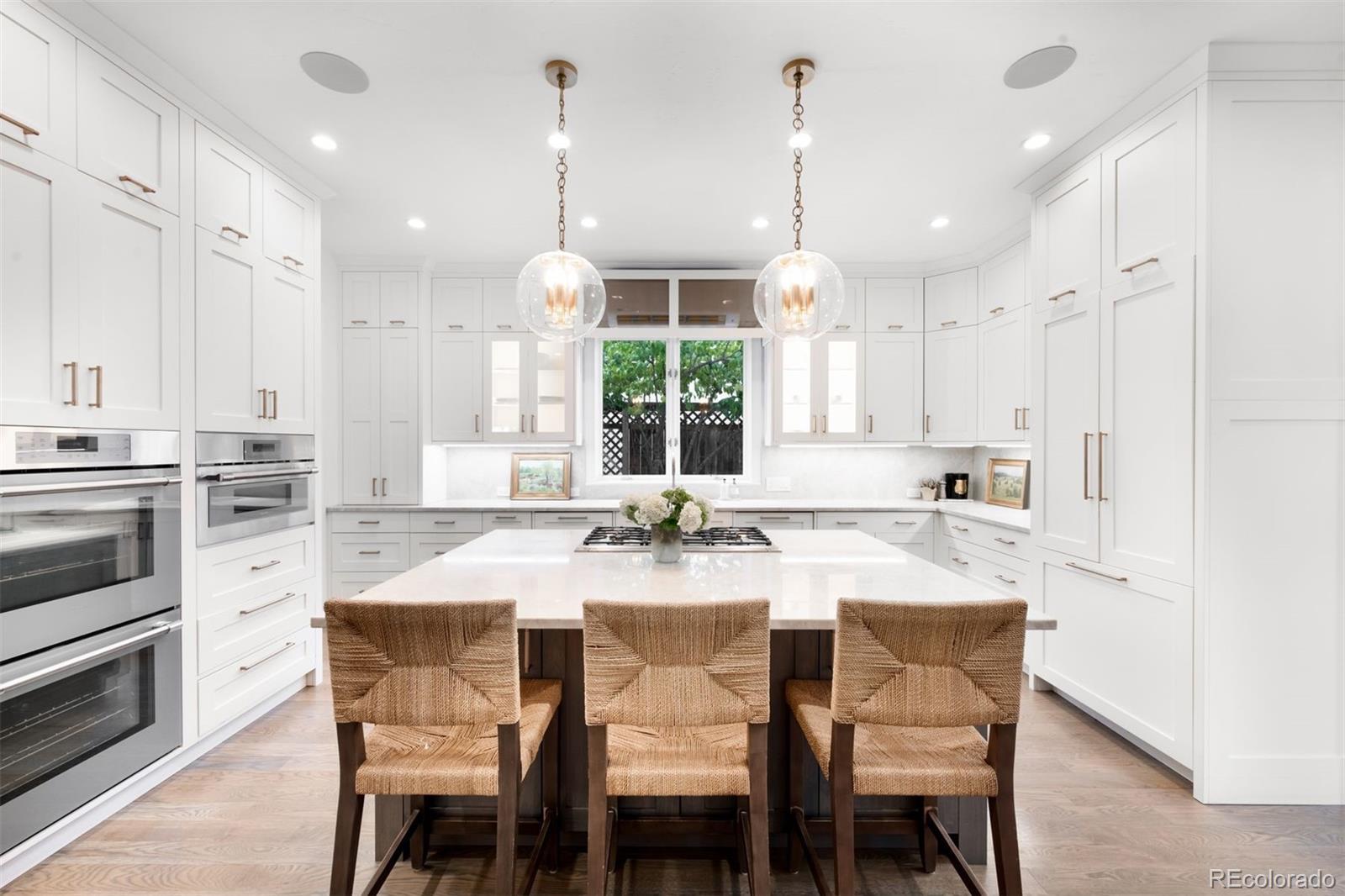 One of Cherry Creek North’s most sought-after blocks! An exquisite single-family home in the heart of Cherry Creek North with thoughtful updates throughout. This transitional style home was recently renovated with a gorgeous high-end kitchen, white oak wood flooring throughout the main and upper level, designer wallpaper, new paint, and updated baths. The kitchen boasts two dishwashers, two warming drawers, an oversized refrigerator, gas cook top, double ovens, customized cabinetry, a butler's pantry and a gorgeous creamy leathered granite countertop. There is a perfect blend of formal and casual living spaces throughout this spacious home. Featuring five bedrooms, six baths, and a rare oversized three-car attached garage with an additional parking space outside the garage. A dramatic three-story circular staircase anchors the home, complemented by custom millwork, refined built-ins, soaring ceilings, and an open, light-filled floor plan. The basement boasts a large family room with a bar area, two additional bedrooms and baths, and a ton of storage. The multiple outdoor spaces are impressive with a sprawling front patio and lawn, a spacious balcony upstairs, and a private backyard/courtyard area with a water feature. This is an ideal property for entertaining. With unmatched walkability, you’ll enjoy easy access to Cherry Creek’s finest restaurants, boutiques, galleries and the award winning Bromwell elementary. A true one-of-a-kind retreat, this home offers an extraordinary opportunity to live in Denver’s most prestigious urban neighborhood.