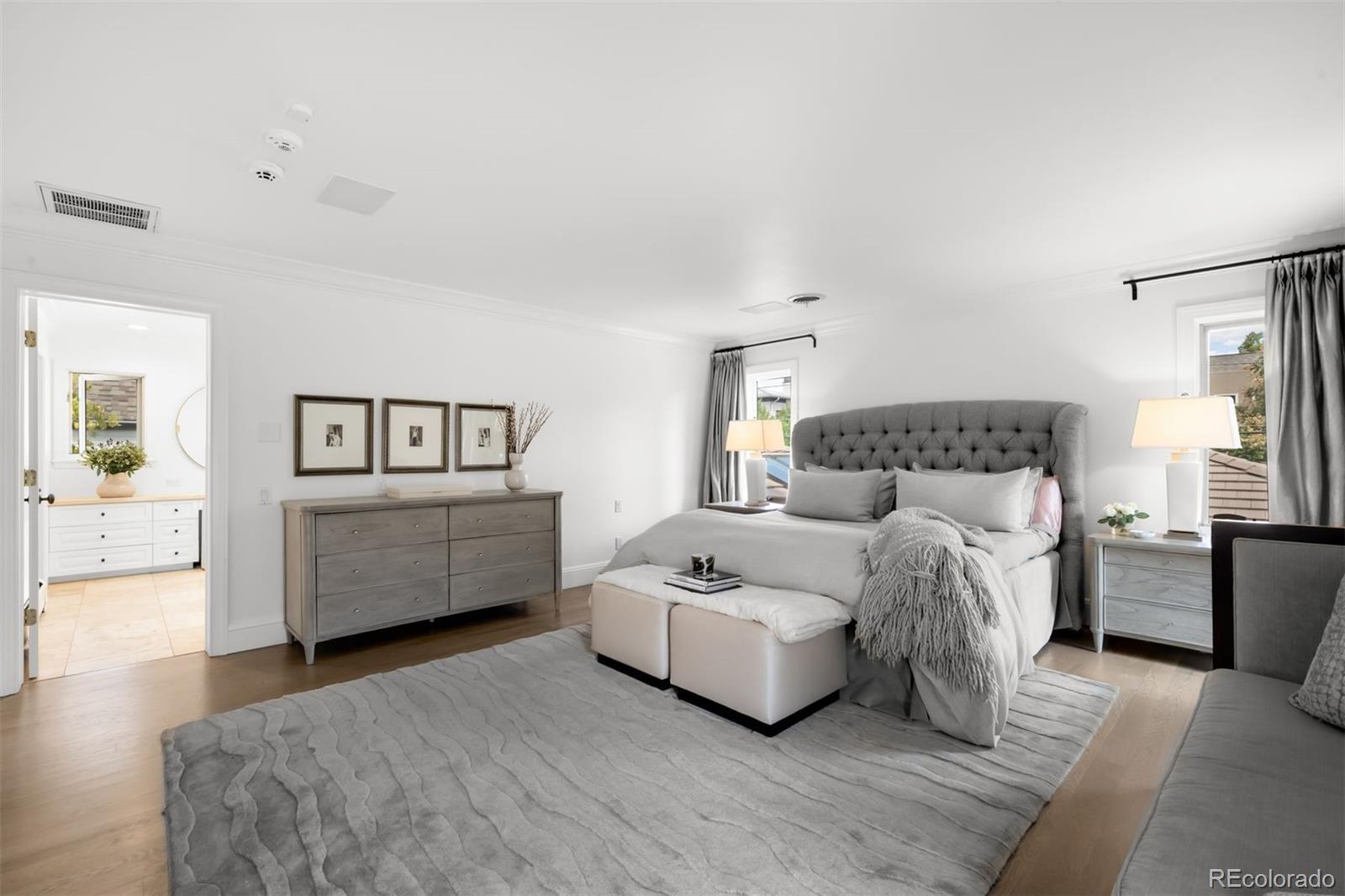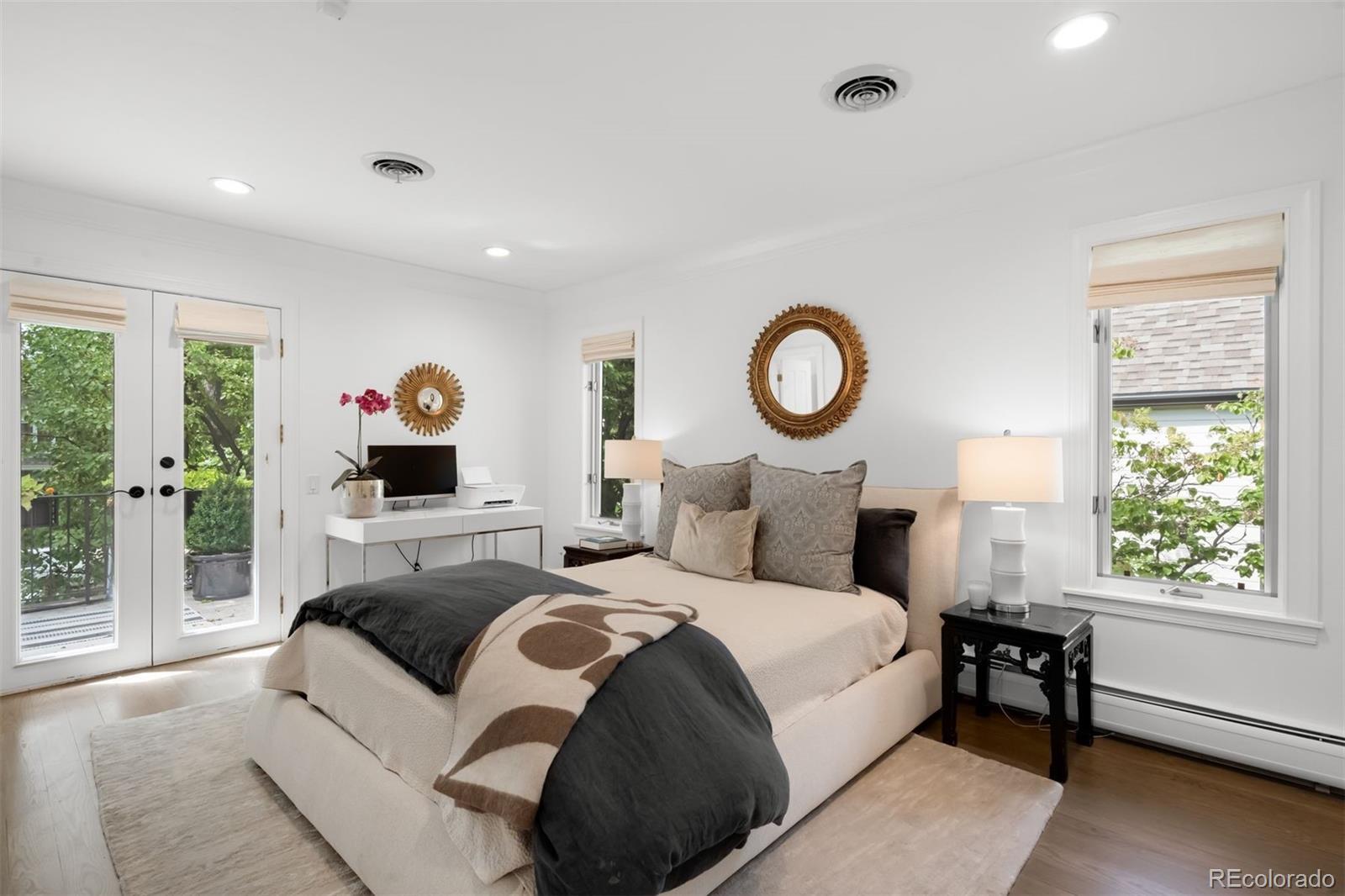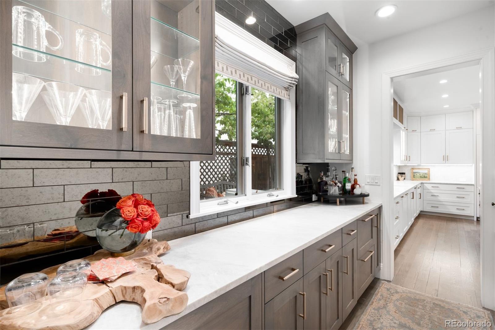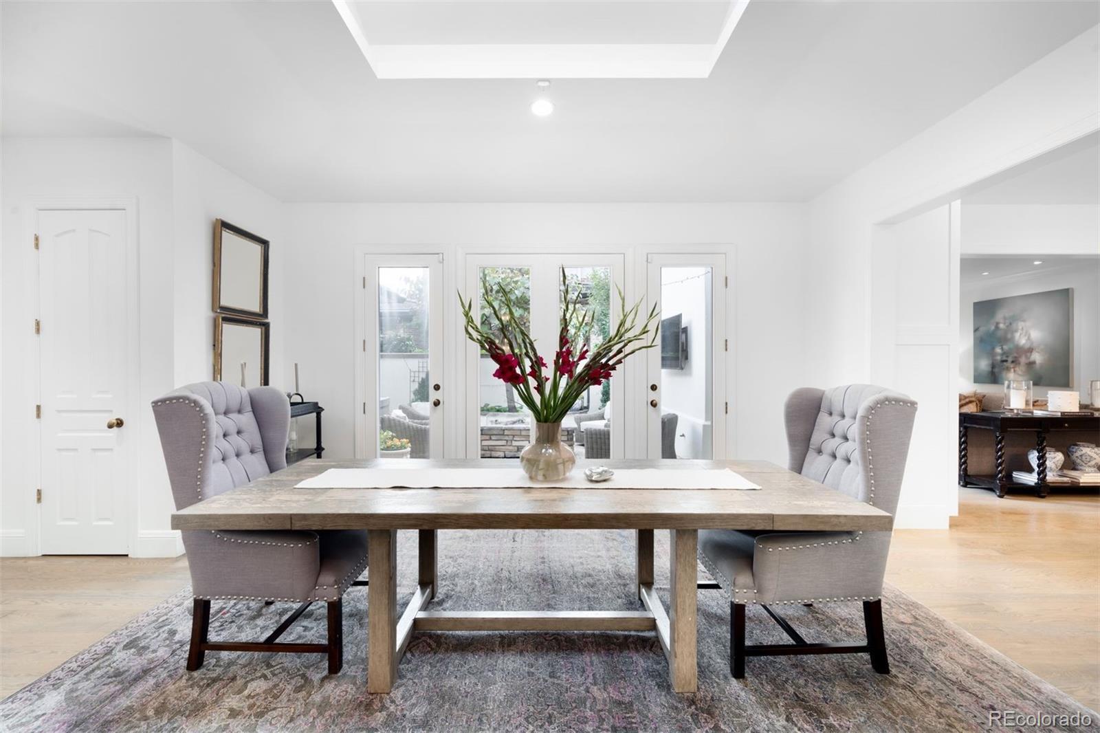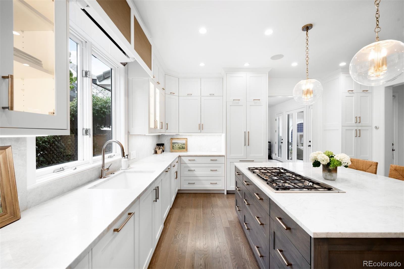 One of Cherry Creek North’s most sought-after blocks! An exquisite single-family home in the heart of Cherry Creek North with thoughtful updates throughout. This transitional style home was recently renovated with a gorgeous high-end kitchen, white oak wood flooring throughout the main and upper level, designer wallpaper, new paint, and updated baths. The kitchen boasts two dishwashers, two warming drawers, an oversized refrigerator, gas cook top, double ovens, customized cabinetry, a butler's pantry and a gorgeous creamy leathered granite countertop. There is a perfect blend of formal and casual living spaces throughout this spacious home. Featuring five bedrooms, six baths, and a rare oversized three-car attached garage with an additional parking space outside the garage. A dramatic three-story circular staircase anchors the home, complemented by custom millwork, refined built-ins, soaring ceilings, and an open, light-filled floor plan. The basement boasts a large family room with a bar area, two additional bedrooms and baths, and a ton of storage. The multiple outdoor spaces are impressive with a sprawling front patio and lawn, a spacious balcony upstairs, and a private backyard/courtyard area with a water feature. This is an ideal property for entertaining. With unmatched walkability, you’ll enjoy easy access to Cherry Creek’s finest restaurants, boutiques, galleries and the award winning Bromwell elementary. A true one-of-a-kind retreat, this home offers an extraordinary opportunity to live in Denver’s most prestigious urban neighborhood.