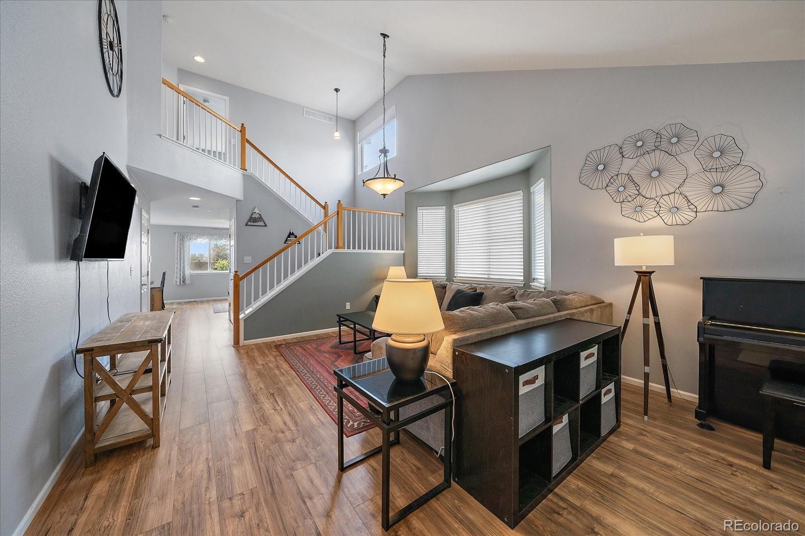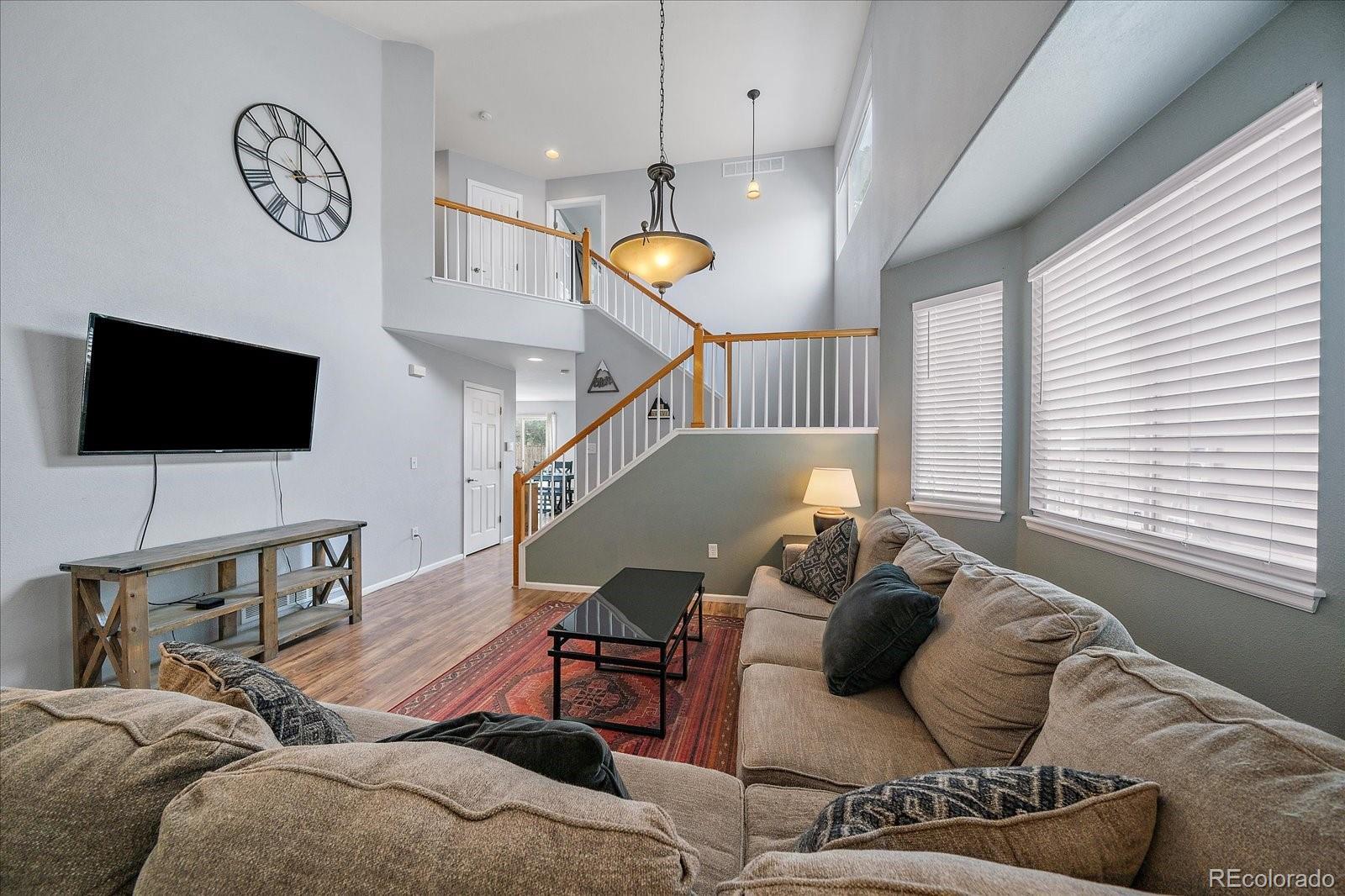 Bright and Spacious Living in Reunion - Where tree-lined streets, established parks, and exceptional community amenities create a lifestyle you’ll love. This beautifully designed two-story residence offers 5 bedrooms, 4 bathrooms, and multiple living areas thoughtfully arranged. Step inside to find soaring ceilings in the living room and sitting area, with large windows that flood the space with natural light. The family room fireplace anchors the open-plan living, dining, and kitchen area, making it the heart of the home where everyday moments and special occasions naturally unfold. The kitchen features a generous center island, sleek finishes, and plenty of storage—perfect for both casual family meals and entertaining guests. Upstairs, the primary suite is a serene retreat with a large walk-in closet. The ensuite adds a touch of luxury with its sliding barn door, freestanding tub, walk-in shower, and WC. Additional bedrooms and bathrooms offer everyone their own private space, while the home’s versatile layout provides room for both gatherings and quiet moments. Outdoors, the fully fenced backyard is level and spacious and ideal for entertaining and gardening. A rear patio invites summer barbecues or evening relaxation under the stars, while the triple garage ensures convenience and extra storage. Living in Reunion means more than just a home—it’s a community lifestyle. Residents enjoy access to multiple parks, walking trails, sports fields, and a recreation center with pool and fitness facilities. The neighborhood is dotted with lakes, open green spaces, and playgrounds, creating a warm and welcoming environment. Conveniently located, this property offers easy access to Denver, Brighton, Northglenn, Thornton, and Denver International Airport. Whether commuting for work or exploring Colorado’s outdoor lifestyle, you’ll appreciate the balance of suburban tranquility and city convenience.