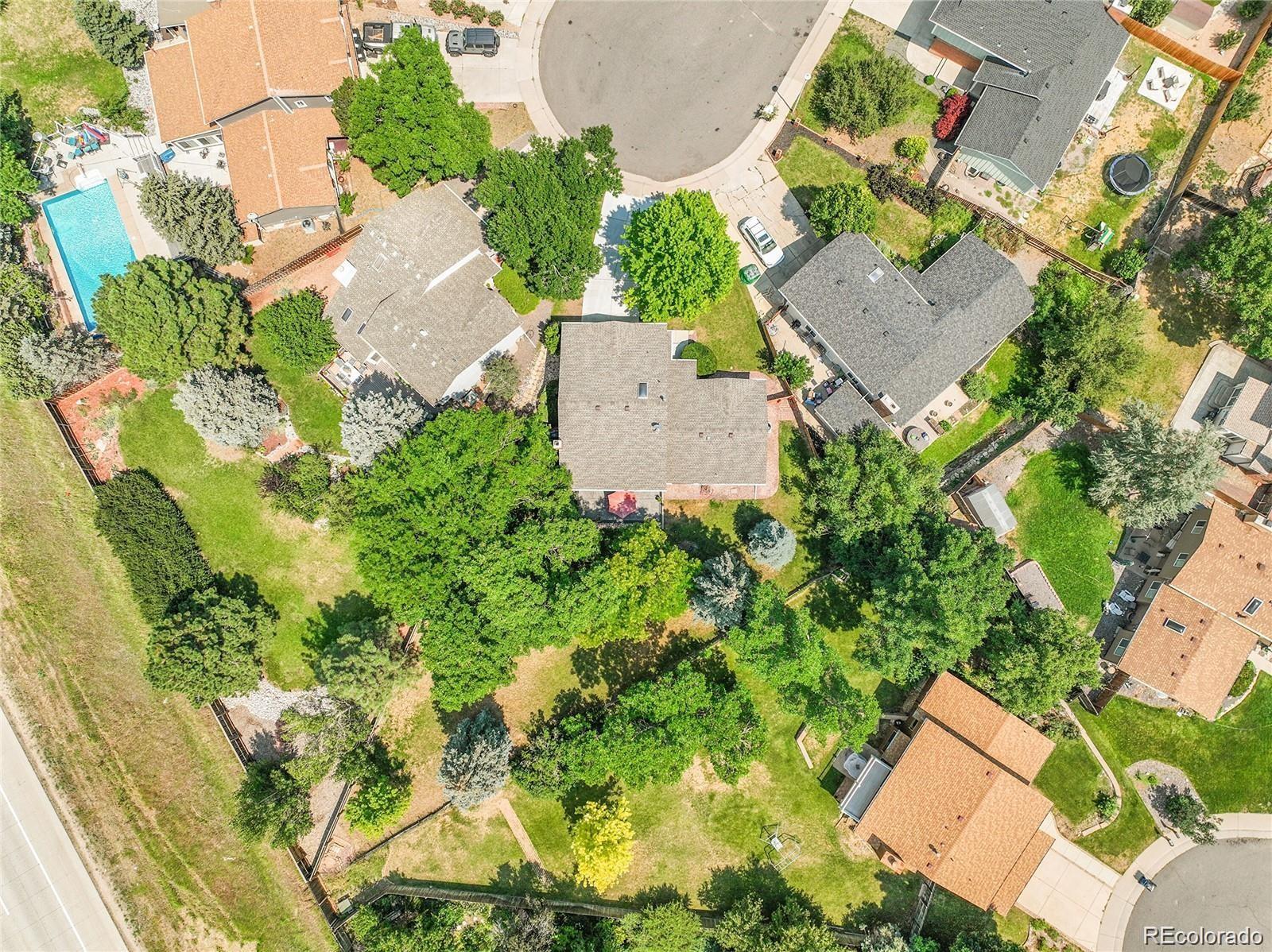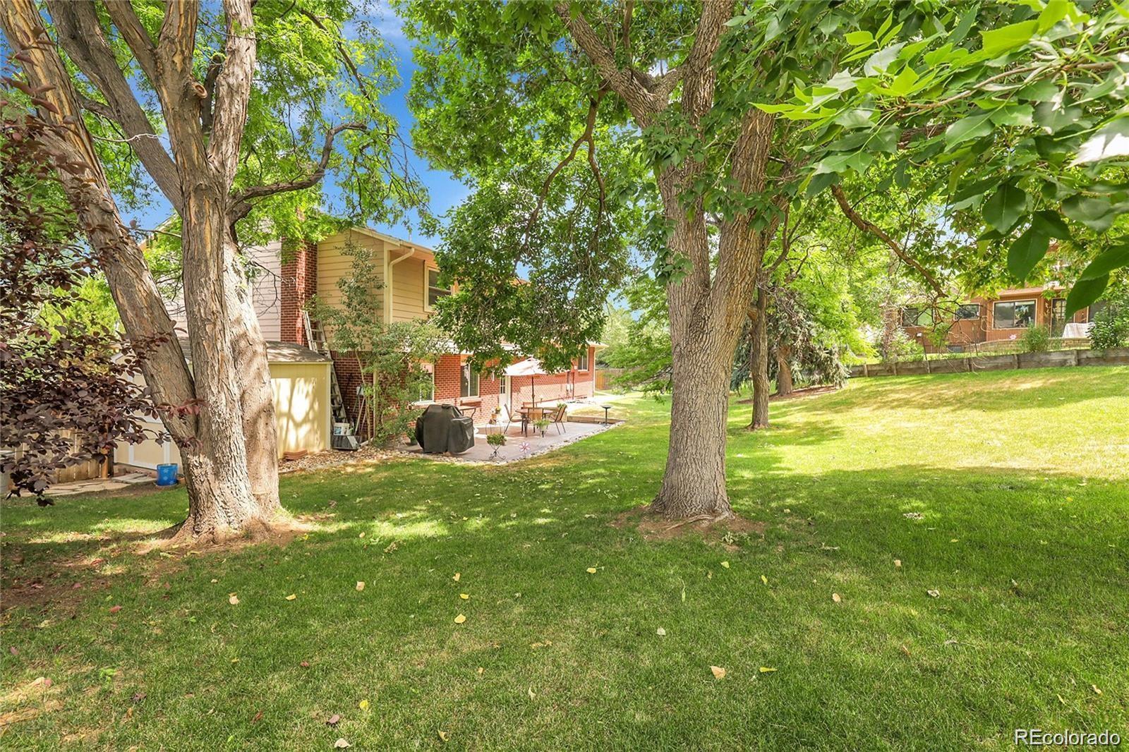 Nestled on a quiet cul-de-sac, this beautifully maintained home sits on an expansive .26-acre lot surrounded by mature landscaping, offering privacy and plenty of room to relax, garden, or entertain. Step inside to discover a thoughtful floor plan featuring 4 bedrooms, 3 bathrooms, and over 2,800 square feet of living space. The main level showcases rich wood floors, a welcoming formal living and dining area, and a spacious eat-in kitchen with Corian countertops and ample cabinet space. The cozy family room, complete with a wood-burning fireplace, opens seamlessly to the backyard, stamped concrete patio. Perfect for Colorado evenings spent with family and friends. Upstairs, you’ll find three generously sized bedrooms and two baths, including a primary suite with a gorgeous en-suite bath remodeled with italian marble. The finished basement provides additional versatility with a fourth bedroom - ideal for guests, home office, gym, or multi-generational living. Recent updates include fresh paint, new roof 2023, upgraded electrical panel, air conditioning, and a radon mitigation system, ensuring comfort and peace of mind. Enjoy the serenity of a large, private yard with mature trees, a garden area, and plenty of room to play or unwind. Located in the sought-after Jefferson County School District, just minutes from Dutch Creek Elementary, Ken Caryl Middle, Columbine High, local parks, and miles of trails, This home perfectly blends community, convenience, and classic Colorado living.
