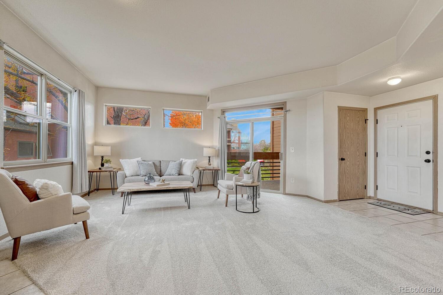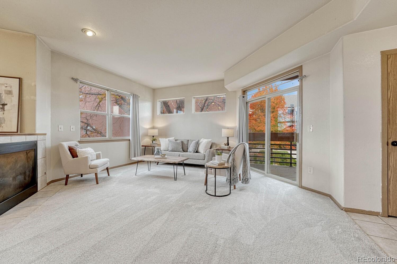Step inside to find brand-new carpet in the living and dining areas, complemented by a cozy fireplace that sets the perfect mood for relaxing evenings or hosting friends and family. Two convenient coat closets add a touch of practicality for your guests. From the living room, step out onto your private balcony and take in the serene views of the beautifully landscaped courtyard and open green space below. The spacious kitchen opens to the main living area and offers abundant cabinets and generous countertop space—ideal for cooking, entertaining, and creating memories together. Your primary suite is a true retreat, featuring a private ensuite bath, large walk-in closet, and new carpet throughout. The second bedroom has its own direct bathroom access, complete with a brand-new sink, offering both comfort and convenience. Don’t miss your chance to make this welcoming home yours! Call 303-324-1281 today to schedule your private showing!