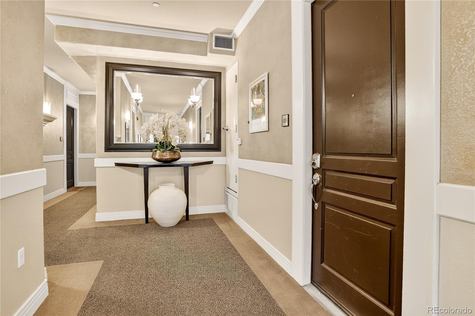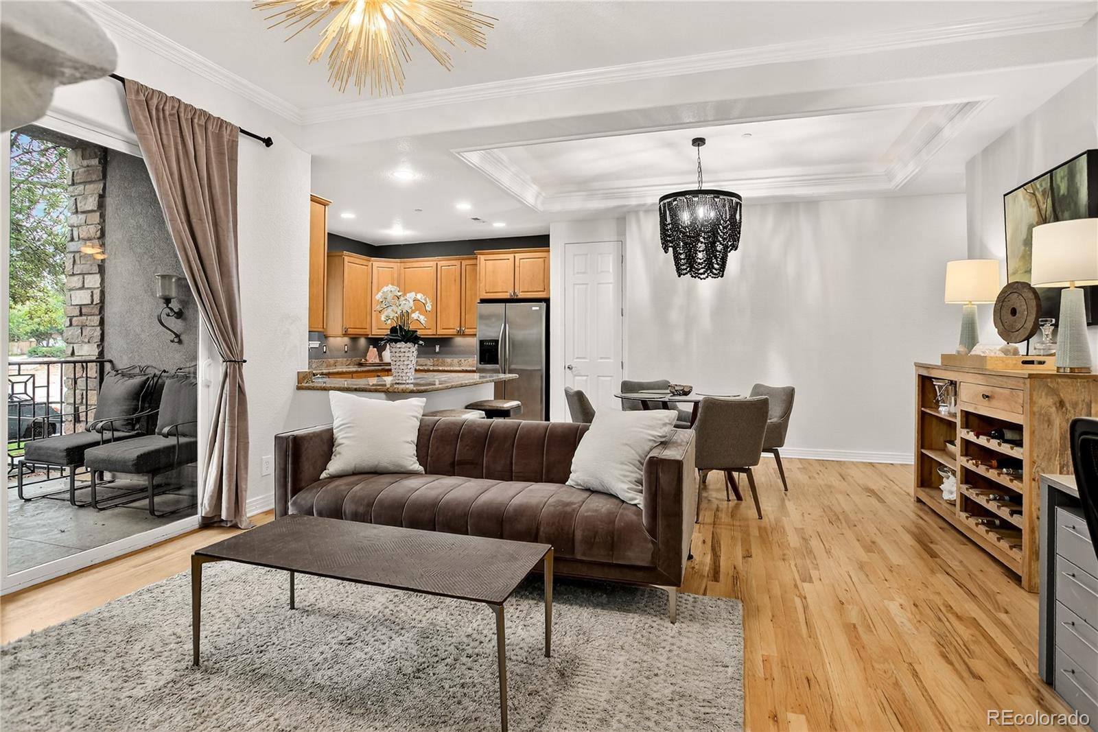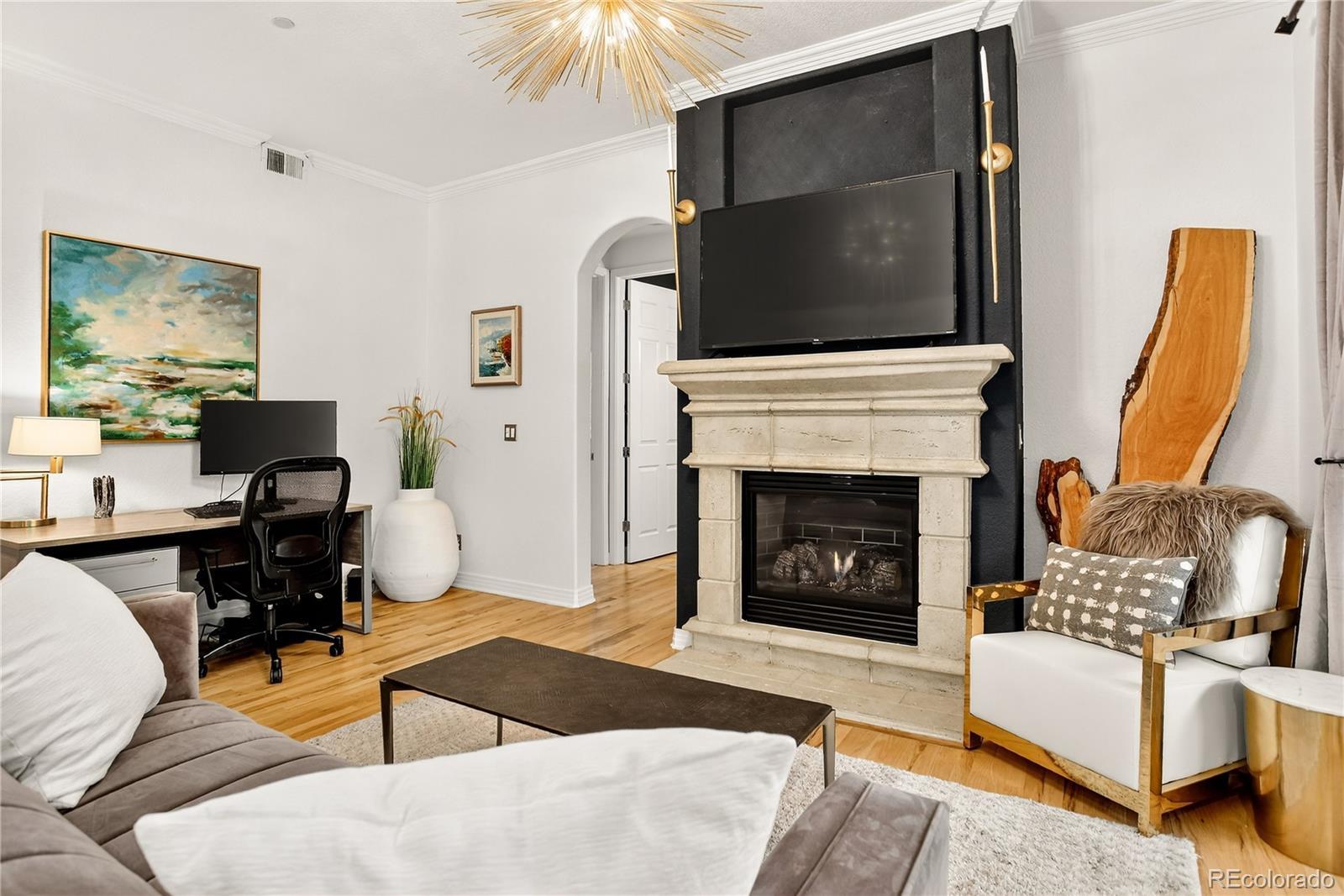 Welcome to this beautifully appointed 2-bedroom, 2-bath condo in the heart of Cherry Creek North, where upscale living and unmatched convenience come together. Step inside to rich hardwood floors that flow through the open-concept kitchen, dining, and living area. The kitchen shines with slab granite countertops, abundant cabinetry, pantry storage, newly replaced gas range, and stainless steel appliances. Elegant crown molding, tray ceiling details, and a stone-accented gas fireplace create a designer feel throughout the space. The spacious primary suite is a true retreat, featuring a 5-piece bath with a large soaking tub, dual sinks, tile flooring, and a generous walk-in closet. The secondary bedroom is served by a full bath with tile finishes. Recent upgrades include new interior paint, designer light fixtures, recently insulated ceiling to reduce noise, and a new washer and dryer. Enjoy the convenience of a large laundry room, two heated garage parking spaces, and elevator access. The oversized patio offers a private, tranquil escape, surrounded by mature trees. Situated on a quiet street yet just blocks away from the very best of Cherry Creek North—boutique shopping, art galleries, fine dining, tennis, parks, and the Cherry Creek Trail—you’ll enjoy the perfect balance of sophistication and lifestyle. Additional highlights include: Low HOA dues at just $340/month. Furniture negotiable. Don’t miss the opportunity to call this stunning condo home and experience all that Cherry Creek has to offer!