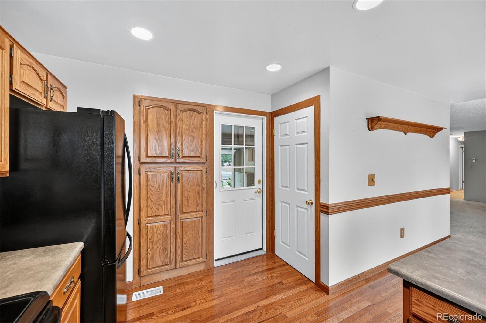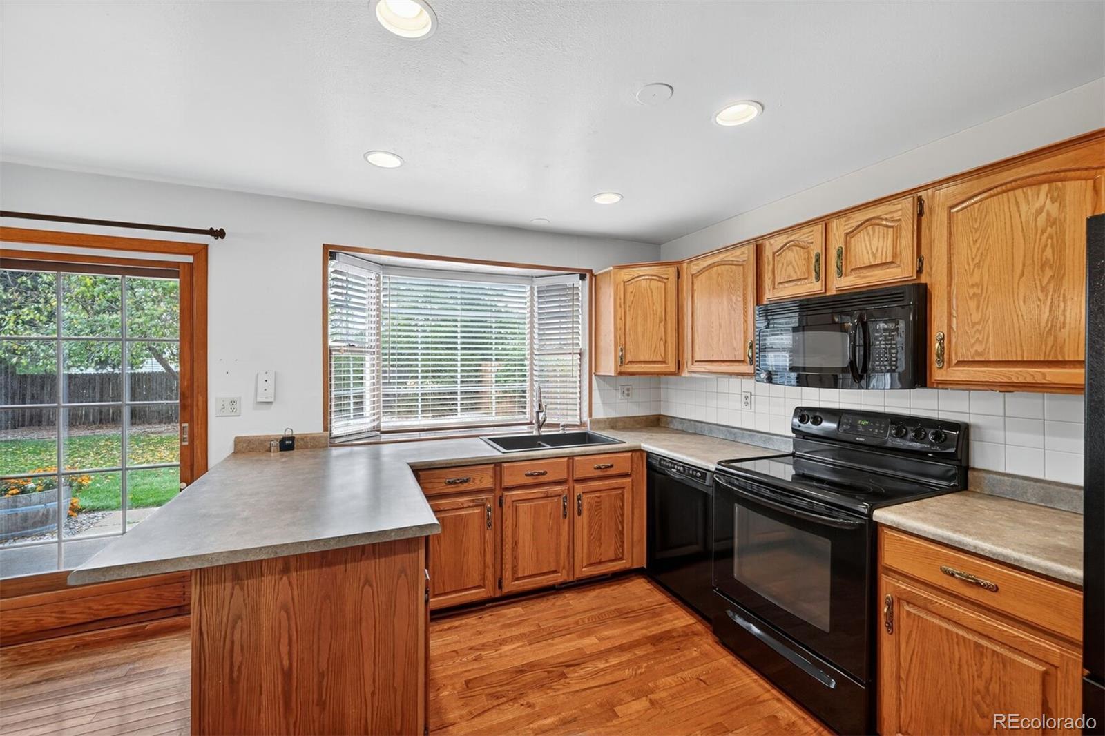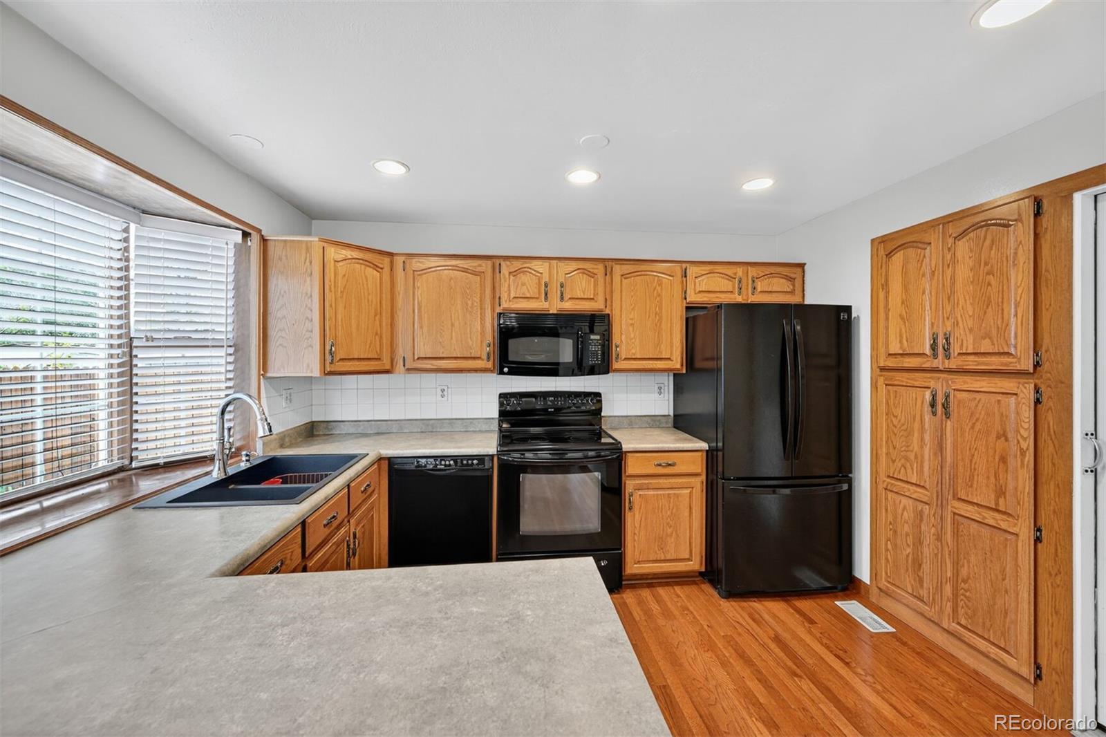 Welcome to Meadowood, a well-established, non-HOA neighborhood that offers more than just a place to live. With beautiful parks, walking trails, & a strong sense of community, this is a perfect place to enjoy life with family & friends. This charming ranch-style home features 3 bedrooms on the main level, with 1 full bath & 1 3/4 bath, plus a non-conforming bedroom in the finished basement with large closet, family room, laundry room & 3/4 bath & utility room including storage area with work room. Kitchen: Wood floors in Kitchen & breakfast area, with an island where guests can sit, built-in pantry & laminated countertops with double sink. Appliances: Refrigerator, electric stove/range/oven, microwave, dishwasher – all black color are included. The kitchen is surrounded by low Vinyl windows & bay window with lots of natural light. Living & Dining rooms with open floor plan, great for entertaining friends & family, brick gas fireplace with mantel, 6 panel doors throughout the home. Laundry room in basement with sink & additional hook ups in the garage. 2 Car oversized attached garage with storage cabinets, work bench & newer garage door opener. Concreate back patio & back yard with mature trees, sprinklers front & back (winterized October 2025), with new sprinkler heads, 6-Foot privacy fencing plus privacy gate, automated awning replaced 6 years, with a shed to store lawn care items & much more. Other features of the home: Energy efficient gas Rheem forced air furnace October 26, 2021, swamp cooler (winterized October 2025), 6 panel white doors throughout the home, newer windows, 40-gallon water heater (April 2022). Ideally located near Parker Road & I-225, parks, walking trails, schools, shopping, & dining, nestled in a prime location near Buckley Air Force Base, Cherry Creek State Park, UC Health Anschutz Medical Campus, Olympic Park, DIA, Public transit, with proximity to parks, including Olympic Park, Meadowood Park, Toll Gate Creek Trail. Welcome home!