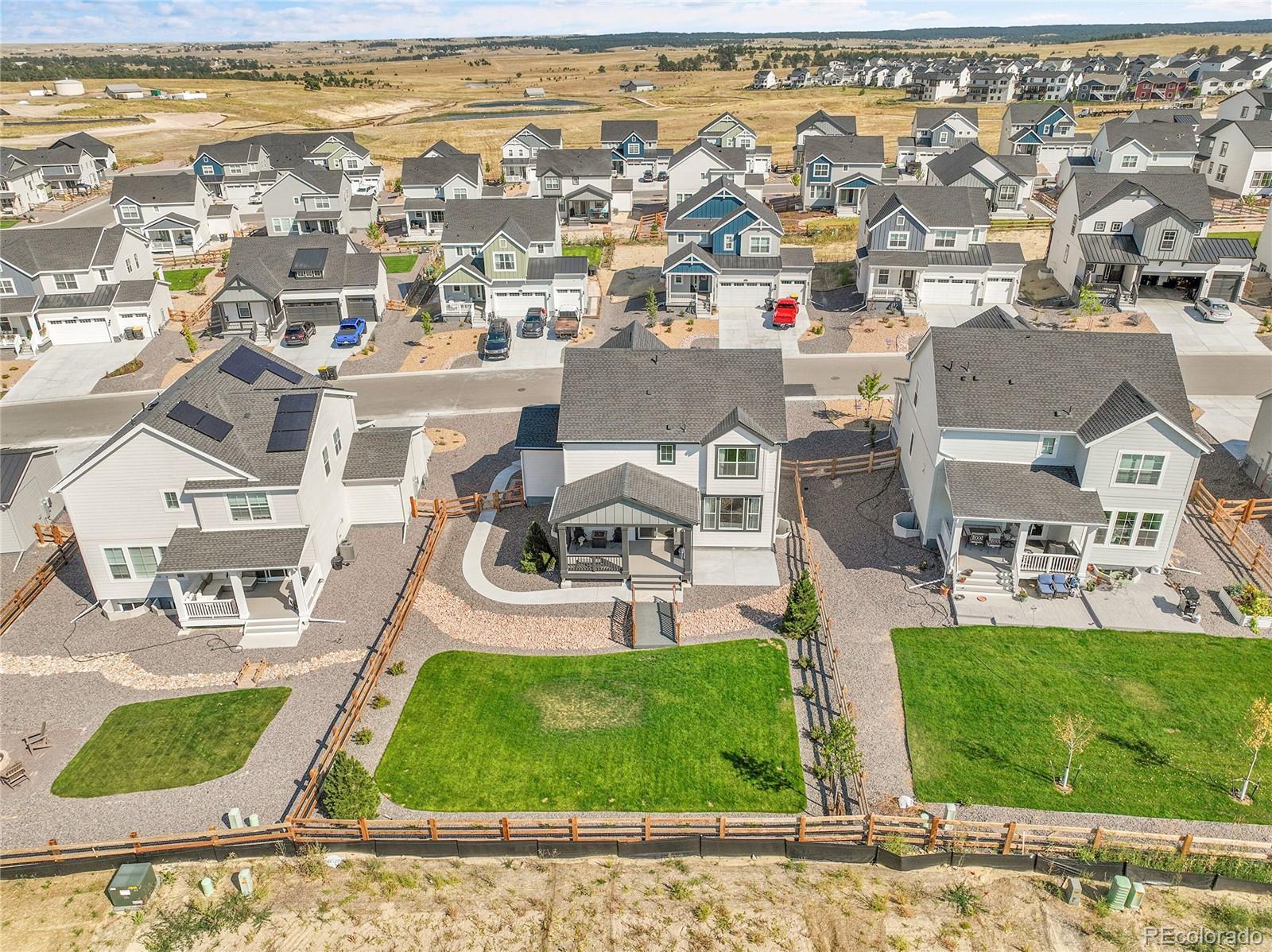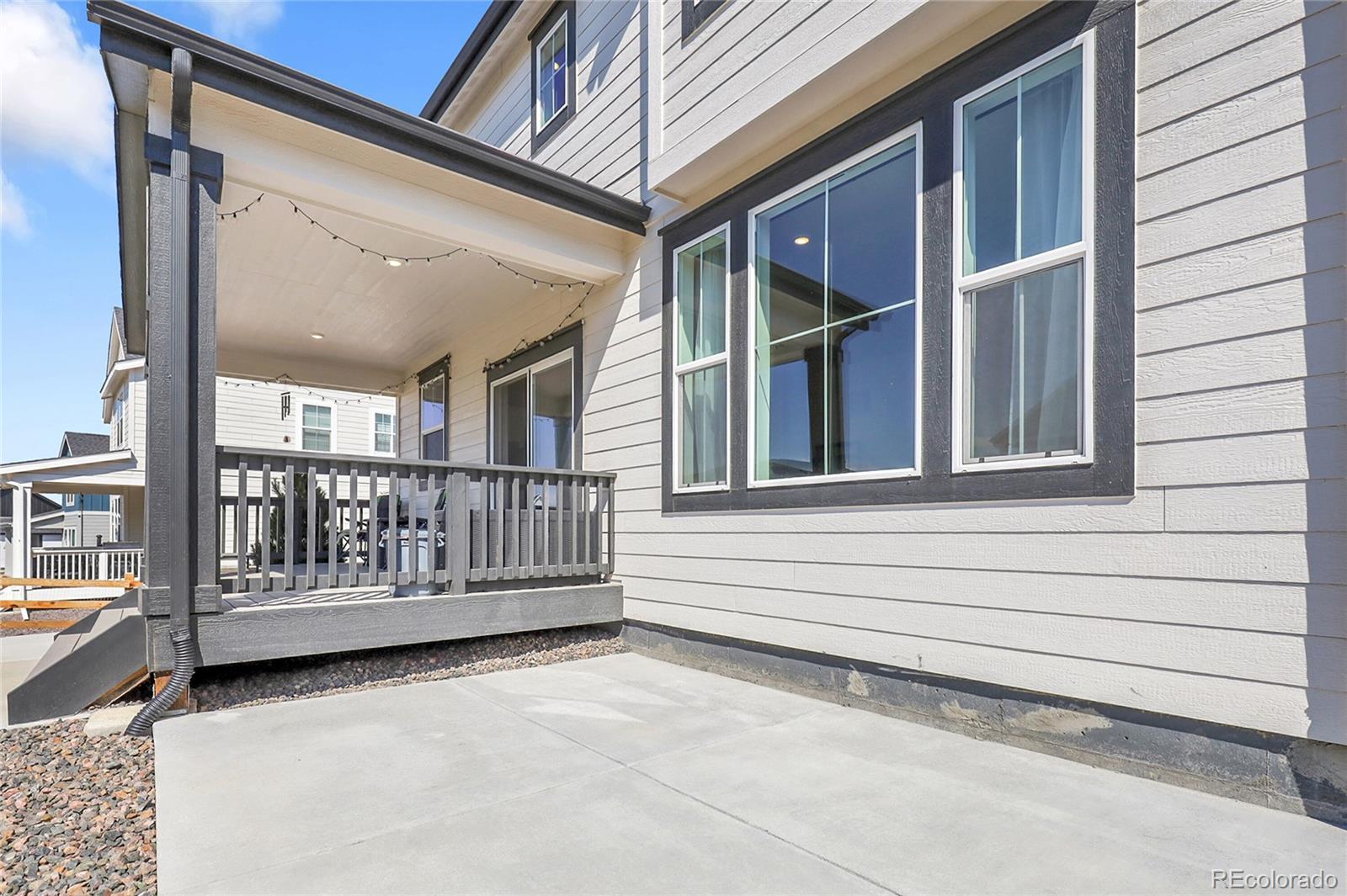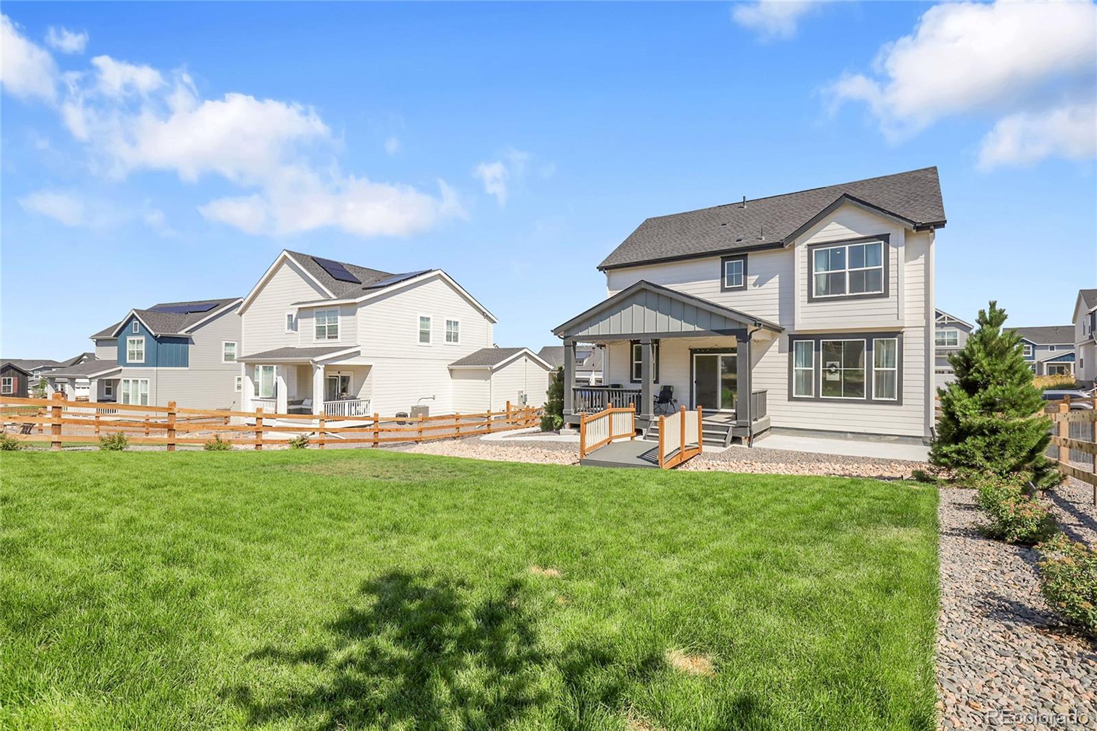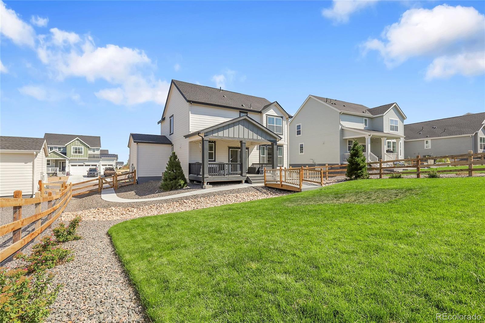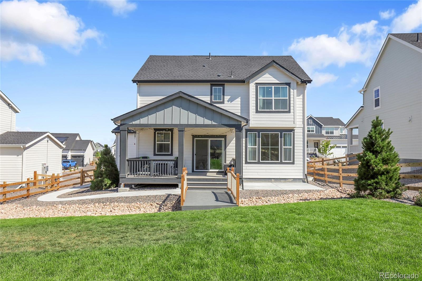 Enjoy peaceful countryside living with all the modern comforts in this stunning two-story home located in the highly sought-after Independence community. Nestled in a tranquil setting just minutes from Parker, Castle Rock, and Denver Tech Center, this Elbert County gem offers both privacy and convenience. From the moment you arrive, the expansive front covered porch welcomes you with timeless charm and curb appeal. Inside, you're greeted by a light-filled, open concept layout featuring generous living space and premium finishes that creates a warm and inviting atmosphere throughout. At the heart of the home, a gourmet kitchen with a large island and walk-in pantry is designed to impress, boasting granite countertops, stainless steel appliances, a gas stove, and upgraded cabinetry. Just off the main living area, step out to a large back covered porch overlooking $30k of beautiful, well maintained landscaping and thorough backyard upgrades, ideal for outdoor gatherings, morning coffee, or peaceful evenings. Upstairs, all bedrooms are spacious and sun-filled, including the luxurious primary suite, which features a large walk-in closet, and an elegant en-suite bathroom with dual vanities. With a full bathroom upstairs for secondary bedrooms, an upstairs laundry room, and a main level powder room, this home was thoughtfully designed to add convenience for your everyday living. A full unfinished basement is ready for your personal touch as this home offers space to grow. Additional features include: Attached 3-car garage with high ceilings for ample storage or workshop potential, $30k in full professional backyard upgrades, access to top tier community amenities (clubhouse, pool, fitness center, trails, garden, dog park, fire pits, playgrounds, and more). All of this located just minutes from local schools, shopping, dining, and the wide open spaces that make Colorado living so exceptional! Don't miss your chance to make this your next home!
