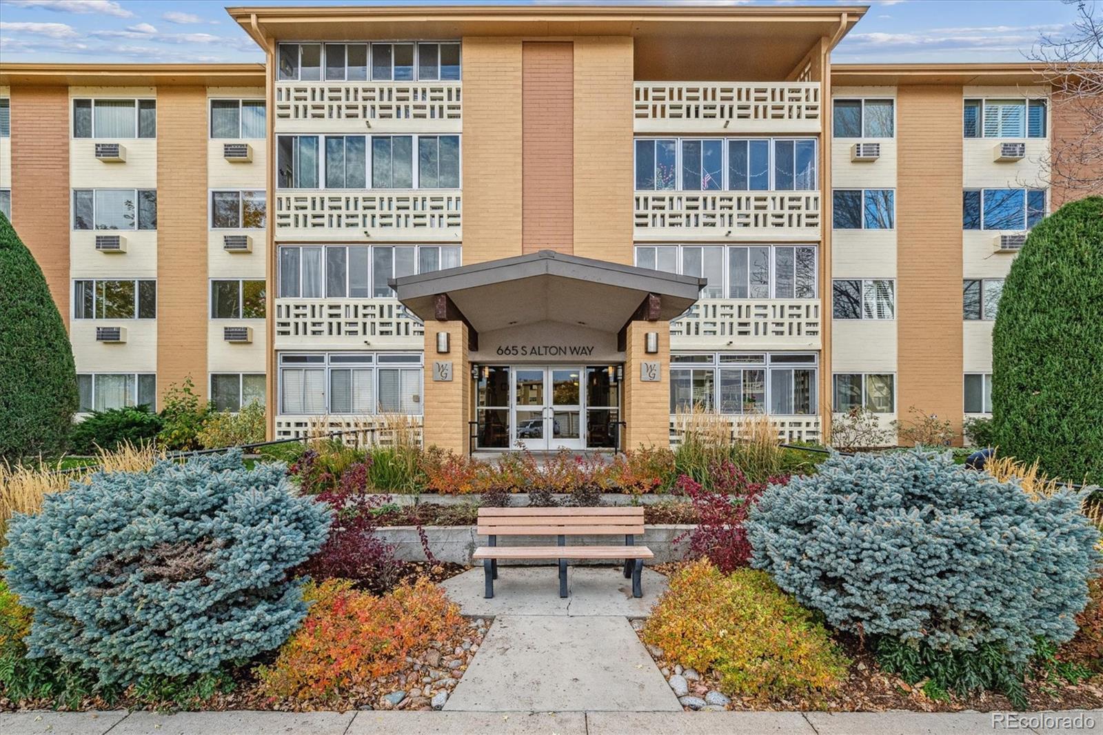 Welcome home to this updated condo in Windsor Gardens- featured here is a penthouse 855 sf floorplan with vaulted ceilings, 1 bedroom, 1 bathroom, and includes 1 detached garage. The kitchen is gorgeous with hickory looking wood cabinetry, granite slab countertops, tile backsplash, and full white appliance package included. The bathroom has been updated to include a walk-in shower, updated vanity, and fixtures. Oversized bedroom has 2 closets- lots of space! The living room is spacious and opens to the kitchen. Lanai is open, and features a brand new vinyl sliding glass door. Other updates are 2 tone paint color scheme, 2 panel white doors thru-out, and 2 wall ac units- updated unit in bedroom, and brand new unit in living room. Bonus storage room in building on same floor as condo. **Windsor Gardens is Colorado's Largest Age 55+ Active Adult Living Condo Community. Did you know? Monthly HOA Dues include annual property taxes! And heat, water, sewer, trash, round-the-clock patrolling community responders, full time onsite association management, grounds/building maintenance, and activities department. Enjoy clubhouse amenities such as fitness center, indoor/outdoor pools, hot tub, sauna, billiards, library, craft rooms for ceramics, sewing, woodworking, and 9 hole par 3 golf course and onsite restaurant both open to the public. Stay engaged with a wide array of activities, clubs, and events scheduled every month. Additional features include garden plot program, private walking trail and nature preserve, and RV/Boat storage. The Highline Canal runs full length along south side of the complex. RTD Bus Stops located thru-out the community. FHA/VA approved. Close to restaurants, stores, shopping…Minutes to Lowry, Hwy 225, Cherry Creek…Easy access to DIA and downtown. Come see for yourself what Windsor Gardens has to offer. ©2021**