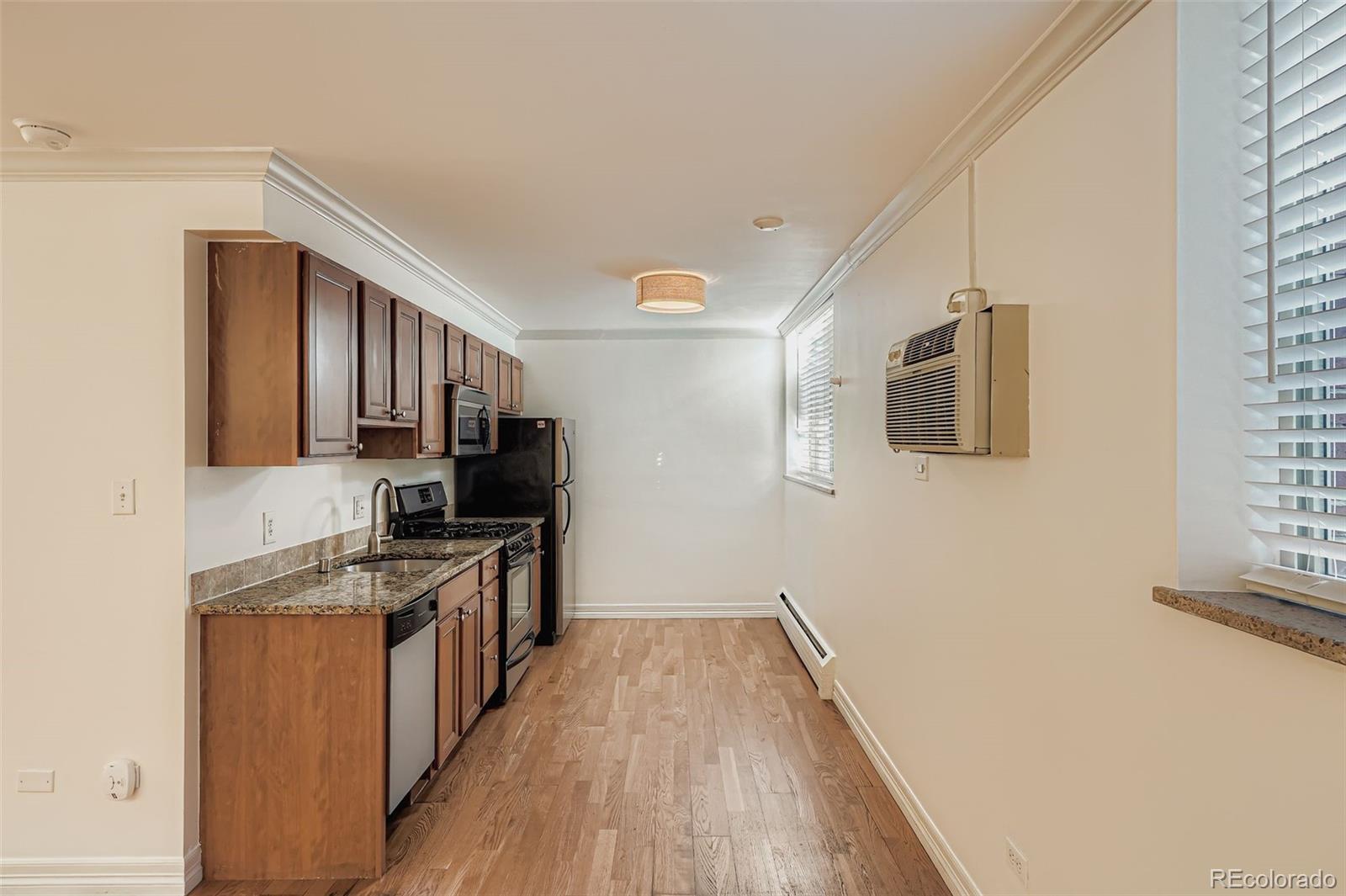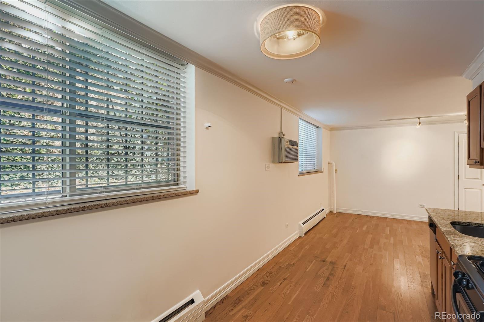 Charming Garden-Level Studio Condo in Vibrant Cheesman Park Neighborhood Discover urban living at its finest in this beautifully updated garden-level studio condo. Just steps from the lush greenery of Cheesman Park and a short stroll to the Denver Botanic Gardens and Congress Park, this home is a nature lover’s dream, offering easy access to scenic trails, gardens, and outdoor events. Immerse yourself in the neighborhood’s eclectic charm with trendy cafes—Liks Ice Cream Shop and Wyman’s Pizza & Bar are within 500 feet—boutique shopping, art galleries, and Denver’s best dining, all within walking distance. Plus, you’re minutes from Downtown Denver, the Denver Zoo, world-class museums, and convenient transit options. Bathed in abundant natural light, this bright and airy studio boasts an open floor plan that maximizes space and comfort. The modern kitchen shines with sleek stainless steel appliances and slab granite countertops. The bathroom features elegant subway tile, travertine, and granite accents, creating a serene retreat. Storage is a standout feature with ample closet space, including two large closets near the bathroom, a closet in the main room, and additional storage across from the private laundry area/mudroom for added convenience, plus an outdoor storage unit for your camping and ski gear! Secure entry and two separate doors to the unit ensure a quiet and peaceful living environment. Equipped with an AC window unit, this condo is move-in ready, offering the perfect blend of style and functionality. The pet-friendly policy allows up to two pets, and the low-priced HOA includes heat, water, gas, trash, recycling, and more. Whether you’re seeking a cozy starter unit or a vibrant city retreat, this sun-filled Cheesman Park gem is your gateway to Denver’s dynamic lifestyle, surrounded by parks and urban adventures. Don’t miss out—schedule a tour today!