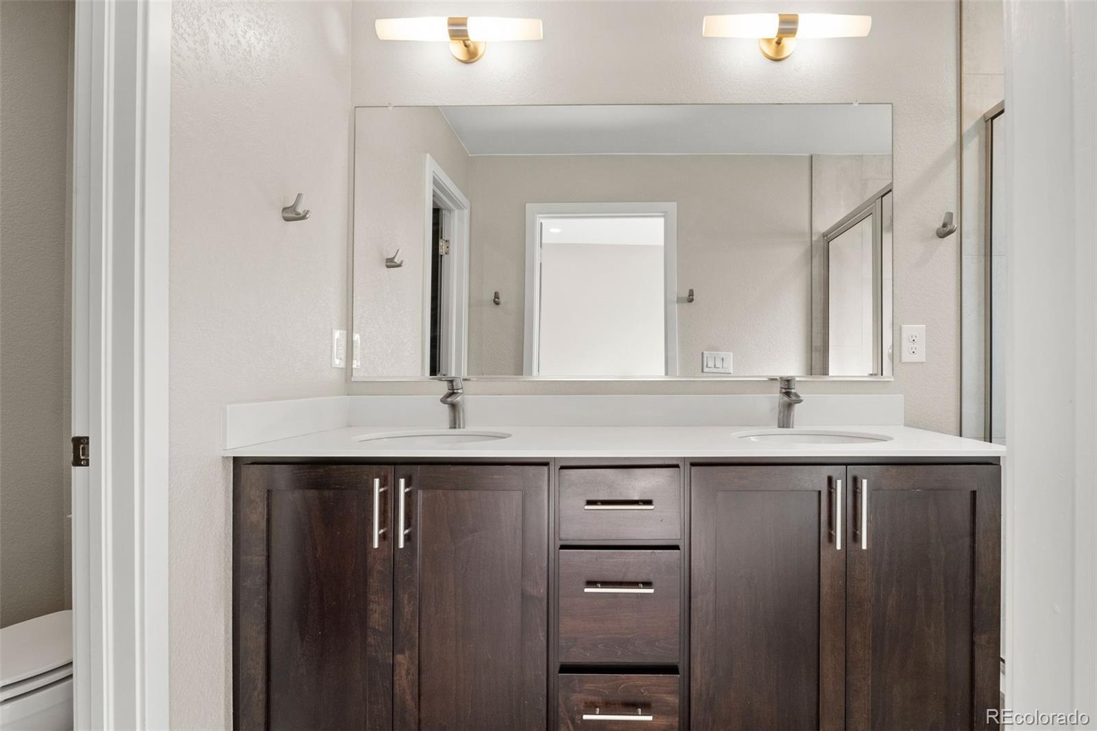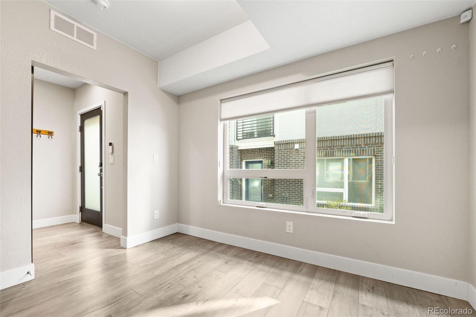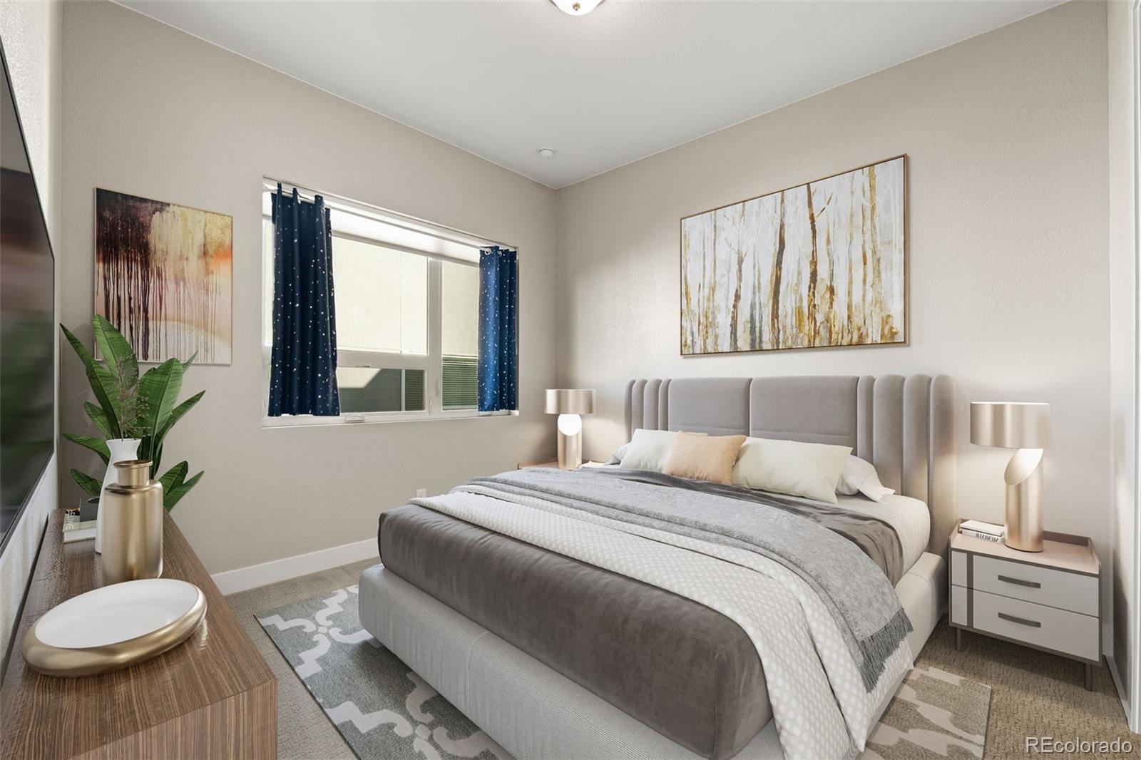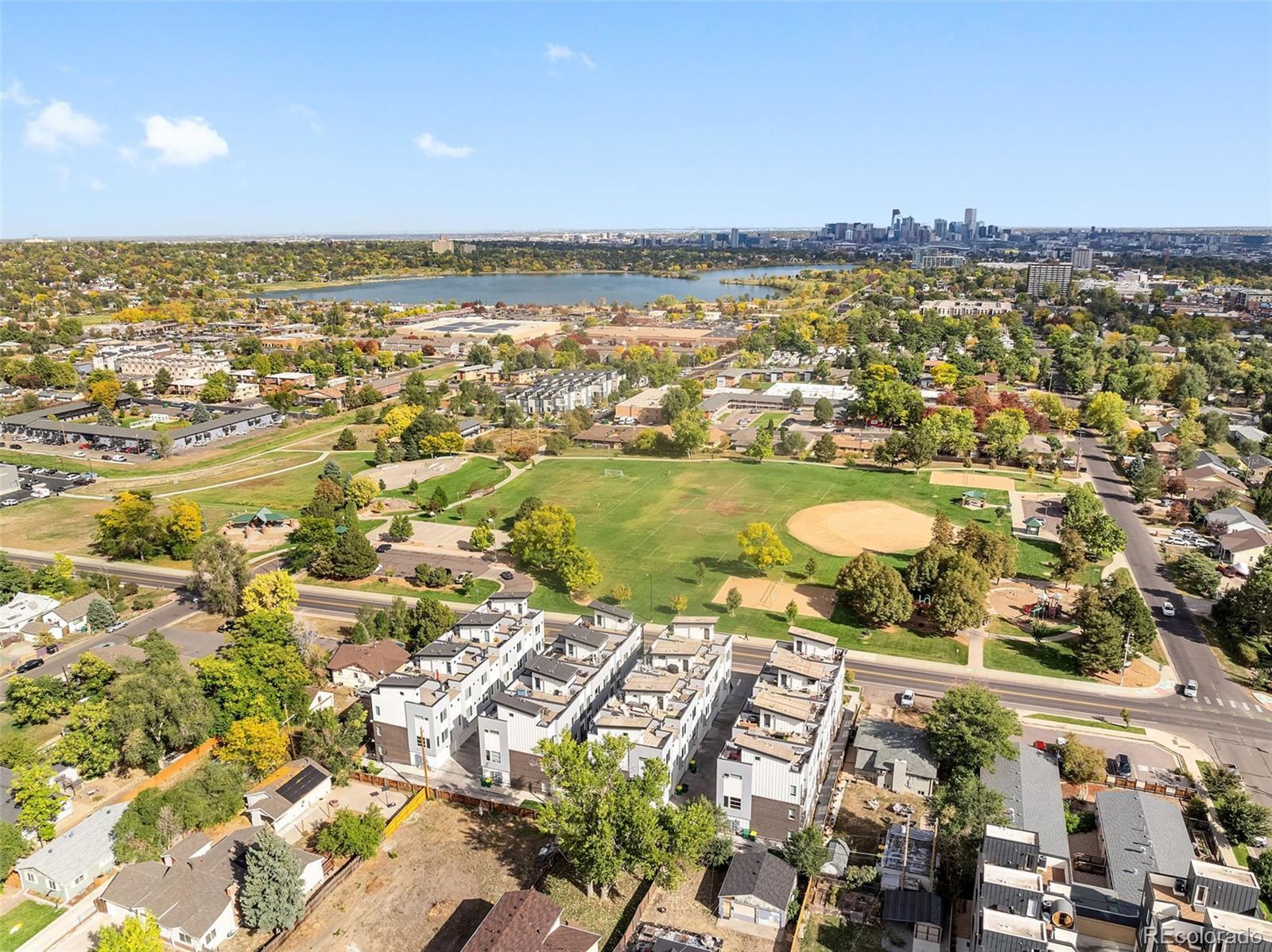 This modern, move-in-ready townhome, built in 2019, offers sleek, three-level living with magnificent views of Walker Branch Park and Sloan's Lake, as well as stunning city and mountain vistas. Boasting multiple outdoor spaces, this home is flooded with natural light and features high ceilings, quartz countertops, and premium finishes throughout. The welcoming entryway showcases etched glass details, an open railing to the second floor, and a laundry room with space for full-sized stackable units. The first-floor foyer offers ample storage with room for coats, shoes, and under-stair storage. A private secondary bedroom on this level includes a walk-in closet and en-suite bathroom, making it ideal for a home office or guest suite. The open-concept second floor is the heart of the home, featuring a well-appointed kitchen with a large island, ample cabinet space, and energy-efficient high-end stainless steel appliances. High-end finishes include Sumatra Silver Maple cabinets, a double oven with a gas cooktop, under-cabinet lighting, and beautiful Quartz countertops. The adjacent living and dining areas are perfect for entertaining, with LVP flooring running throughout the first and second levels. The third floor houses a spacious guest bedroom with an en-suite bathroom and a generous closet, along with the luxurious primary suite, which includes a walk-in closet and a private bathroom with dual sinks, quartz countertops, and a tiled rain shower. Energy-efficient features such as LED lighting, a Carrier 98% efficient furnace, and a tankless water heater ensure lower utility bills and a reduced carbon footprint. This exceptional home is ideally located across from Walker Branch Park and just blocks from Sloan's Lake, the Lamar Light Rail Station, Edgewater Public Market, Plus, enjoy the added bonus of no HOA! Up to $13,000 (1.75% of purchase price) in lender's credit available to qualified buyers. Contact for more details.