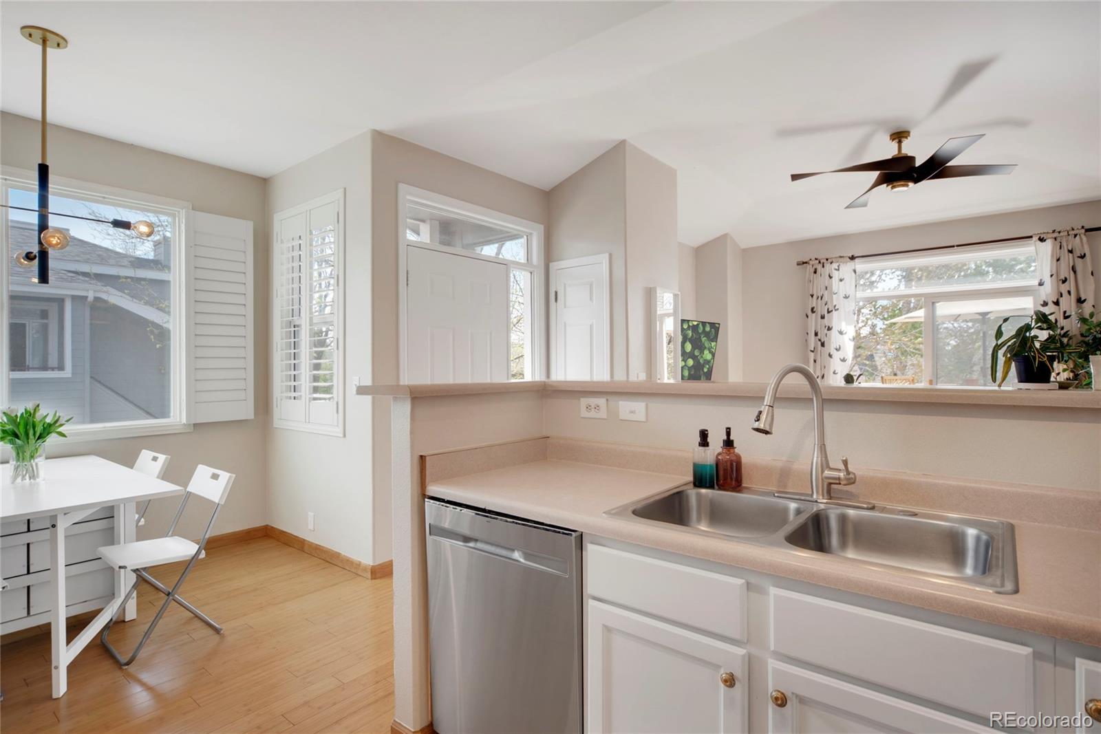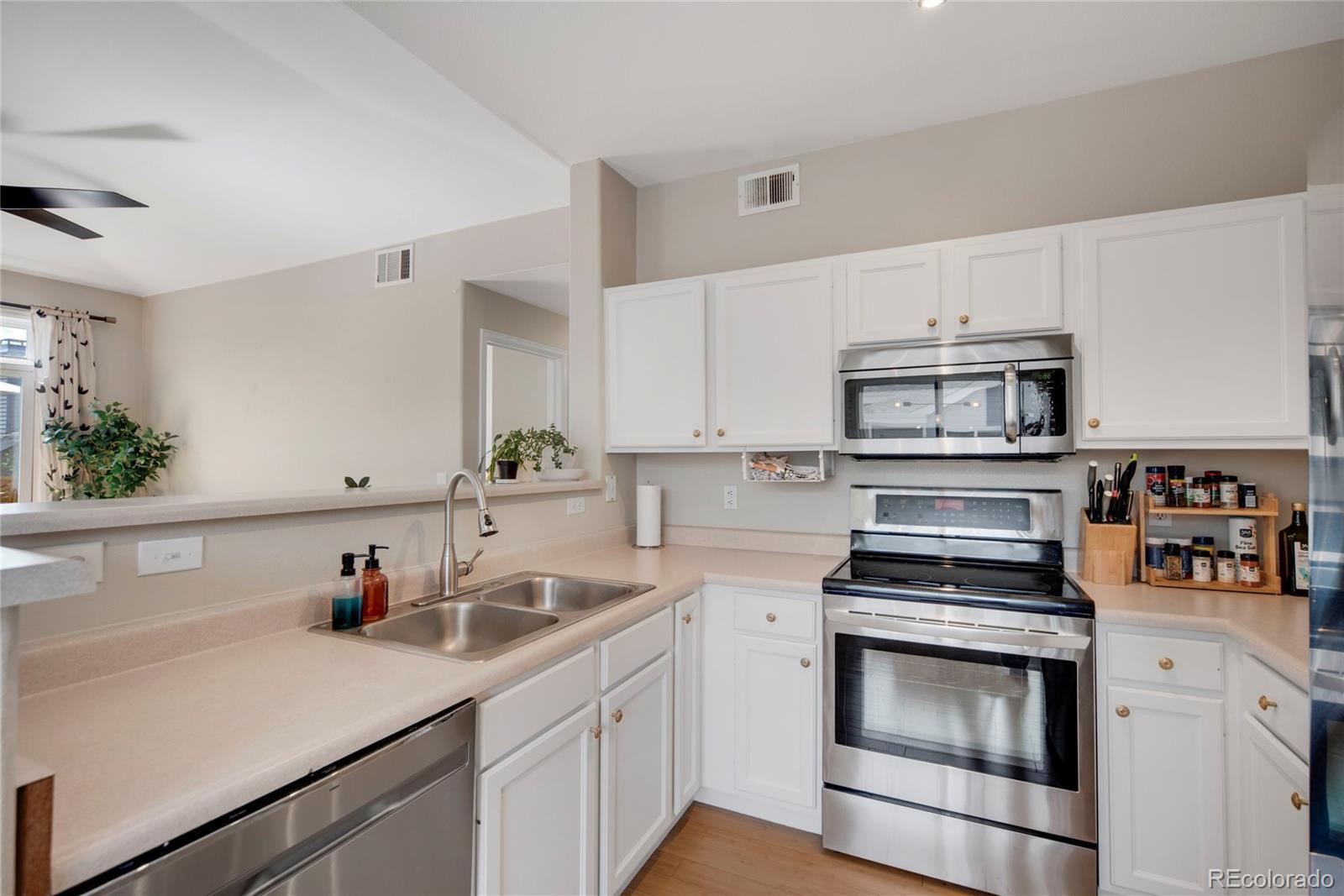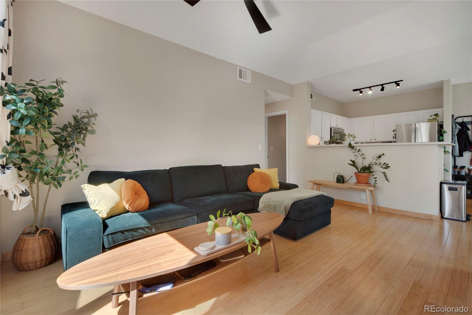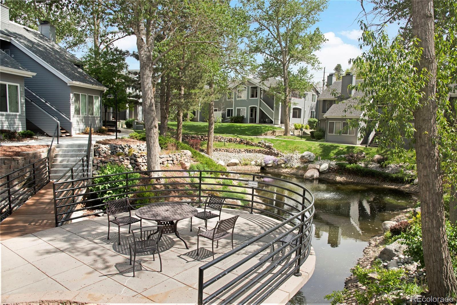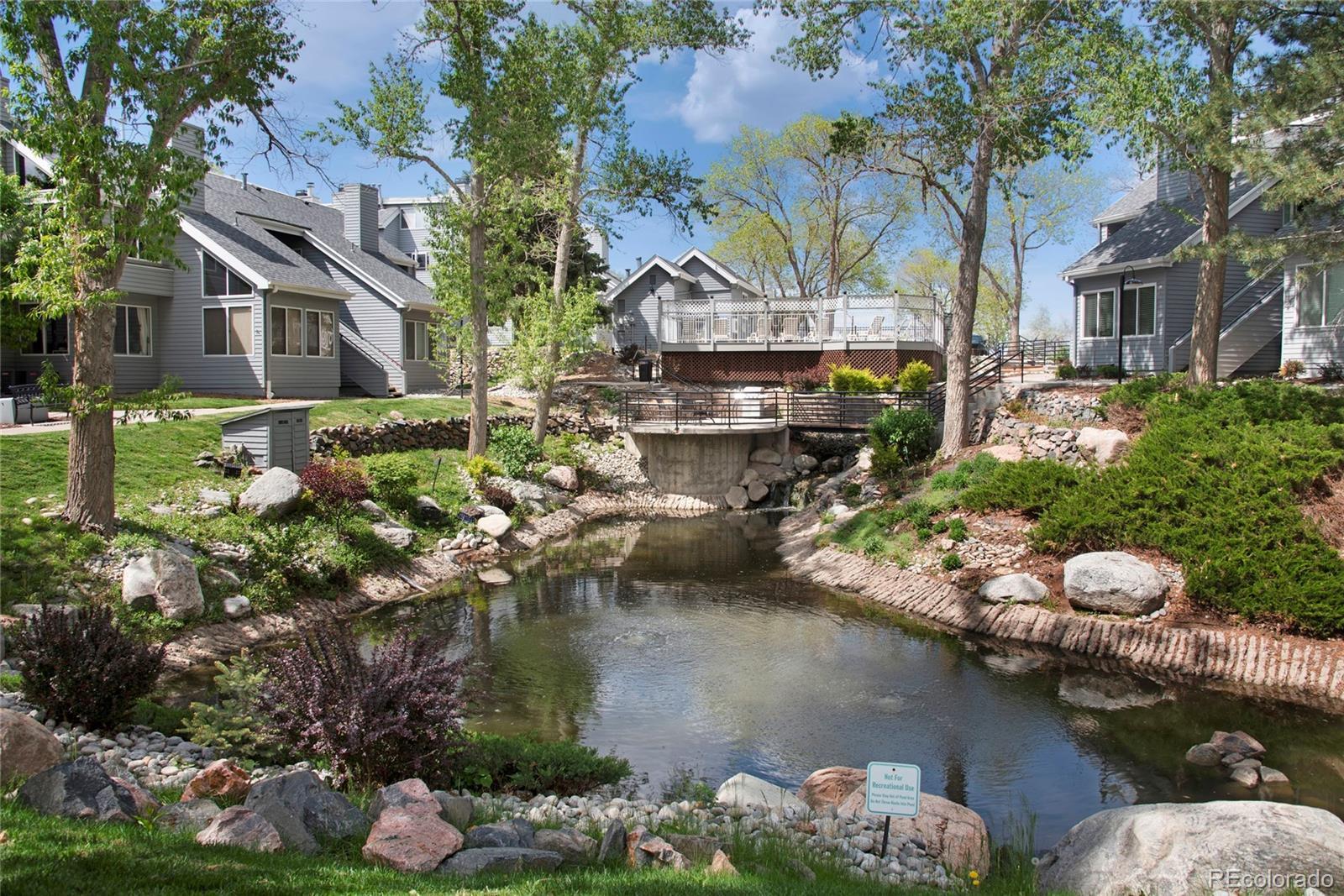 THIS AMAZING PROPERTY IS ELIGIBLE FOR A FREE ONE-YEAR 1% INTEREST RATE BUY-DOWN FOR BUYERS WHO QUALIFY AND FINANCE THROUGH A PREFERRED LENDER... Experience elevated living in this beautifully remodeled two bedroom, two bath penthouse-level corner unit, bathed in natural light from its coveted southwest-facing orientation. With an open-concept layout, soaring vaulted ceilings, and expansive windows, this home offers a bright, airy ambiance throughout. Features include bamboo flooring, designer light fixtures, sleek stainless appliances, and spacious living and dining areas—perfect for entertaining. Enjoy quiet mornings or evening sunsets on your private deck, which overlooks the lush, landscaped grounds. Both bedrooms are generously sized, and the primary suite includes a walk-in closet and en-suite bathroom. A full-size washer and dryer in-unit adds everyday convenience, while the designated carport and ample guest parking makes hosting a breeze. Be sure to explore the peaceful, resort-like community with mature trees, tranquil streams, waterfalls, serene pond, and access to a private sparkling pool. Conveniently located within minutes of I-25 and I-225, DTC, Whole Foods, Target, and Cherry Creek State Park. Don't miss out on this ideal urban oasis!