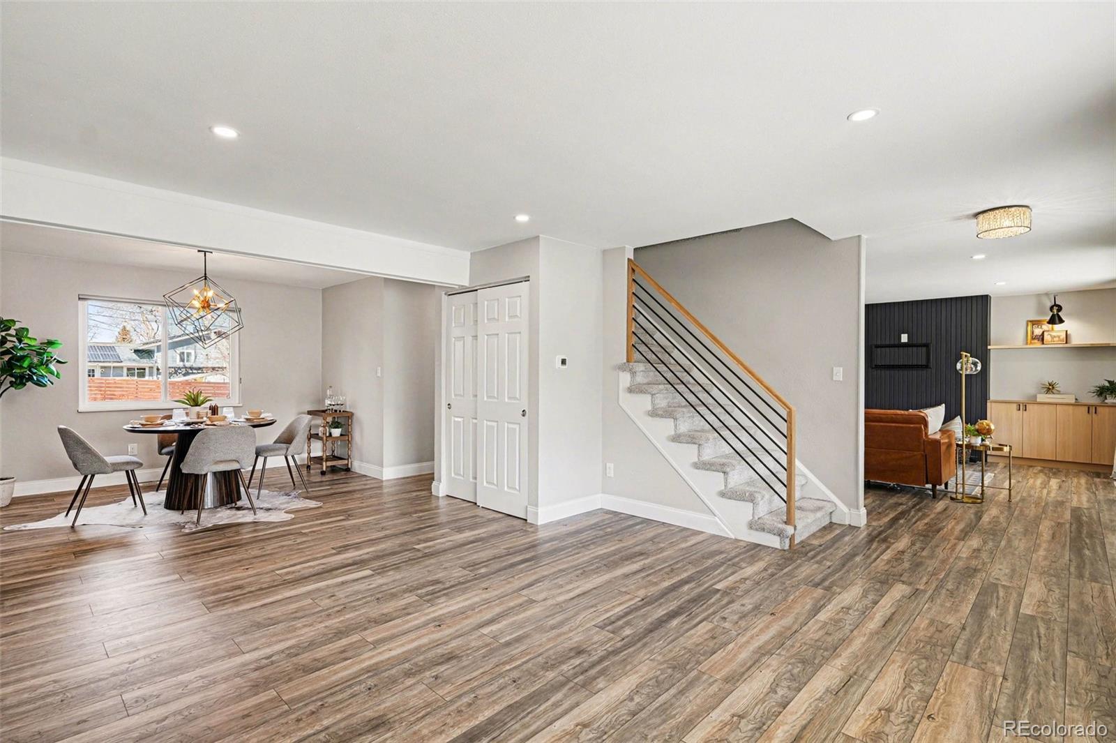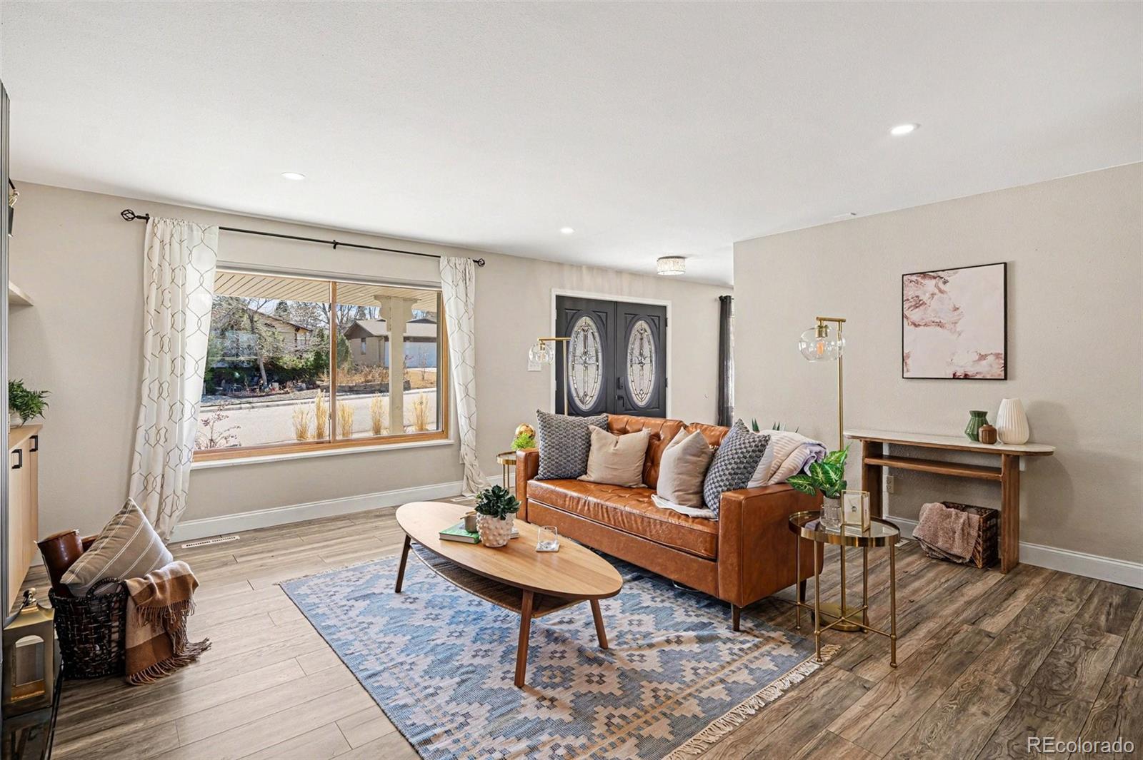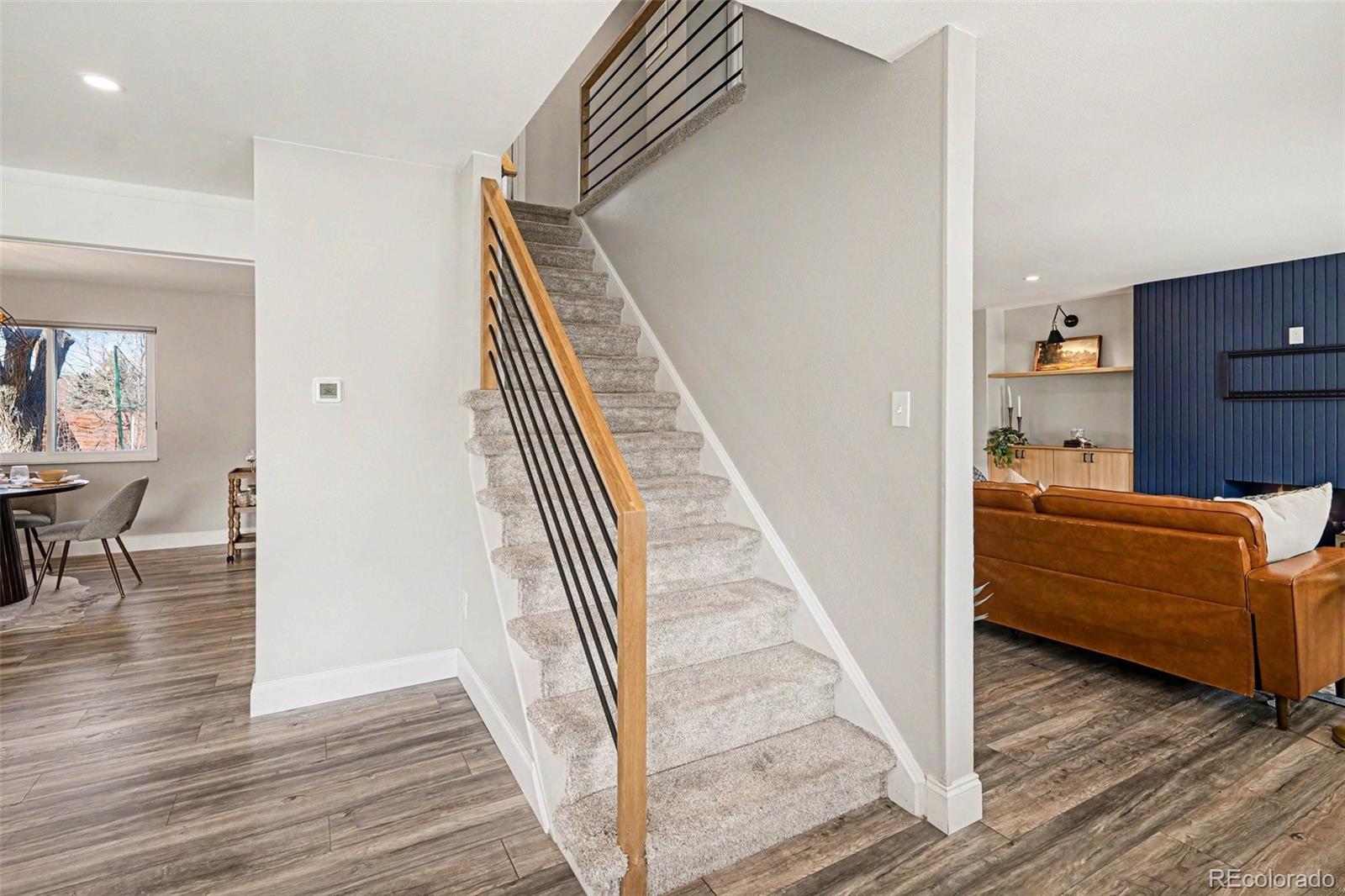 This impressive Walnut Hills home offers sleek designed spaces throughout that have been thoughtfully remodeled over the last few years. Beginning with a living room featuring a new striking accent wall with built-in shelving, cabinets and a fireplace. The modern open concept kitchen boasts a spacious island with bar seating, a cool modern range hood, new refrigerator, built-in microwave, and brand new dishwasher. Also on the main floor is a new custom mudroom, a breakfast nook, and a formal dining room. Upstairs, the primary suite includes a spacious walk-in closet and ensuite bath with a dual vanity, a walk-in shower complete with 2 rain shower heads, and heated tile floors. There's also 3 large additional bedrooms (1 is perfect for a home office) and another full bath upstairs. The basement adds exceptional versatility with a huge media room with new custom built-in shelving and flooring, a dedicated gym(new power rack comes with the house!), a freshly renovated spa-like bathroom for use after those tough workouts, a spacious laundry room with newer brand name machines and vinyl flooring. Out back, an extended covered patio overlooks a fully fenced yard with plenty of green space. Other features of the home include: a newer 75+gallon water heater, an added 3rd car driveway (perfect for an RV), a one-of-a kind xeriscaped front yard (the multitude of beautiful colors from the plants and flowers are really impressive in the spring and summer!), a 220 plug in the garage for an EV, leaf guard gutters, and a recently installed roof. Just minutes away, you'll find local dining and entertainment options in walking distance like Pindustry, and Fiddler's Green. Great Cherry Creek schools, and NO HOA (but still with several annual neighborhood events). This might be the one you've been waiting for! Click the Virtual Tour link to view the 3D walkthrough. Discounted rate options and no lender fee future refinancing may be available for qualified buyers of this home.