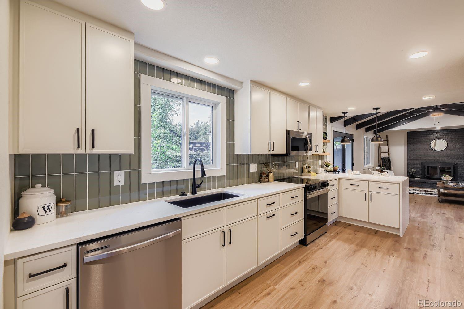 A Rare Find in DTC! Completely Renovated, Move-In Ready & Worry-Free spacious home. Beautifully and thoughtfully REMODELED FROM TOP TO BOTTOM! Recent appraisal $1.1M. Enjoy this 3,255 finished sq ft of luxury living space • 4 bedrooms | 4 full bathrooms. Mid-century character meets contemporary comfort • Move-in ready turnkey condition • QUICK MOVE-IN! MAIN LEVEL: Open-concept layout with wide-plank flooring throughout • Designer lighting packages in every room • Designer kitchen featuring: Quartz waterfall peninsula and countertops • Custom slim-shaker cabinetry • Double-wide sink • Premium Samsung stainless steel appliance suite. Inviting family room with wood-burning fireplace and exposed beam ceiling. UPPER LEVEL: Spa-inspired primary suite with oversized shower • Walk-in closet designed for modern living • Additional bedrooms with abundant natural light. FINISHED BASEMENT: Guest suite with egress window (code-compliant) • ¾ bathroom • Perfect for guests, teens, or multi-generational living ALL-NEW SYSTEMS (2025): Roof Windows High-efficiency HVAC Water heater and sump pump Complete electrical system Complete plumbing system Interior and exterior paint All doors, trim, and hardware Designer lighting throughout OUTDOOR AMENITIES: Fenced yard with multi-zone irrigation • Mature landscaping with apple tree, grapevines, roses, and peonies • Gas line installed and ready for BBQ or firepit • Recent clear sewer scope report available PRIME LOCATION: Quiet Hampden South street • Minutes to Denver Tech Center (DTC) • Walking distance to Rosemond Park • Top-rated schools nearby • Easy access to major commuter routes (I-25, I-225, C-470) PEACE OF MIND: 1-year home warranty included • Nothing to do but move in! • This level of value won't last long in this market • Schedule your showing today before this rare opportunity is gone.
