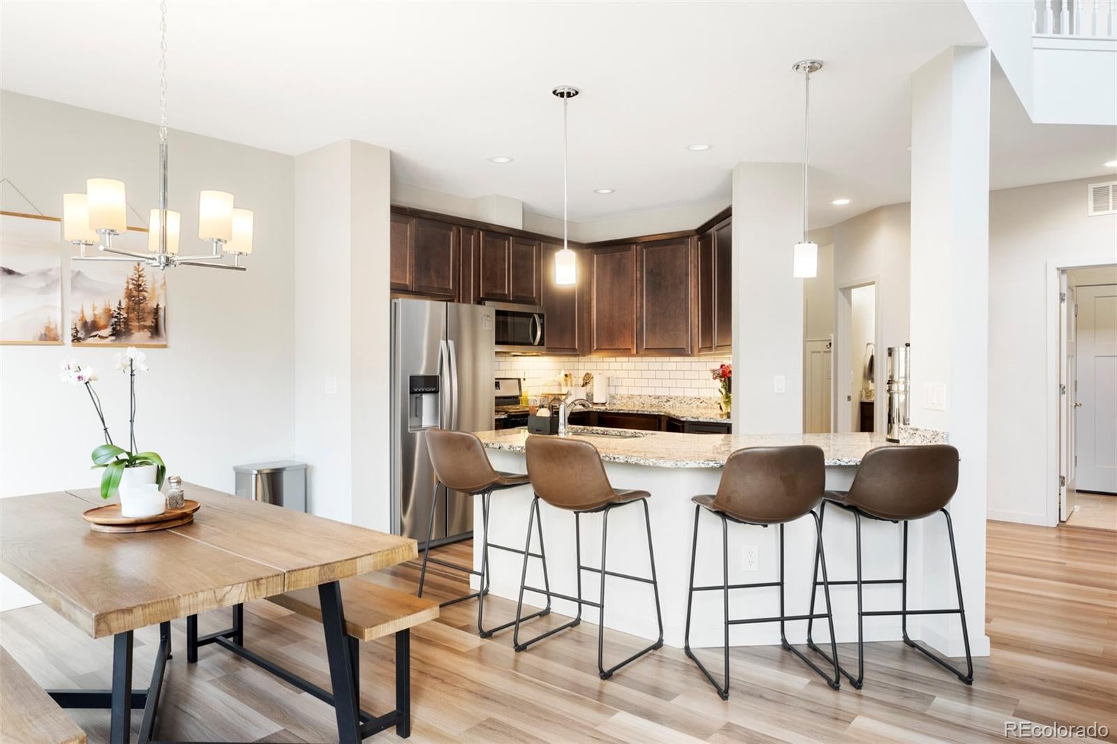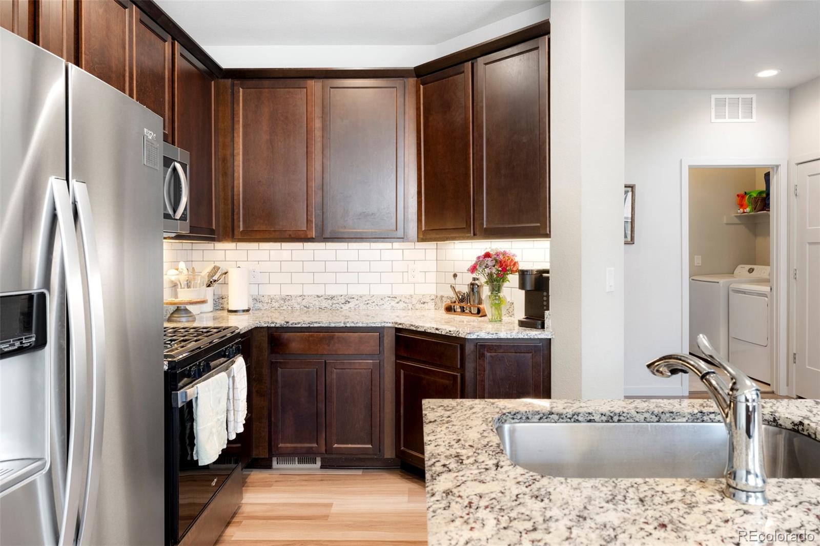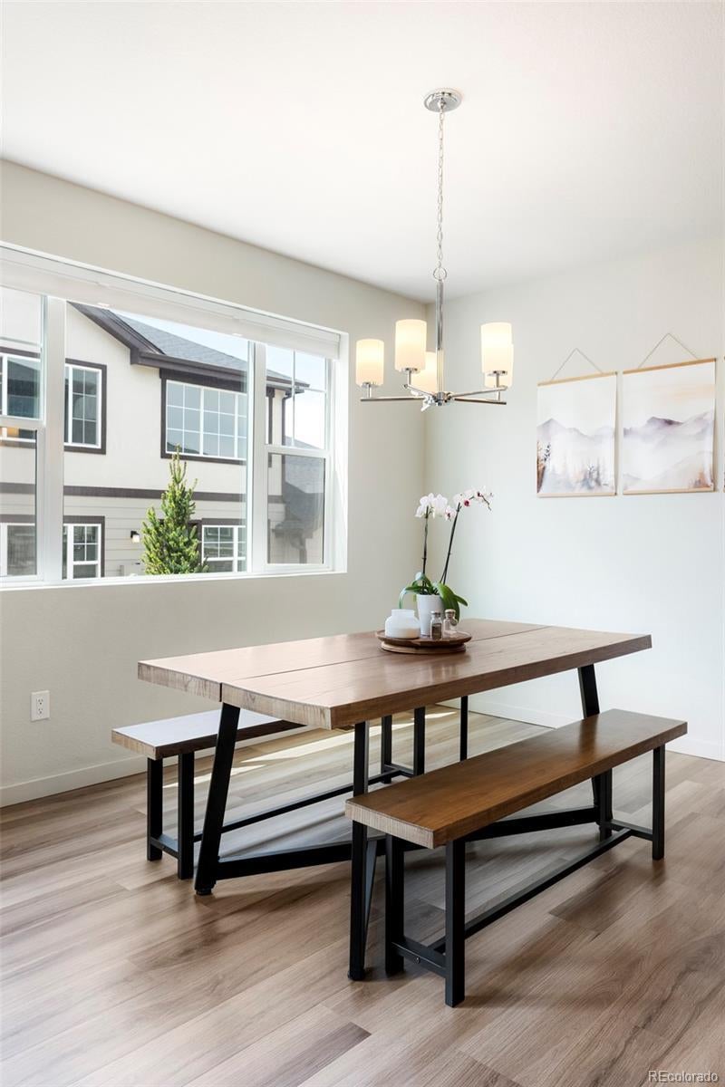 Enjoy a refined blend of timeless design and everyday comfort in this thoughtfully crafted Residences on Helena home. Vast windows invite an abundance of natural light into each curated corner, illuminating the interiors and creating a seamless connection to the outdoors. At the heart of the home lies a cozy yet stylish kitchen, where sleek appliances and a classic subway tile backsplash offer both form and function — the perfect backdrop for culinary creativity. The open-concept layout encourages effortless flow between kitchen, dining, and living spaces, fostering an airy ambiance. The primary suite is a true retreat, thoughtfully tucked away with fine finishes and generous storage. Additional bedrooms provide the perfect space for a home office, creative studio or private fitness haven. A dedicated laundry room adds convenience to everyday routines. Outside, discover a sunny deck perfect for hosting vibrant gatherings or relaxing in solitude underneath the beautiful Colorado skies.