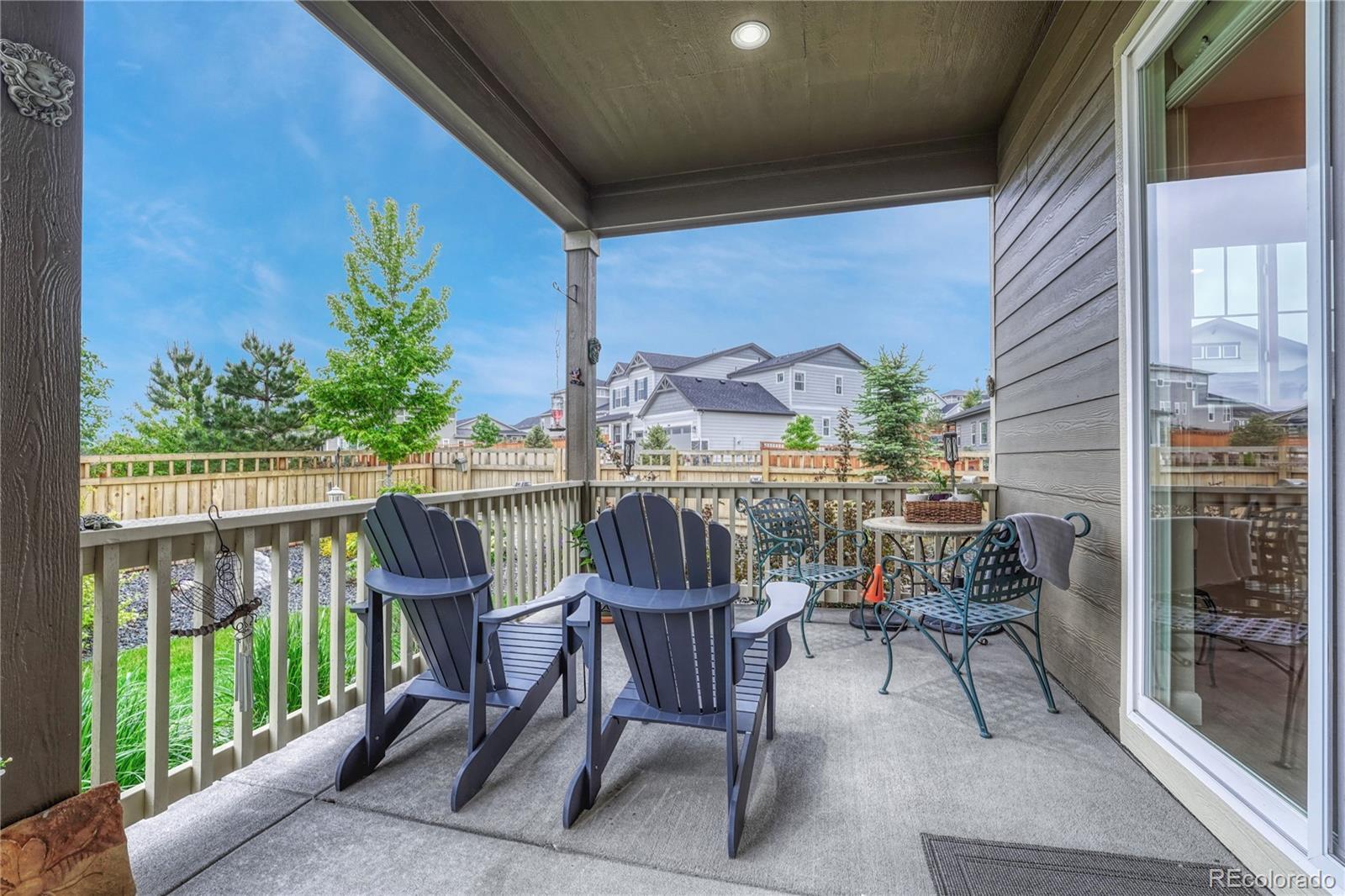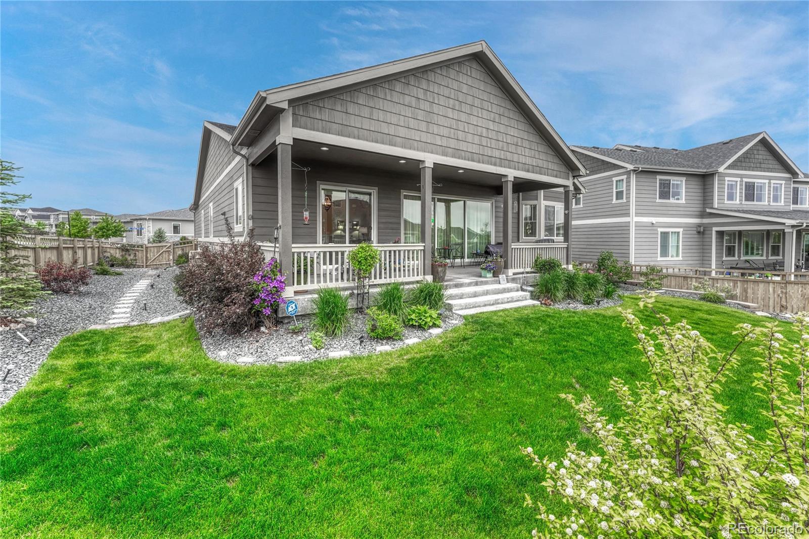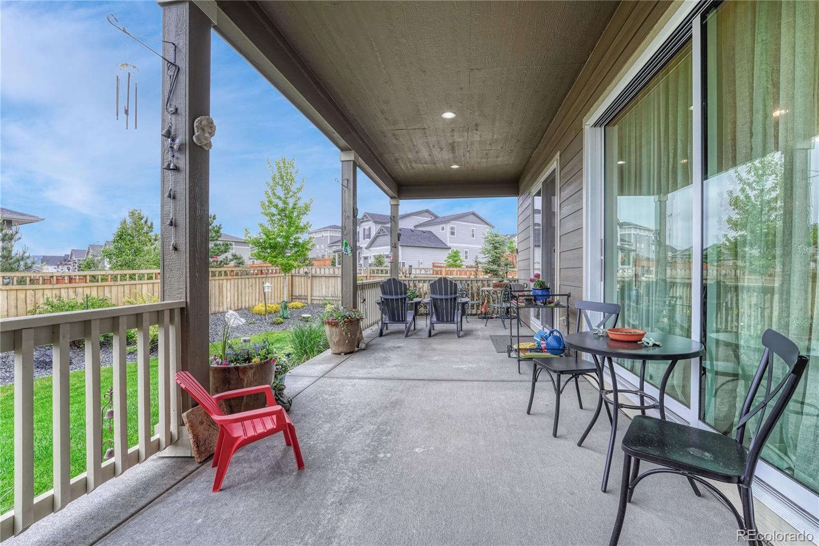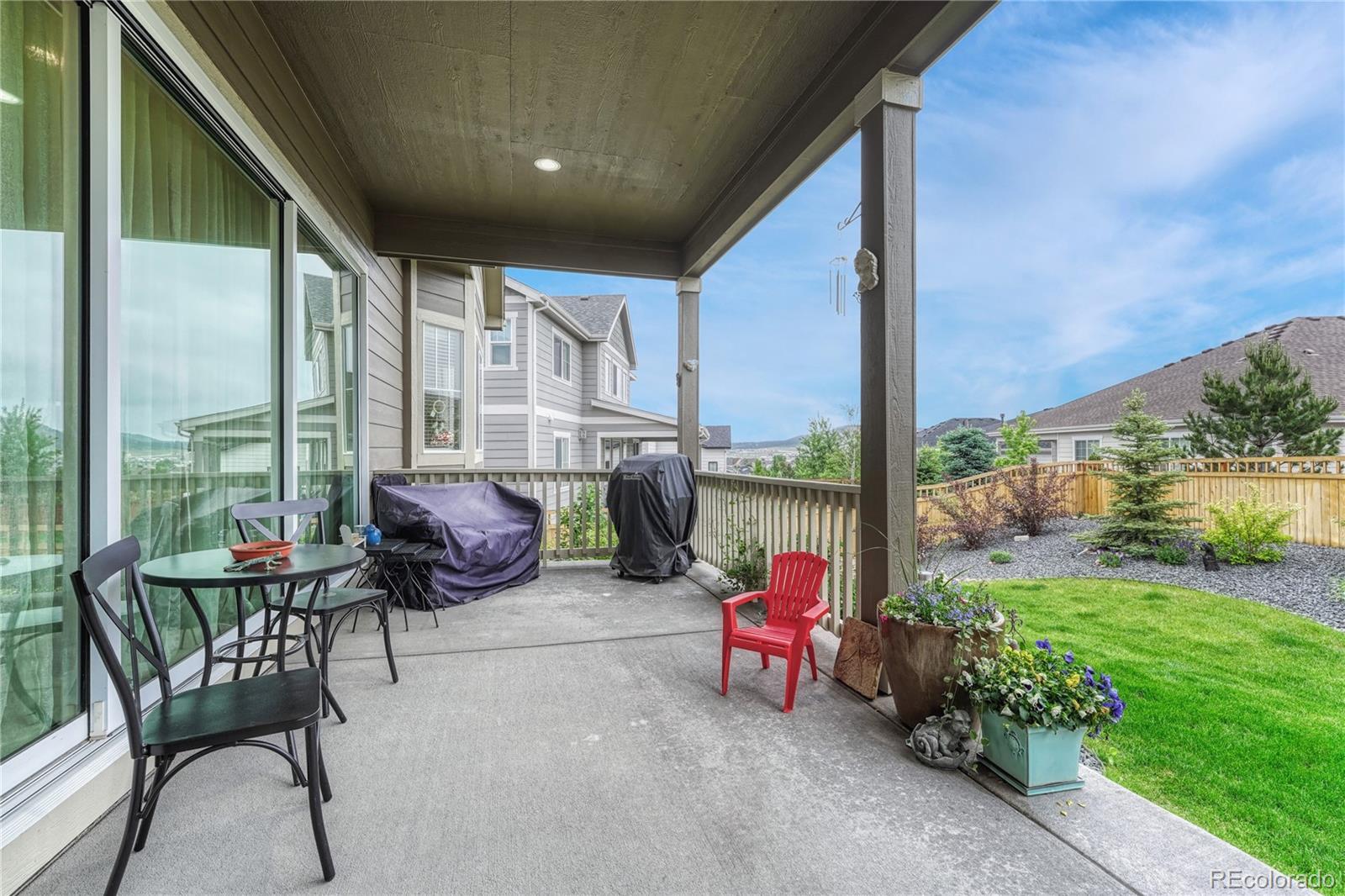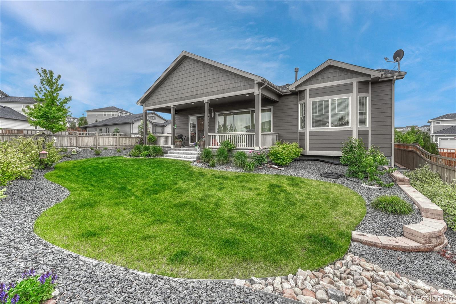 ***GET OFFER ALERTS AT FINALOFFER.COM***Newer built, one story/ranch style home in the heart of The Meadows has amazing upgrades throughout. Living room boasts a sliding glass wall that walks out to a full size covered patio as a beautiful outdoor living area with a professionally landscaped setting. Gourmet kitchen includes extended cabinets, slab granite countertops, white subway tile back splash,double oven, upgraded cabinets, gas cook top, & a large center piece kitchen island with room for stools. Living room opens to the kitchen and outdoor living area with 11' coffered ceilings, luxury tile flooring, and a gas fireplace with a herring bone stone surround. Main level has 3 bedrooms, 3 bathrooms, laundry, office, luxury tile, & 8' doors. Finished basement has 2 bedrooms, 1 bathroom, a very open main room and about another 1,000 square feet of unfinished storage/work shop space. Close proximity to I-25, DTC, several elementary, middle, & high schools, parks, hiking & biking trails, tennis courts, golf courses, hospital, stores, Outlets at Castle Rock, Taft House, Grange, The MAC, & more.