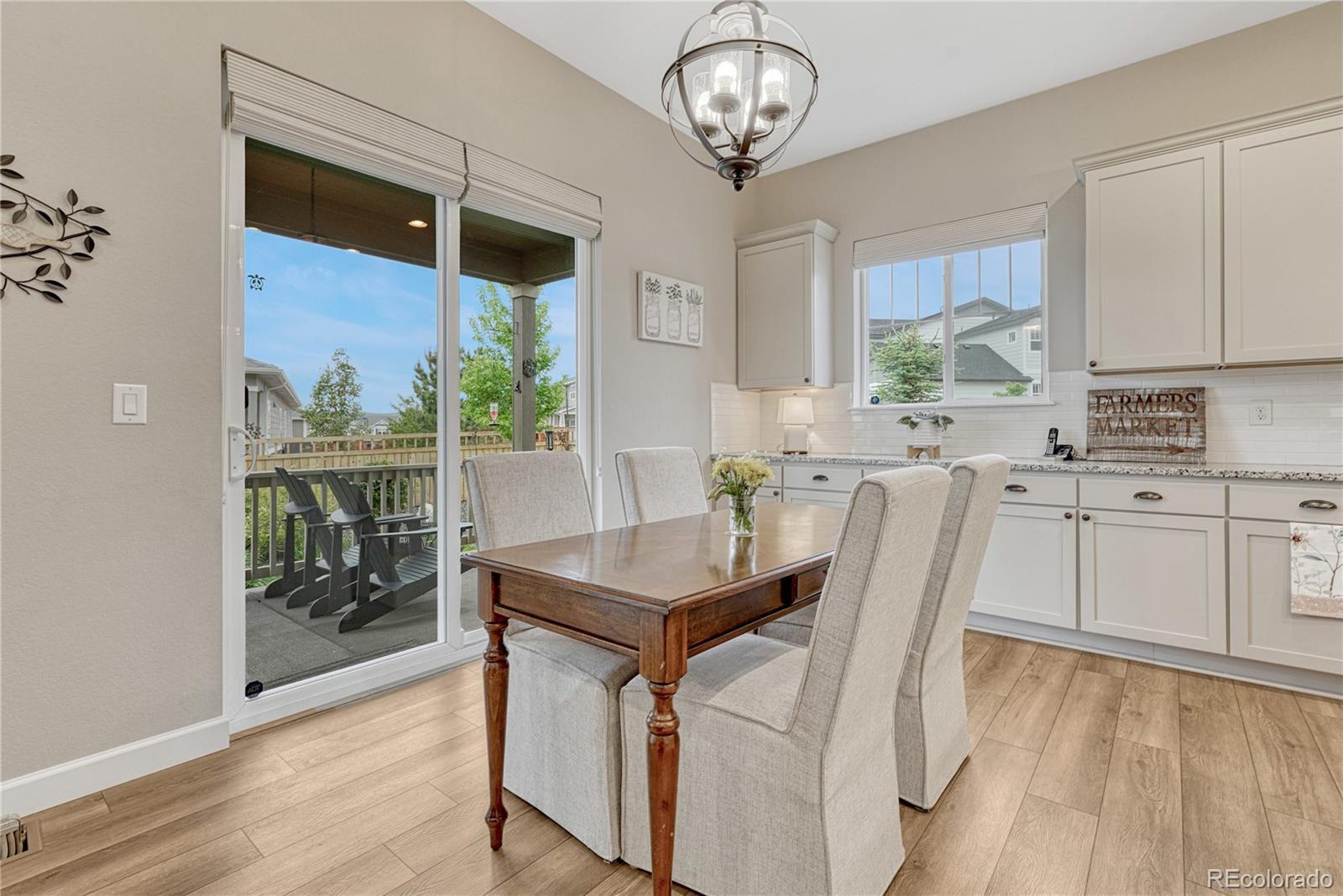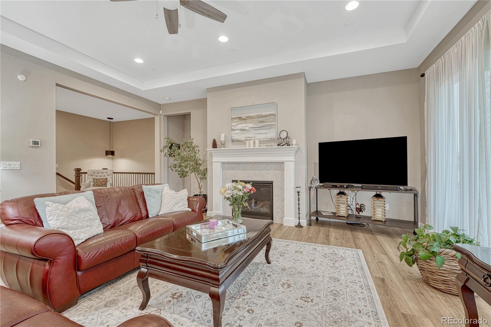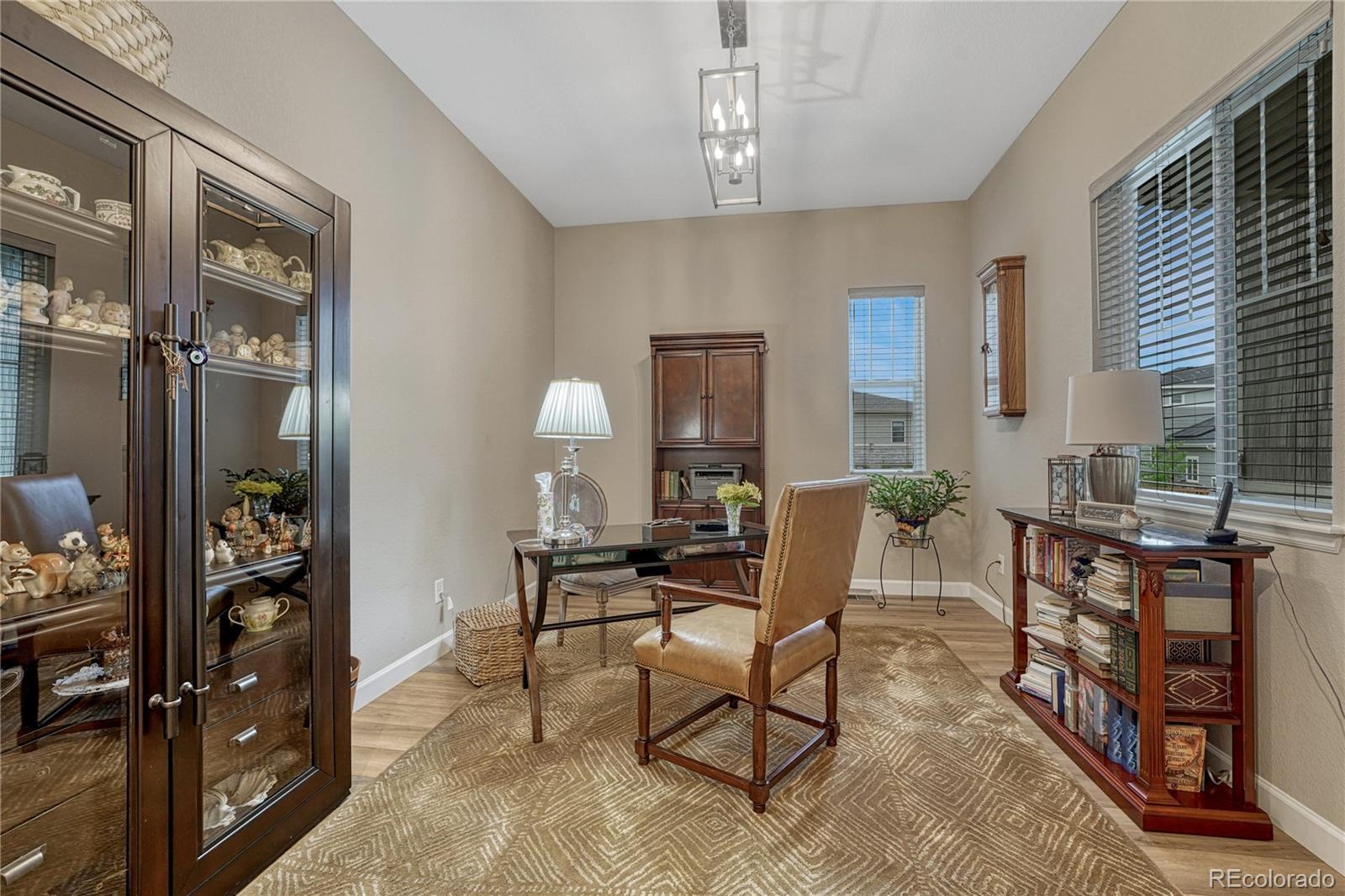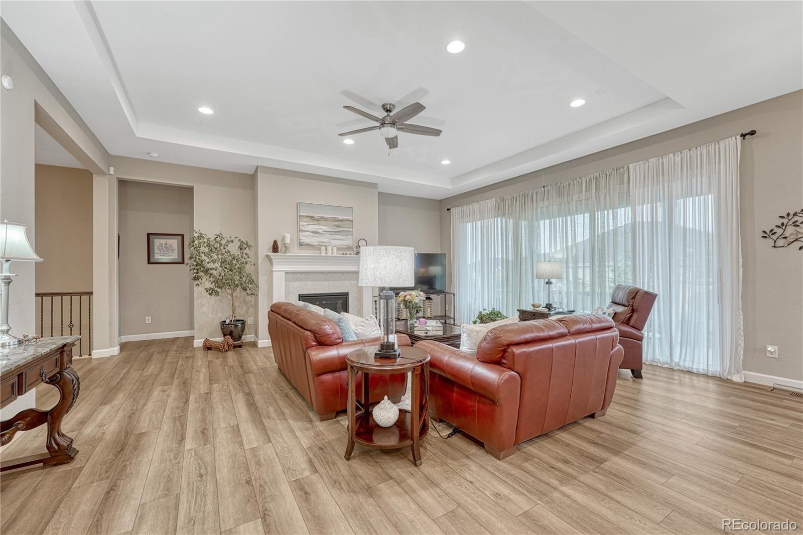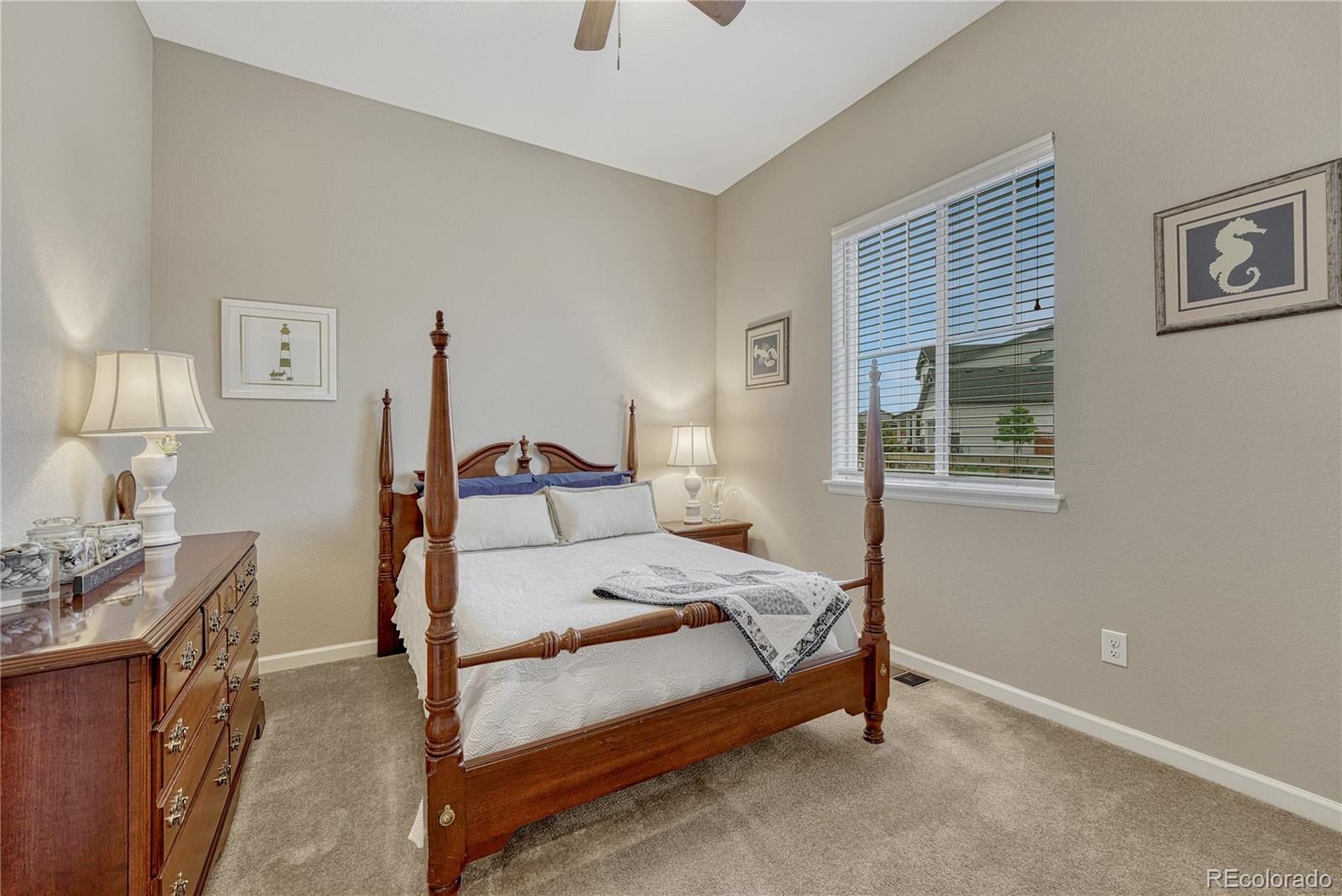 ***GET OFFER ALERTS AT FINALOFFER.COM***Newer built, one story/ranch style home in the heart of The Meadows has amazing upgrades throughout. Living room boasts a sliding glass wall that walks out to a full size covered patio as a beautiful outdoor living area with a professionally landscaped setting. Gourmet kitchen includes extended cabinets, slab granite countertops, white subway tile back splash,double oven, upgraded cabinets, gas cook top, & a large center piece kitchen island with room for stools. Living room opens to the kitchen and outdoor living area with 11' coffered ceilings, luxury tile flooring, and a gas fireplace with a herring bone stone surround. Main level has 3 bedrooms, 3 bathrooms, laundry, office, luxury tile, & 8' doors. Finished basement has 2 bedrooms, 1 bathroom, a very open main room and about another 1,000 square feet of unfinished storage/work shop space. Close proximity to I-25, DTC, several elementary, middle, & high schools, parks, hiking & biking trails, tennis courts, golf courses, hospital, stores, Outlets at Castle Rock, Taft House, Grange, The MAC, & more.