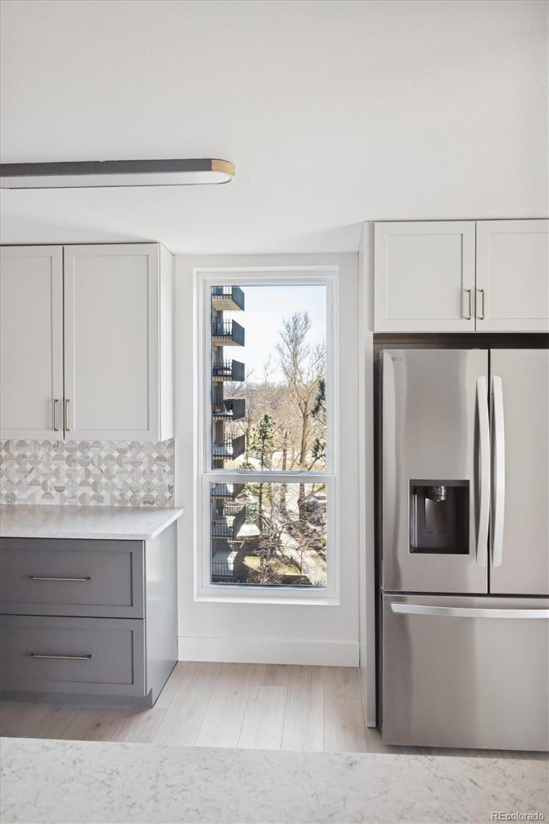 Beautifully updated west-facing end-unit condo with abundant natural light and stunning views overlooking Washington Park. This home features a completely new interior with NuCore waterproof flooring, 5-inch baseboards, quartz countertops, and a timeless designer backsplash throughout. The bright kitchen offers new cabinetry, stainless steel appliances, and an LG induction range with air-fryer capability, opening to park views and a spacious balcony facing Marion Parkway—perfect for relaxing or entertaining. Both bathrooms have been fully remodeled with new cabinetry, quartz countertops, and professionally updated tub and shower surrounds. Upgraded electrical and plumbing support a Samsung Bespoke AI all-in-one washer/dryer, a rare in-unit convenience. The primary bedroom includes a walk-in closet with premium Elfa shelving and custom storage. Enjoy resort-style amenities including 24-hour concierge and security, indoor and outdoor pools, hot tub, sauna, fitness center, party room, game room, library, business center, bike storage, and private EV charging stations. Monthly dues include heat, air conditioning, and unlimited hot water. Ideally located steps from Washington Park and Old South Gaylord Street, and minutes to Cherry Creek and downtown—this home offers an exceptional lock-and-leave lifestyle in one of Denver’s most desirable neighborhoods. Ideal for a travel-friendly lifestyle!