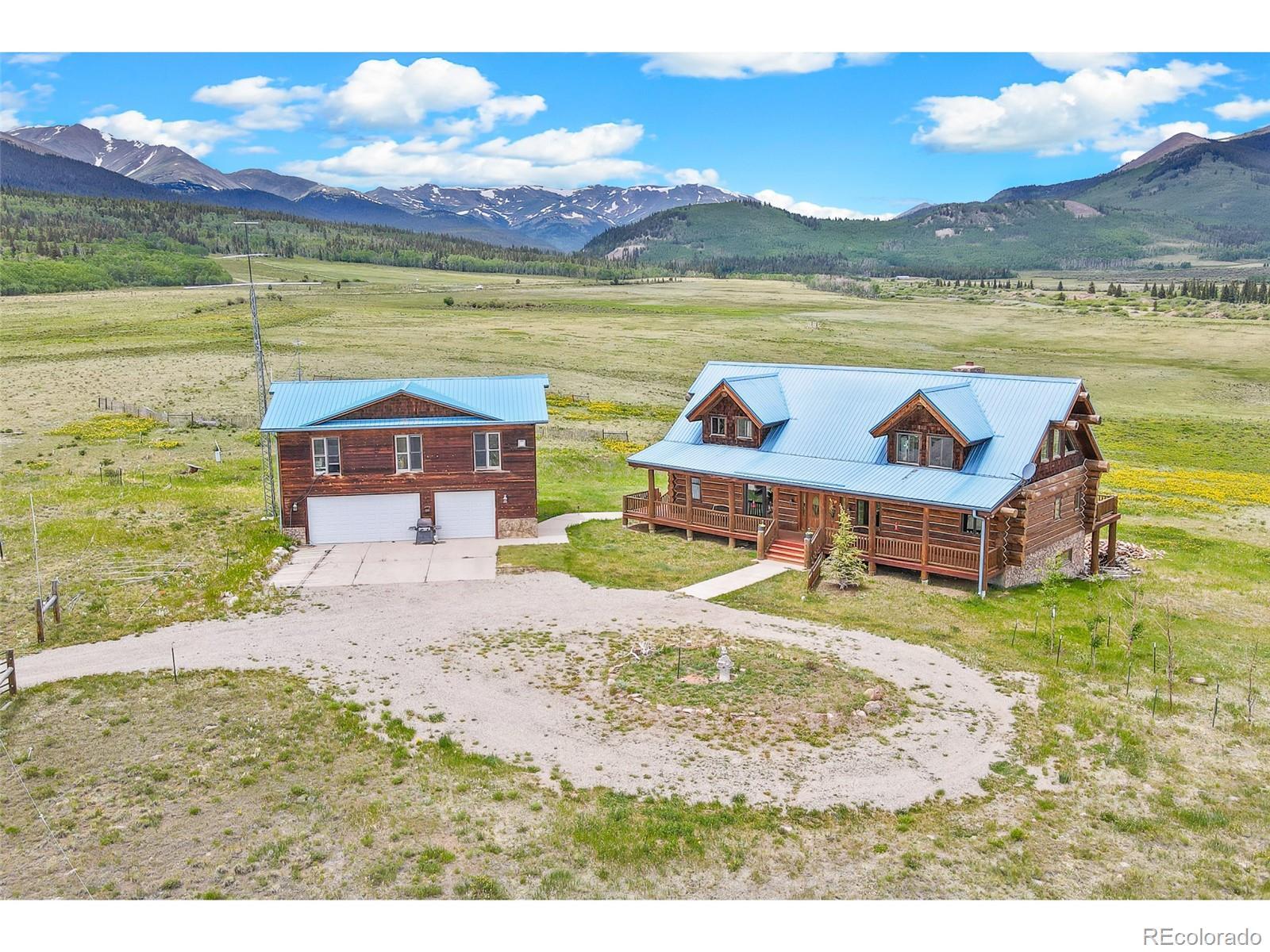 This stunning Custom log home has picturesque panoramic mountain views and is situated on more than 225 acres. Every inch has been finished to the highest of standards, with each piece being selected specifically for this one-of-a-kind Notch & Saddle Engelman Spruce log home. This beautiful rustic retreat features Hickory floors and cabinets, Jenn Aire appliances, Propane see though fireplace. Main floor Master Suite w/jetted tub and His & Her closets. Media room w/ sound surround. Radiant floor heating. Game room, wine cellar and Humidor. Oversized 4-car detached garage features a 1,200 sq ft 2 bed, 1.5 bath guest house above the garage. High speed DSL. Finished, heated garage with a 1/4 bath. Separate propane tank and power feed. Self starting gas stove (requires no electricity). In floor radiant heat. Garbage disposal, oven/range, compactor, dishwasher, refrigerator, security system w/motion detectors. 2 separate meters. 5-zone boiler and hot water tank. The property is fully fenced with a seasonal stream. This is a rare opportunity to own your very own hunting property and ranch.