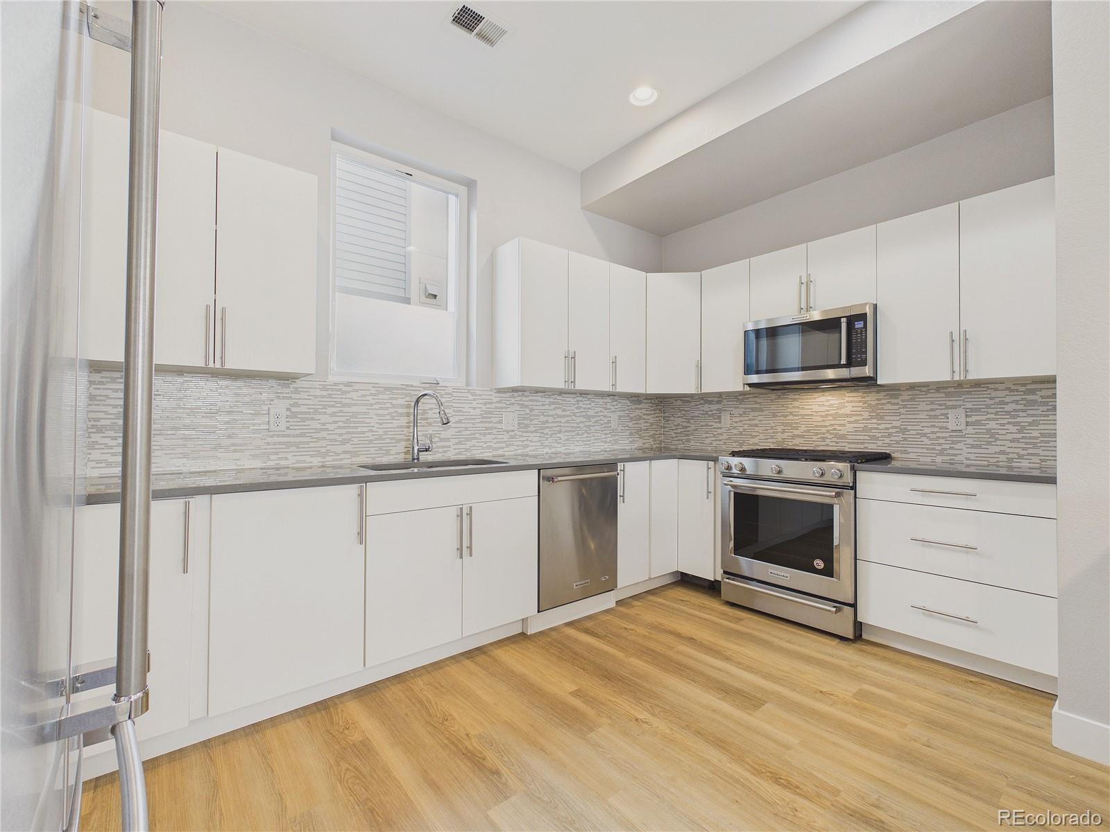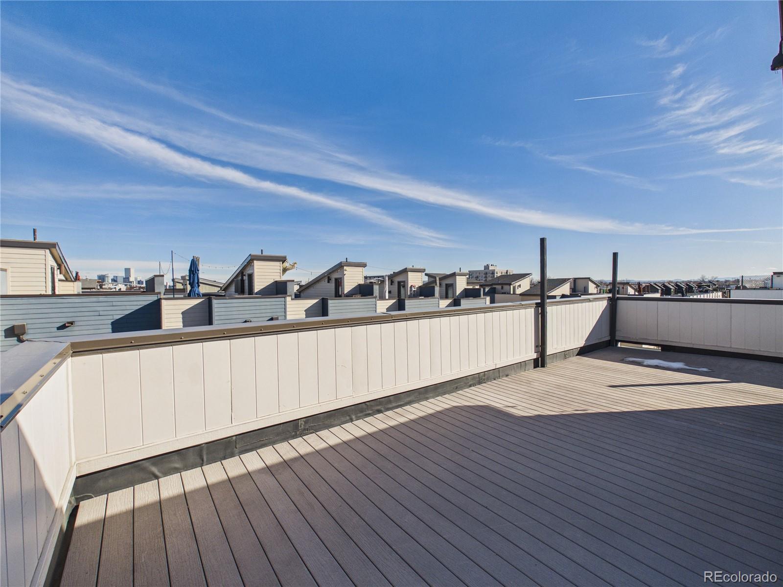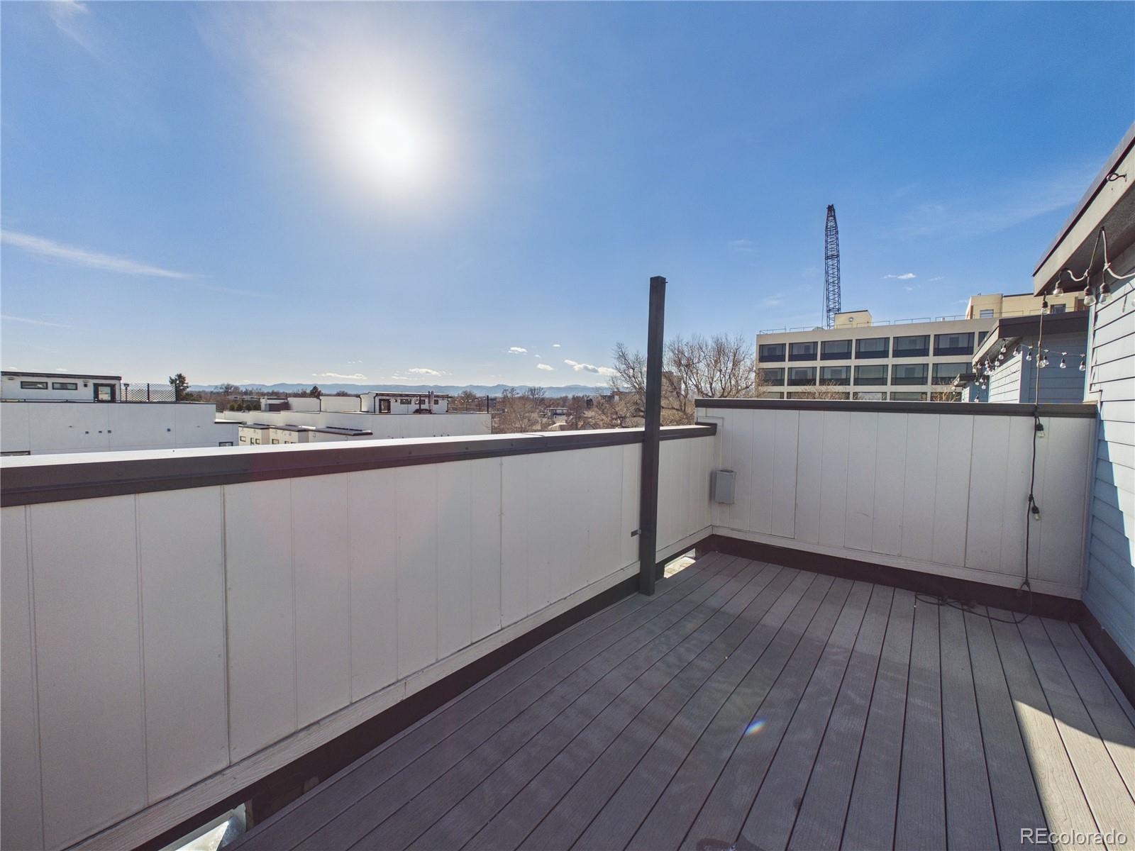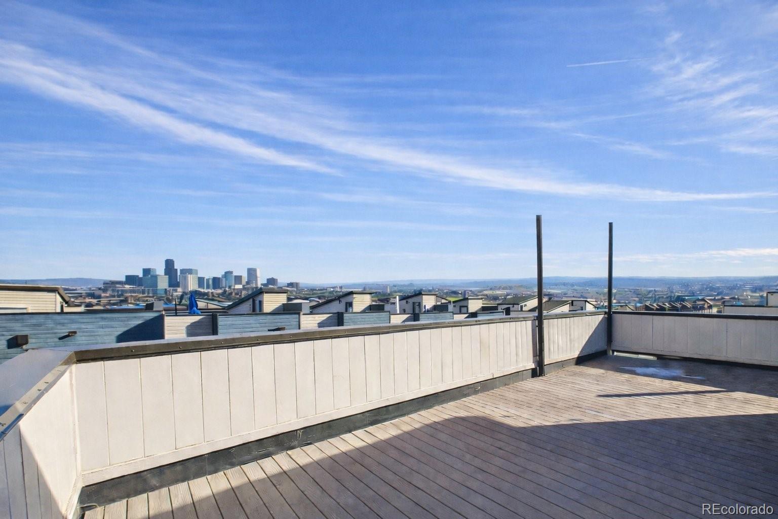 Live just one block from Sloan’s Lake in this picture-perfect, end-unit townhome featuring unbeatable city and mountain views from your massive private rooftop deck. Filled with natural light, the open-concept main level offers a stylish kitchen with quartz countertops, stainless steel appliances, gas range, breakfast bar, and plenty of cabinet space. The living and dining areas flow seamlessly, creating an ideal space for relaxing or entertaining. Upstairs, the primary suite includes a private 4-piece bath and walk-in closet. A second bedroom with its own en-suite bath and a convenient laundry closet complete the upper level. Enjoy fresh paint, brand-new flooring, and a 2-car attached garage, plus low-maintenance living in one of Denver’s most vibrant neighborhoods. Whether sipping morning coffee or enjoying sunset views, the rooftop deck is the true showstopper. All of this just steps from Sloan’s Lake, parks, dining, and more!