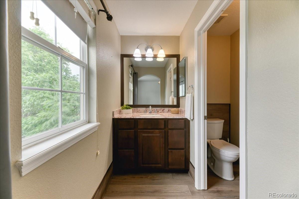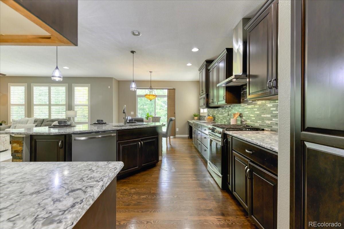 Gorgeous home at a great price! Discover this spacious 4,500+ sq ft single-family residence, ideally situated just minutes away from Red Rocks Amphitheatre and Golden. Upon entering, you are welcomed by formal living and dining rooms. Enjoy the elegance of high ceilings and solid wood floors throughout the main level. The office is conveniently located on the main floor. The kitchen is equipped with a gas range/oven, stainless steel appliances, and an eat-in dining area. An island boasting a stone façade and overhang seating completes this inviting space. The primary suite features a spacious bedroom adorned with wood-tiled accent ceiling tiles, along with a walk-in closet that boasts a comprehensive organization system. The updated bathroom is equipped with double sinks, windows that allow for natural light, and a lavish walk-in shower. The upper level also includes two additional bedrooms, a full bathroom, and an open loft that overlooks the lower area. The basement includes a great room and two additional bedrooms and 3/4 bath. The walkout basement opens up to a fully fenced yard featuring a stamped concrete covered patio, a hot tub, and mature maple and aspen trees that provide shade and vibrant colors in the fall. Additional highlights include a deck off the main level, perfect for entertaining, a two-car garage, and plenty of storage space. The home is conveniently located with quick access to C-470, I-70, and US-285, ensuring an easy commute to both Denver and the mountains. Nearby amenities encompass shopping, dining, hiking trails, and Bear Creek, all within walking distance. Nestled in a cul-de-sac, this property offers a low-traffic environment with welcoming neighbors. Whether you are taking in the mountain views from the deck, unwinding in the hot tub, or hosting gatherings in the spacious kitchen and living areas, this home provides ample space, functionality, and convenience in a highly sought-after foothills location.