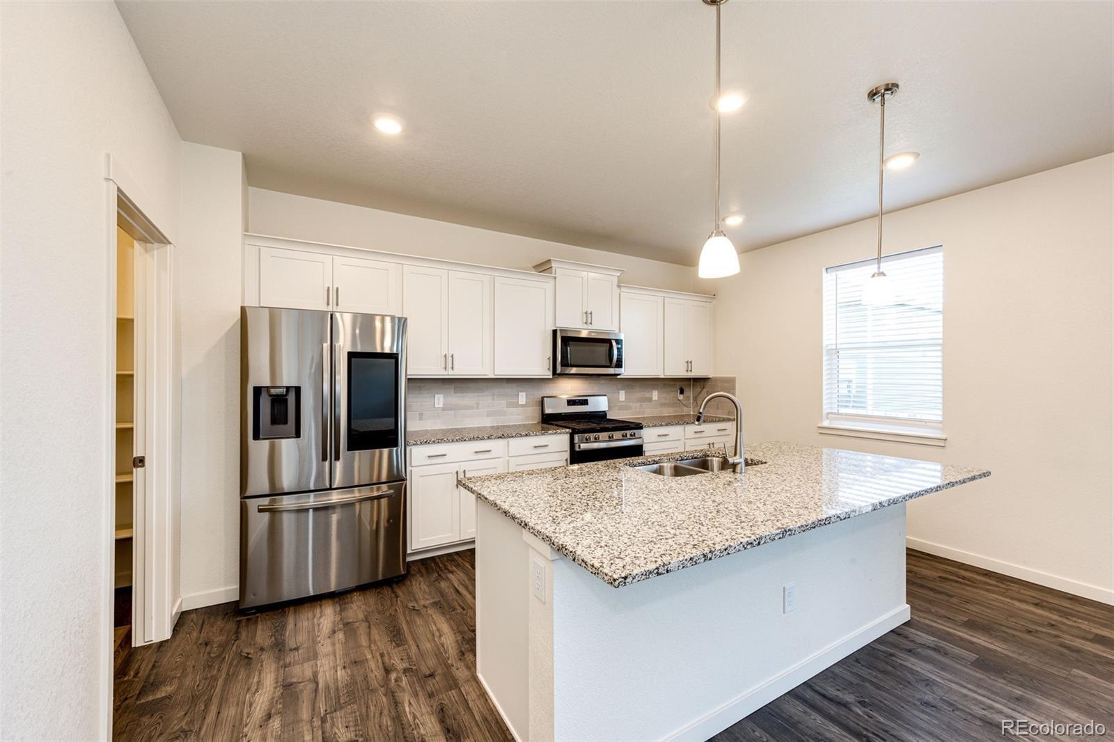 Welcome to this beautifully maintained 4-bedroom, 3-bath home located in the sought-after Timberleaf community. Better than new, this home features a 3-car garage, main floor study, full unfinished basement, and a spacious layout designed for modern living. The kitchen is a chef’s delight with granite countertops and stainless steel appliances, opening to a bright and inviting living area—perfect for entertaining or everyday life. Upstairs, enjoy four generous bedrooms, including a private primary suite, plus a versatile loft ideal for a media room, playroom, or second office. The large backyard offers plenty of space for gatherings, play, or future landscaping. Located near top-rated schools with easy access to DIA, parks, shopping, and major highways, this home offers both comfort and convenience. Move-in ready with upgrades already done—don’t miss out on this Timberleaf gem!
