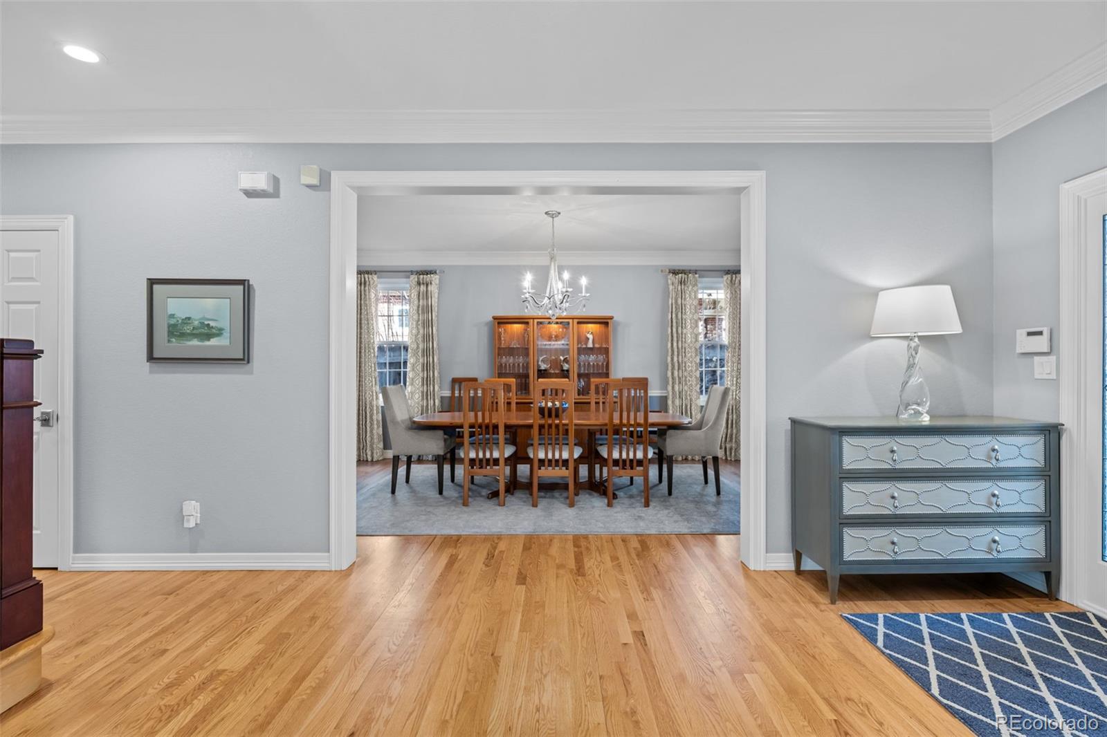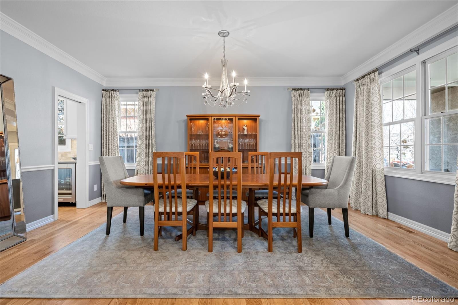 Washington Park East | Elevated Living Just Steps from It All! Perfectly positioned just around the corner from Gaylord Street & only four blocks to Washington Park, this exceptional 5-bedroom, 4-bath residence offers the best of Denver living. Built in 1994 & thoughtfully renovated in 2017, this home blends timeless craftsmanship with modern luxury in one of the city’s most sought-after neighborhoods. Tall ceilings & exquisite architectural details set the tone throughout, including custom built-ins and decorative coffered ceilings rarely found in newer construction. Hardwood floors extend across the main level and stairways, and dual HVAC systems ensure year-round comfort. The gourmet kitchen is designed to impress and perform, featuring a Sub-Zero refrigerator, Wolf range & double ovens, beverage & wine fridge, and microwave drawer. Abundant cabinetry with pull-outs, a butler’s pantry, generous counter space, and a large island make this space as functional as it is beautiful. Enjoy casual dining at the island or breakfast nook, and host memorable gatherings in the formal dining room. The main-floor office offers privacy with pocket doors and convenient access to the backyard patio—ideal for work-from-home flexibility. A marble gas fireplace anchors the elegant formal living room, creating a warm and inviting focal point. The primary suite is a true retreat, complete with a private south-facing balcony overlooking the maturely landscaped backyard. The spa-inspired bathroom features heated floors, a freestanding soaking tub, and dual custom closets. A convenient laundry chute connects directly to the main-floor laundry room. Three additional upper-level bedrooms are generously sized, each with vaulted ceilings and spacious closets. The recreation room is built for entertaining, offering custom built-ins, a wet bar, and flexible space that can easily be expanded by opening the room divider. This home is designed for effortless hosting & comfortable everyday living.