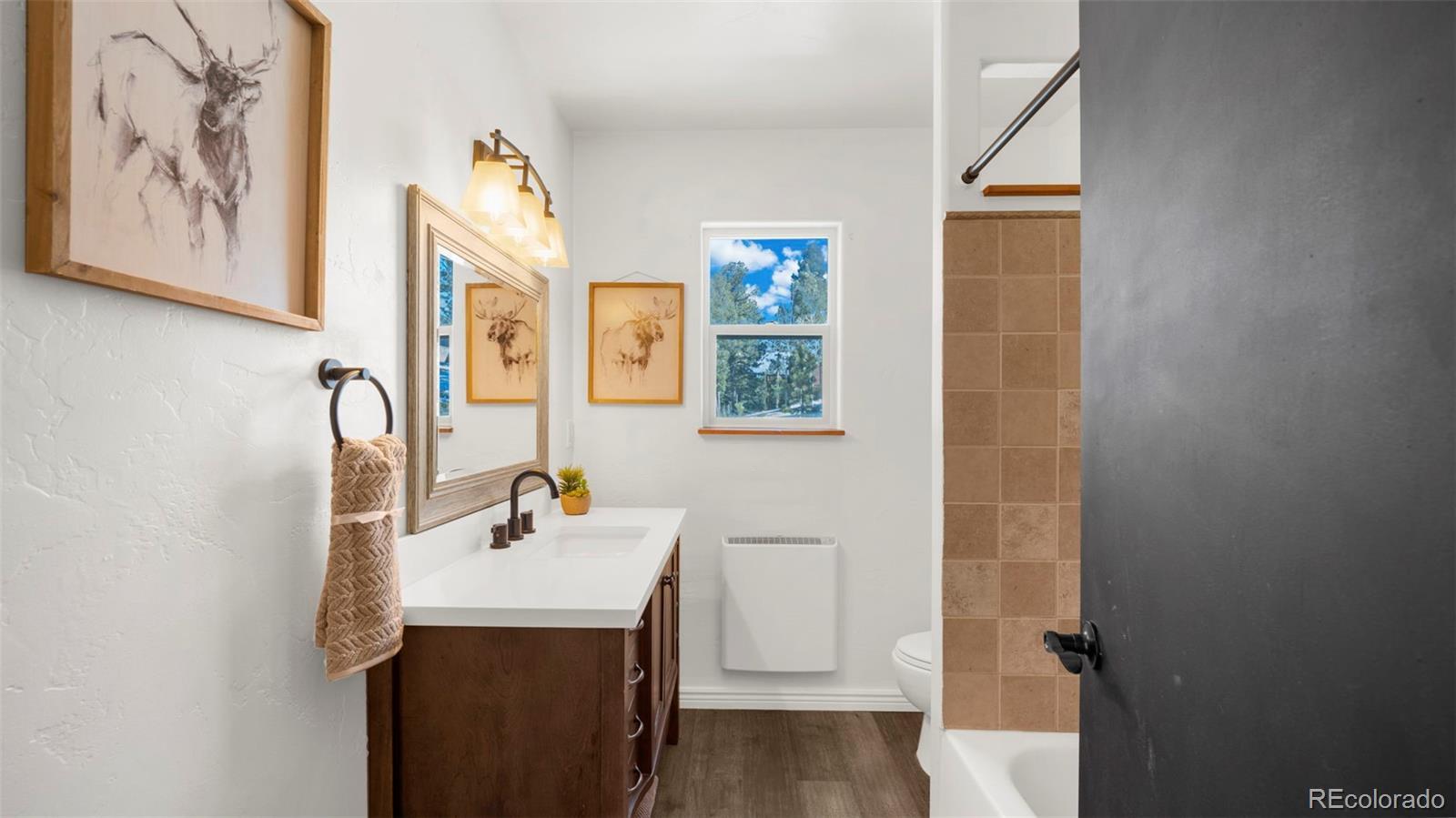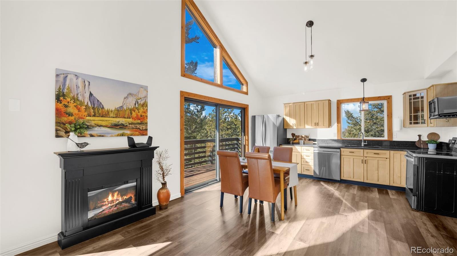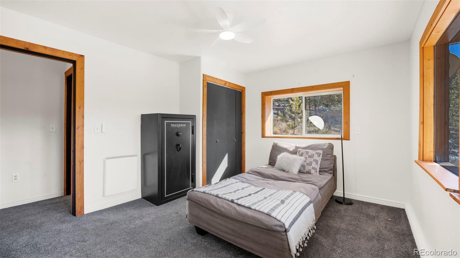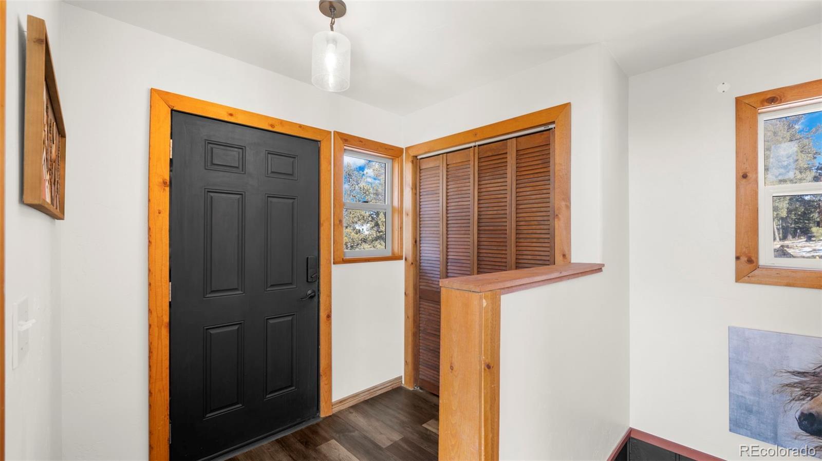 Nestled in a peaceful mountain setting surrounded by a mature mix of pine and aspen trees, this 1,536 square foot raised ranch-style home offers comfort, privacy, and convenient access to nearby amenities. The main level features an open floorplan designed for easy living and entertaining, highlighted by clerestory windows in the living room that fill the space with abundant natural light. Luxury vinyl flooring runs throughout the main level, providing durability and a cohesive modern look. The updated kitchen is well-appointed with LG stainless steel appliances, granite countertops, and ample cabinetry, making meal preparation both functional and inviting. Step outside to the expansive wraparound walkout deck, where you can relax or entertain while enjoying panoramic treetop views of the surrounding hills—a true mountain retreat. The walkout lower level offers excellent flexibility with a comfortable family room, two additional bedrooms, and an updated bathroom, ideal for guests, multi-generational living, or work-from-home needs. Outdoor features include street level RV parking, a fenced dog run, and plenty of usable space to enjoy the natural surroundings. With three bedrooms and two baths, a thoughtful layout, and a serene yet accessible location, this home strikes the perfect balance between mountain living and everyday convenience. A move-in-ready opportunity for those seeking space, light, and a peaceful Colorado lifestyle.