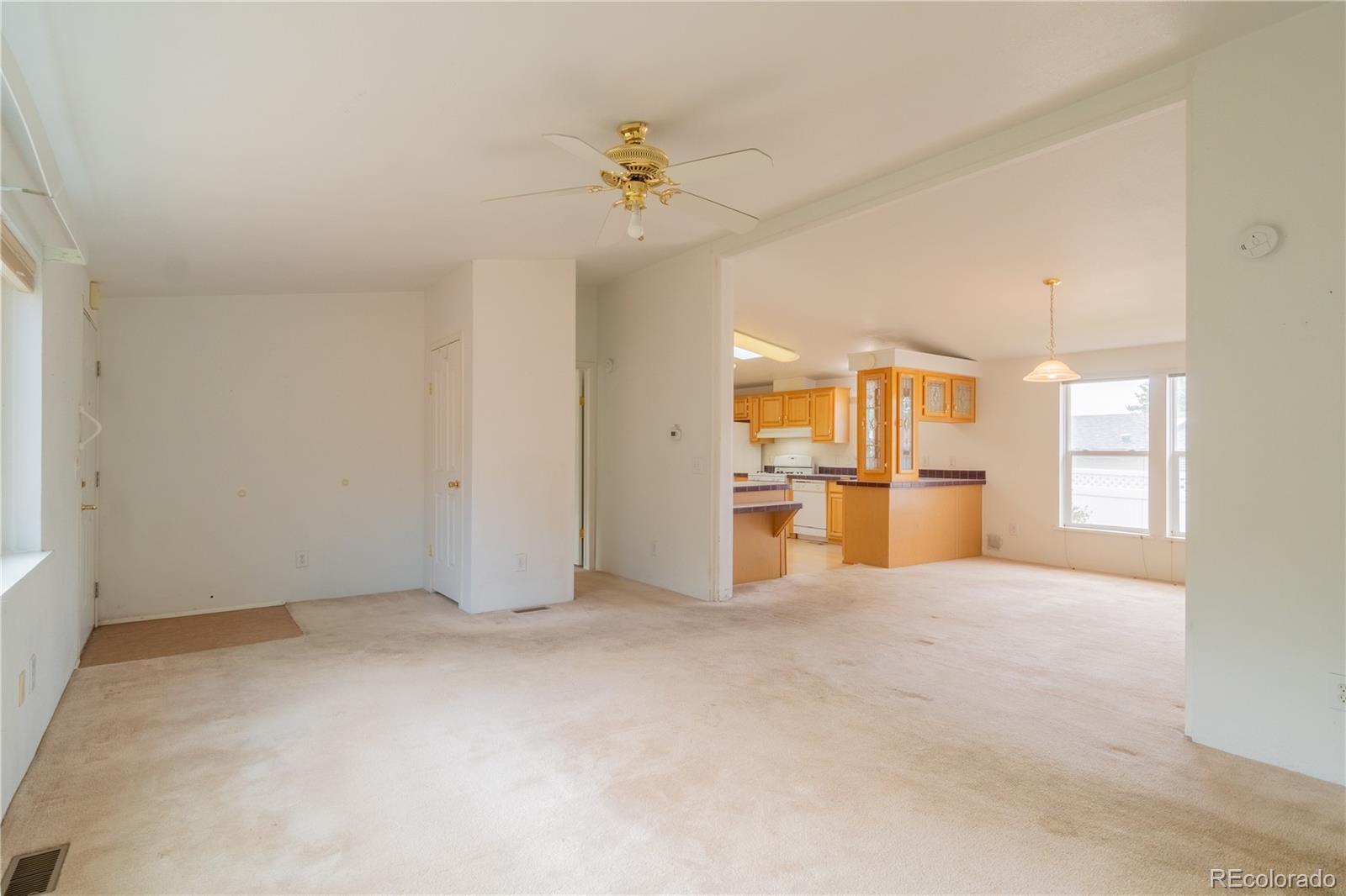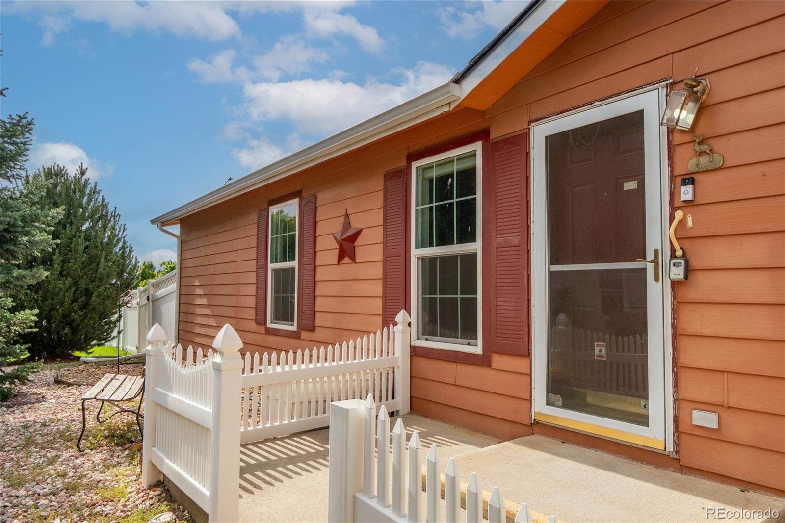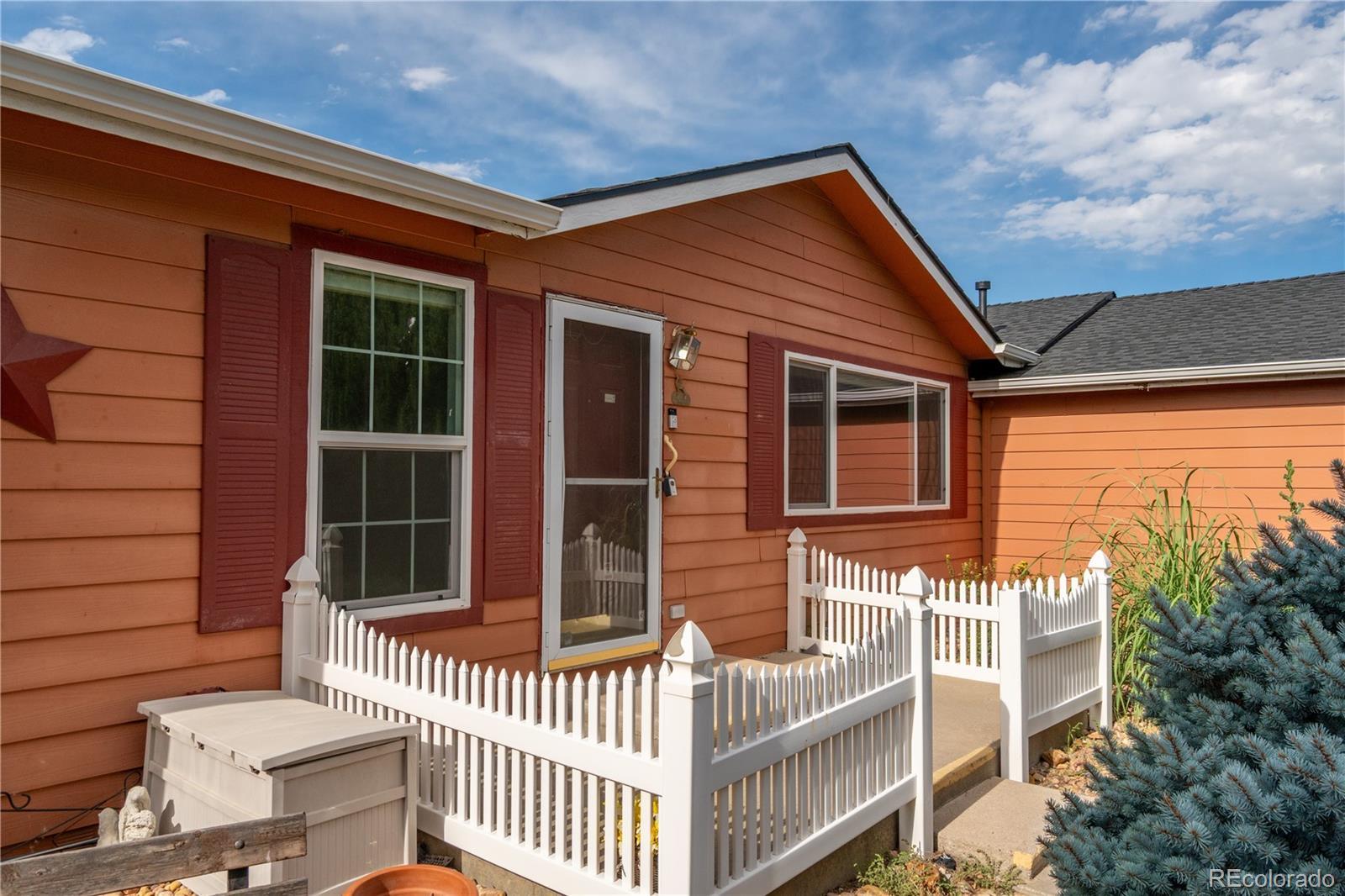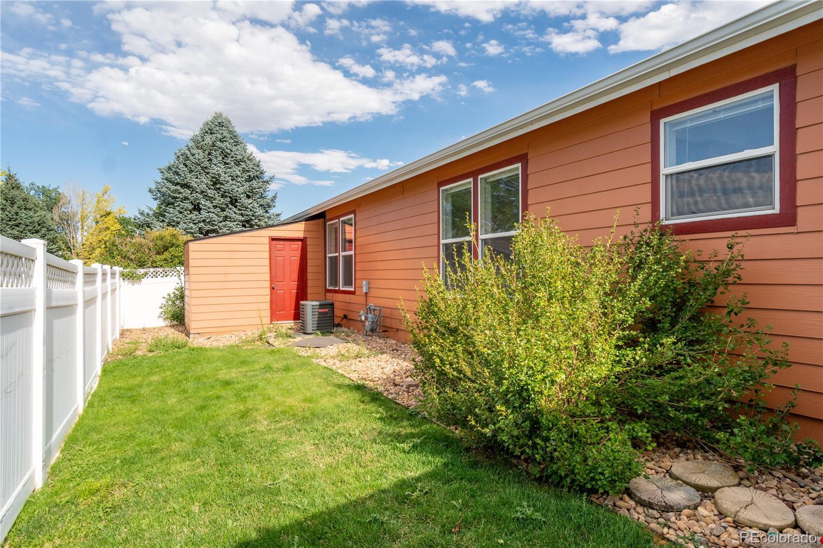 A SWEET DEAL JUST GOT SWEETER! PRICE REDUCED 10k! Welcome to a rare opportunity in the Prairie Greens community—a beautifully landscaped 2,016 sq ft home on a coveted corner lot with MOUNTAIN VIEWS in a quiet cul-de-sac. Originally the community manager’s property, this spacious residence boasts an open floor plan with a large kitchen featuring a pantry, ample counter space, cabinets, and skylights, seamlessly connecting to the living room, dining room, and family room. The family room, complete with a cozy fireplace, opens via sliding glass doors to a covered porch and fenced backyard, perfect for relaxation or entertaining. Store garden implements in the 9x6 shed in the backyard. Recent 2024 upgrades include a new roof, skylights, and select windows, enhancing energy efficiency and natural light. The oversized 2-car attached insulated & finished garage offers direct access to a convenient laundry room with washer and dryer included. Retreat to the primary bedroom, featuring a full bath with a soaking tub, walk-in shower, and walk-in closet. Enjoy the south-facing driveway and proximity to community amenities, including a park, clubhouse, fitness center, and pool, with easy access to I-25, Hwy-85, shopping, restaurants, and coffee shops. Part of a land lease community, the $815/month fee covers land, road maintenance, and access to community facilities—no HOA. Priced below market (allowing for flooring and painting updates) and Sold AS-IS, this home offers a fantastic opportunity to personalize and make it your own. Don’t miss this unique blend of space, location, and potential!