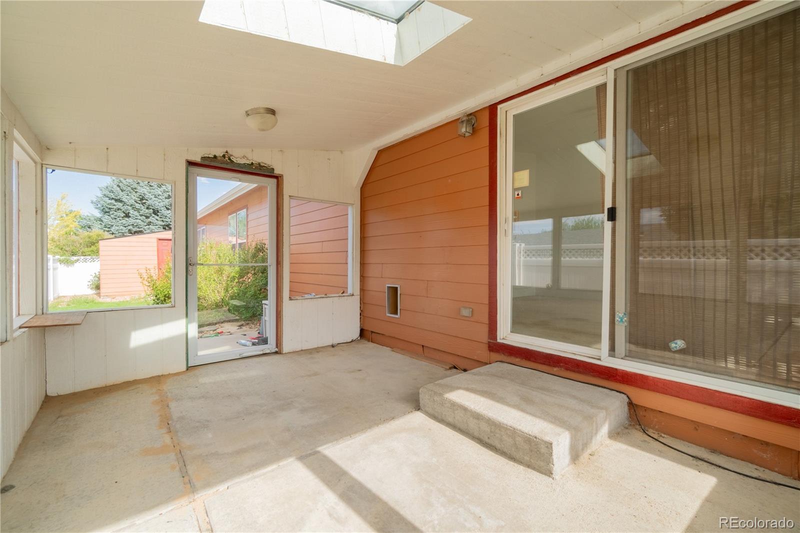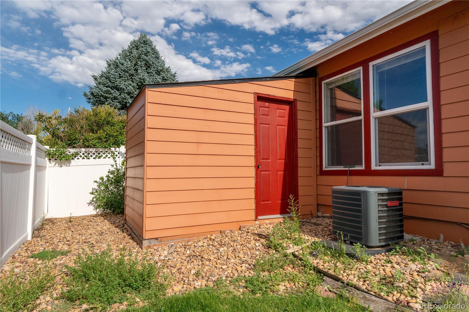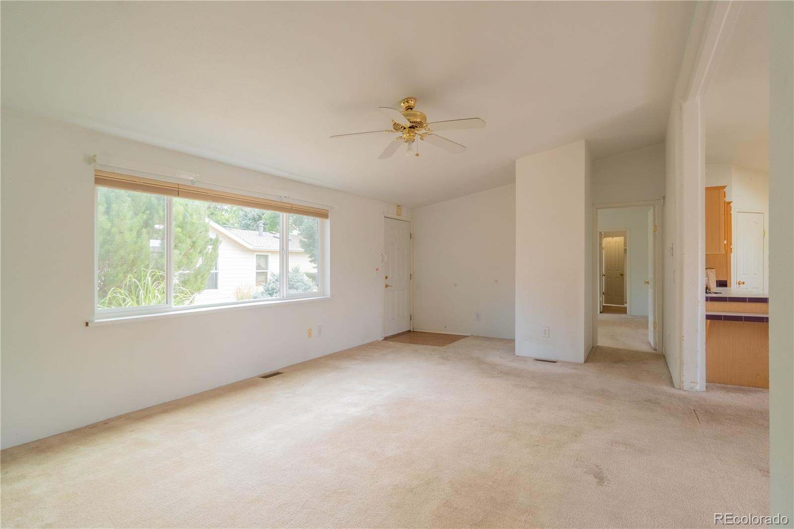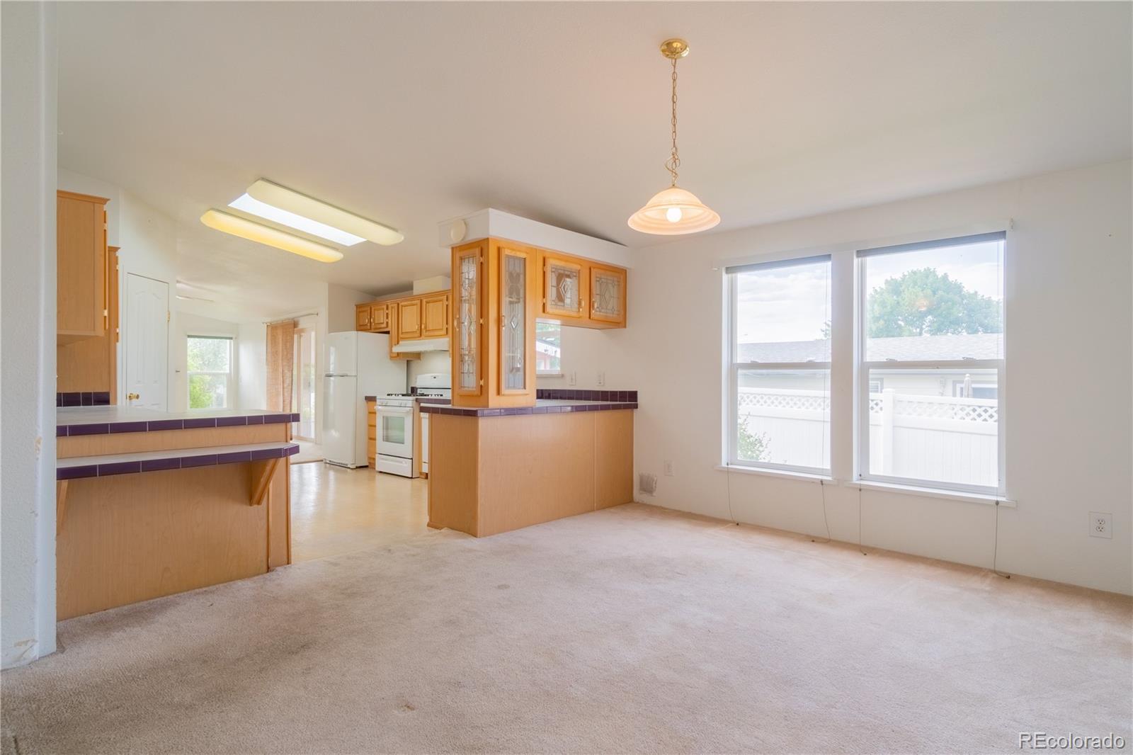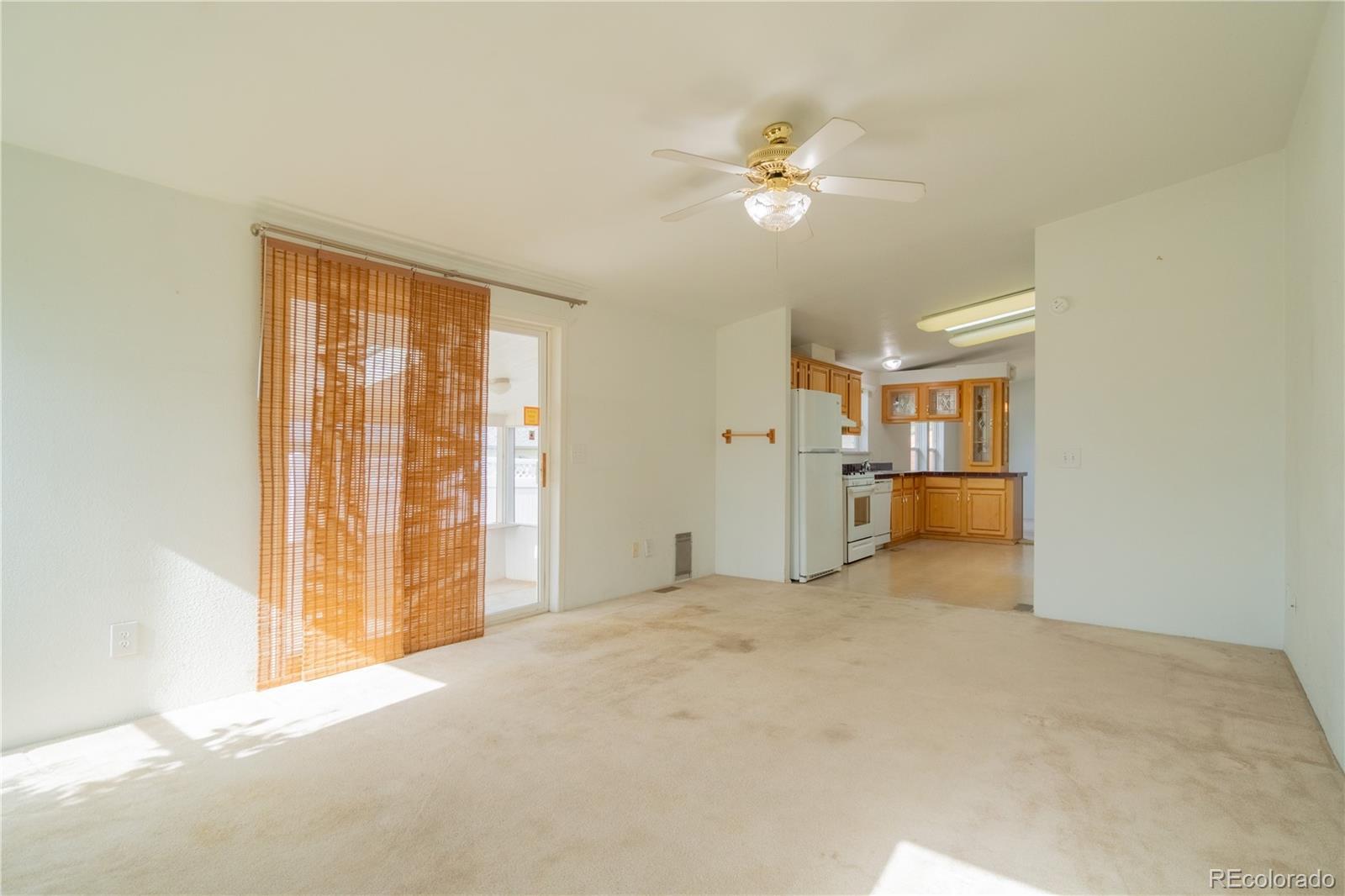 A SWEET DEAL JUST GOT SWEETER! PRICE REDUCED 10k! Welcome to a rare opportunity in the Prairie Greens community—a beautifully landscaped 2,016 sq ft home on a coveted corner lot with MOUNTAIN VIEWS in a quiet cul-de-sac. Originally the community manager’s property, this spacious residence boasts an open floor plan with a large kitchen featuring a pantry, ample counter space, cabinets, and skylights, seamlessly connecting to the living room, dining room, and family room. The family room, complete with a cozy fireplace, opens via sliding glass doors to a covered porch and fenced backyard, perfect for relaxation or entertaining. Store garden implements in the 9x6 shed in the backyard. Recent 2024 upgrades include a new roof, skylights, and select windows, enhancing energy efficiency and natural light. The oversized 2-car attached insulated & finished garage offers direct access to a convenient laundry room with washer and dryer included. Retreat to the primary bedroom, featuring a full bath with a soaking tub, walk-in shower, and walk-in closet. Enjoy the south-facing driveway and proximity to community amenities, including a park, clubhouse, fitness center, and pool, with easy access to I-25, Hwy-85, shopping, restaurants, and coffee shops. Part of a land lease community, the $815/month fee covers land, road maintenance, and access to community facilities—no HOA. Priced below market (allowing for flooring and painting updates) and Sold AS-IS, this home offers a fantastic opportunity to personalize and make it your own. Don’t miss this unique blend of space, location, and potential!