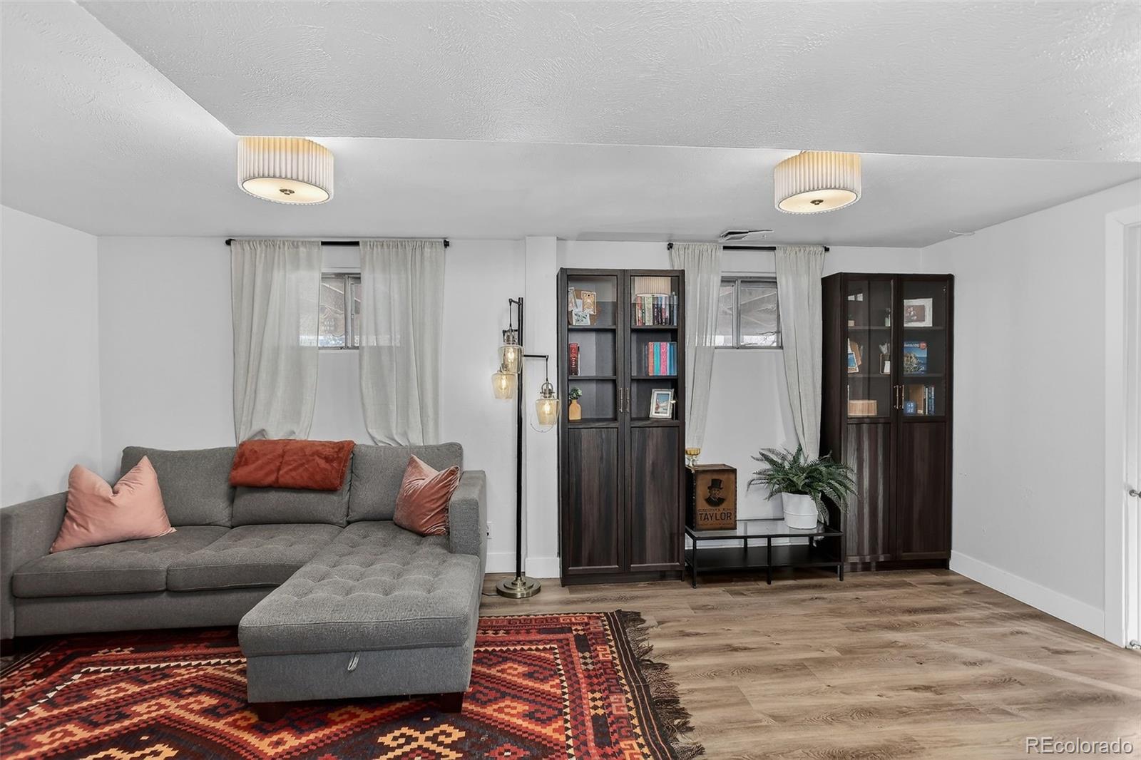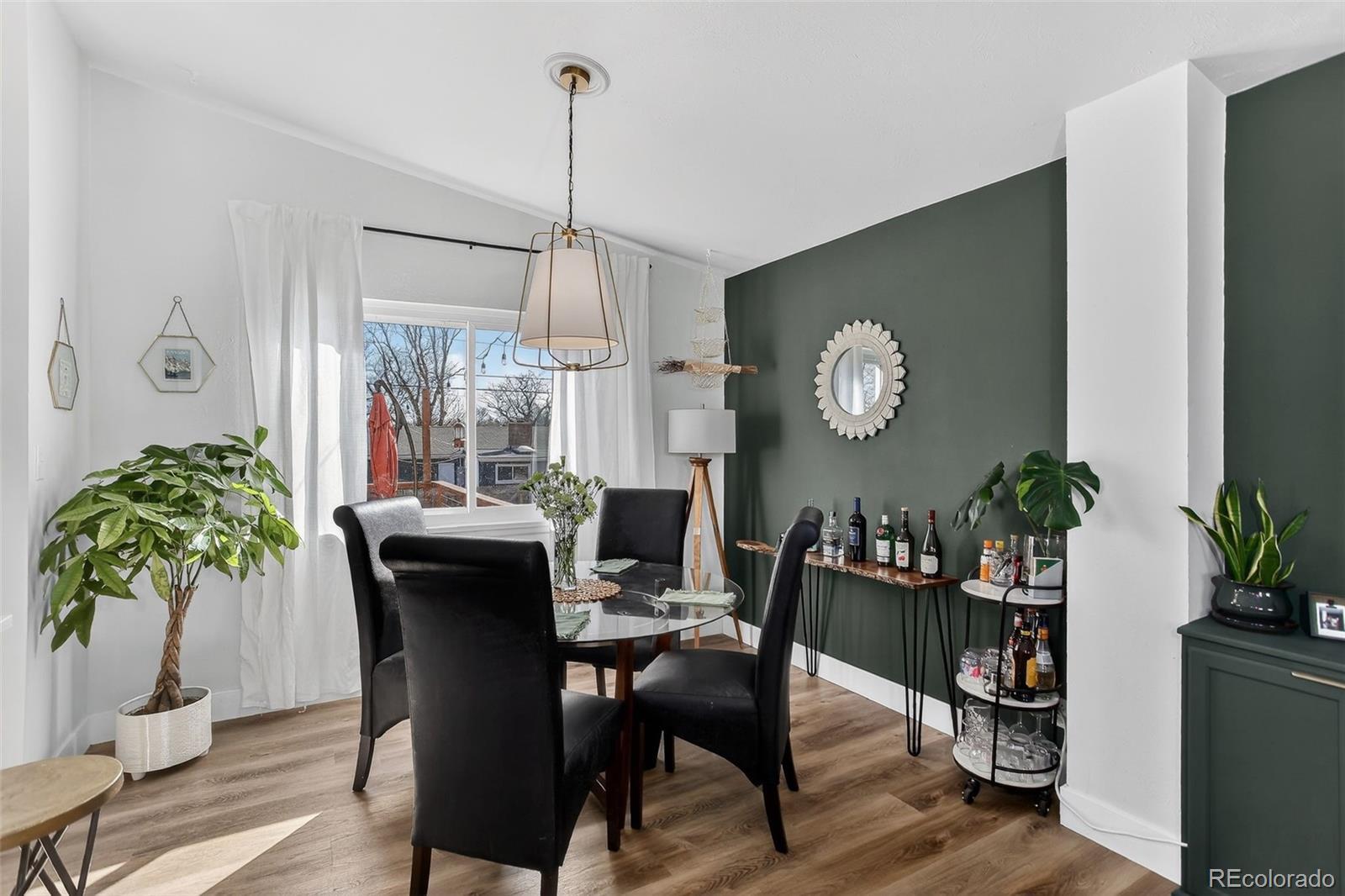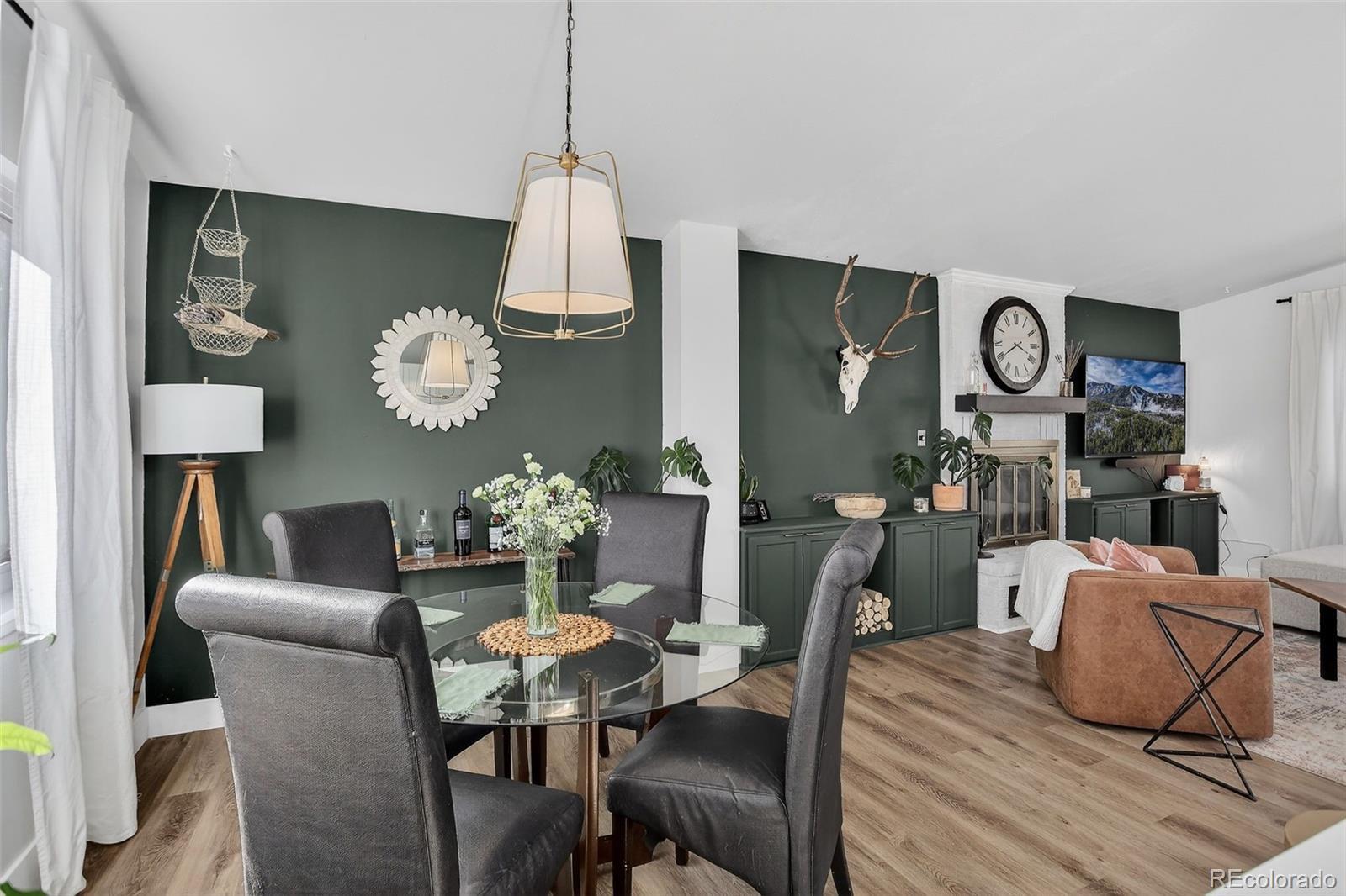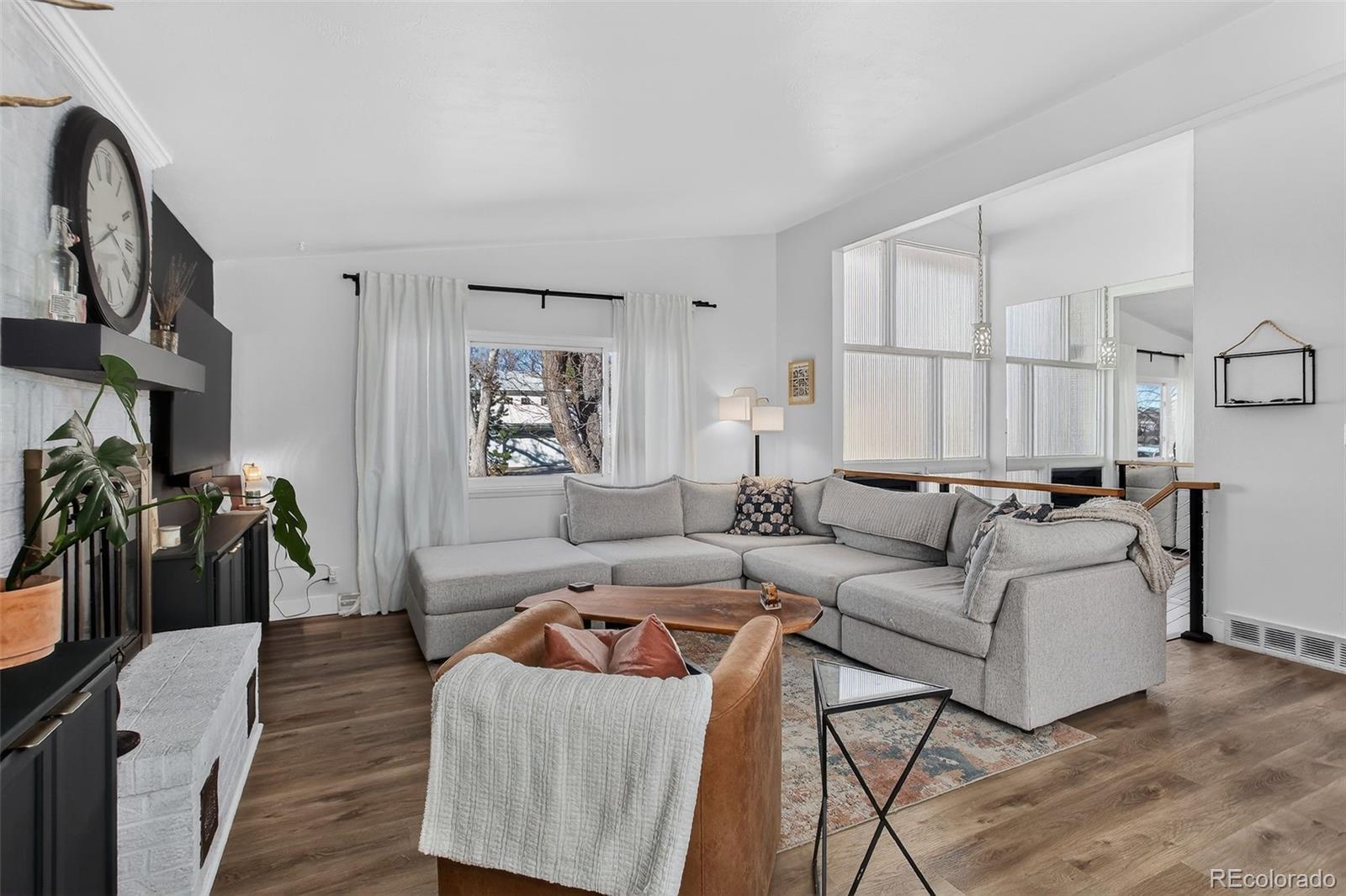 Ideally located in Aurora with convenient access to Anschutz Medical Campus, major highways, shopping, and dining, this beautifully updated bi-level home blends comfort with a modern vibe. Laminate flooring flows throughout the upper and lower levels, complemented by tasteful updates that create a clean, contemporary feel. The upper level features a welcoming living room with a wood-burning fireplace and custom built-in cabinetry, a stylish dining area with pendant lighting, and an updated eat-in kitchen showcasing granite countertops, Whirlpool appliances, and direct backyard access—perfect for both everyday living and entertaining. Two upper-level bedrooms include a spacious primary suite with a ceiling fan and a sleek 3/4 tiled bathroom. The lower level expands the living space with a large family room, three additional bedrooms with closets, a full bathroom with tiled tub/shower, and a dedicated laundry room with washer and dryer included. Offering flexible living, modern updates, and a highly accessible location, this move-in-ready home presents a fantastic opportunity in an established neighborhood.