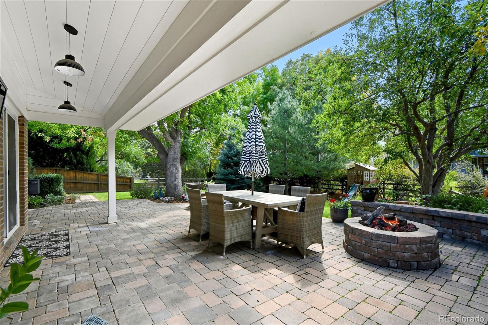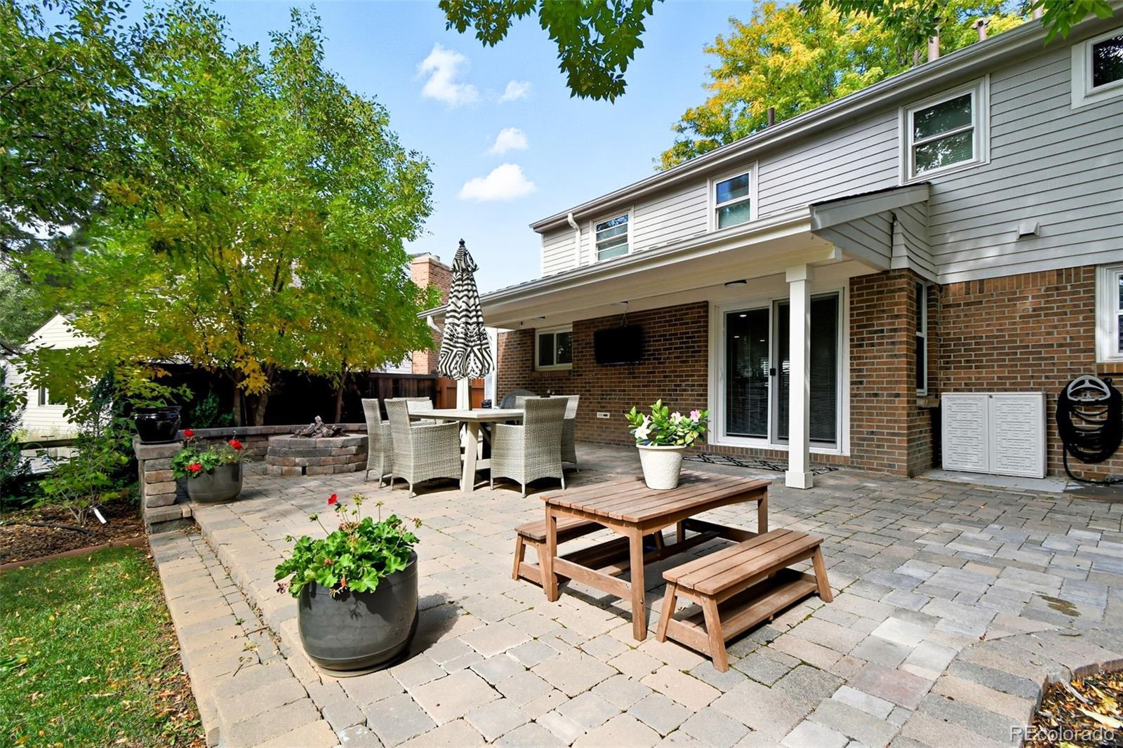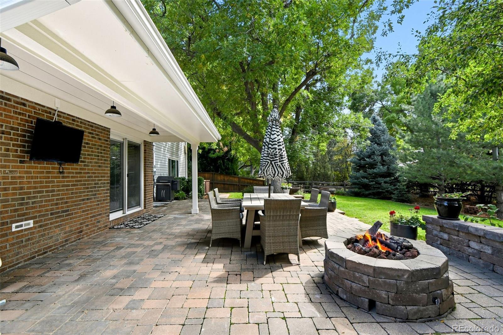 This beautiful Homestead home offers one of the neighborhood’s largest and most desirable floor plans, perfectly positioned on a sprawling, tree-lined lot. With 5 bedrooms and 4 bathrooms - including four bedrooms on the upper level - this residence combines space, function, and timeless style. Step inside to a welcoming foyer that flows effortlessly into the formal dining room, kitchen, and breakfast nook - an entertainer’s dream layout! The kitchen features a full stainless steel appliance package with new double ovens, a gas range, under-cabinet lighting, and a large center island perfect for gatherings. Adjacent, a versatile flex room serves as an ideal home office or playroom, connecting seamlessly to the cozy family room complete with wainscoting, crown molding, plantation shutters, and a gas fireplace. The outdoor living space rivals the indoors - complete with a built-in firepit, outdoor TV, and multiple lounge and dining areas overlooking the flat, private backyard—ideal for both everyday living and entertaining. Upstairs, the primary suite is a showstopper. Thoughtfully remodeled, it features vaulted ceilings, a reading nook with built-ins, and a spa-inspired ensuite bathroom with dual vanities, a designer shower with rainhead, and a custom walk-in closet that looks straight out of a design magazine. The finished basement was remodeled in 2025 and offers a fun and flexible retreat - featuring multiple entertainment zones, a tiered lounge area for movie nights or sleepovers, and an additional guest bedroom and bath. Recent upgrades include a new Class-4 Roof (2025), new water heater (2025), upgraded electrical panel (2023), new garage doors (2021), newer windows (2019-2021), and dual HVAC zones. Located just steps from the North Pool (one of three in the community), residents also enjoy tennis courts, greenbelts, and access to the Willow Springs Open Space and Trail System. All of this, within the highly sought-after Cherry Creek School District.