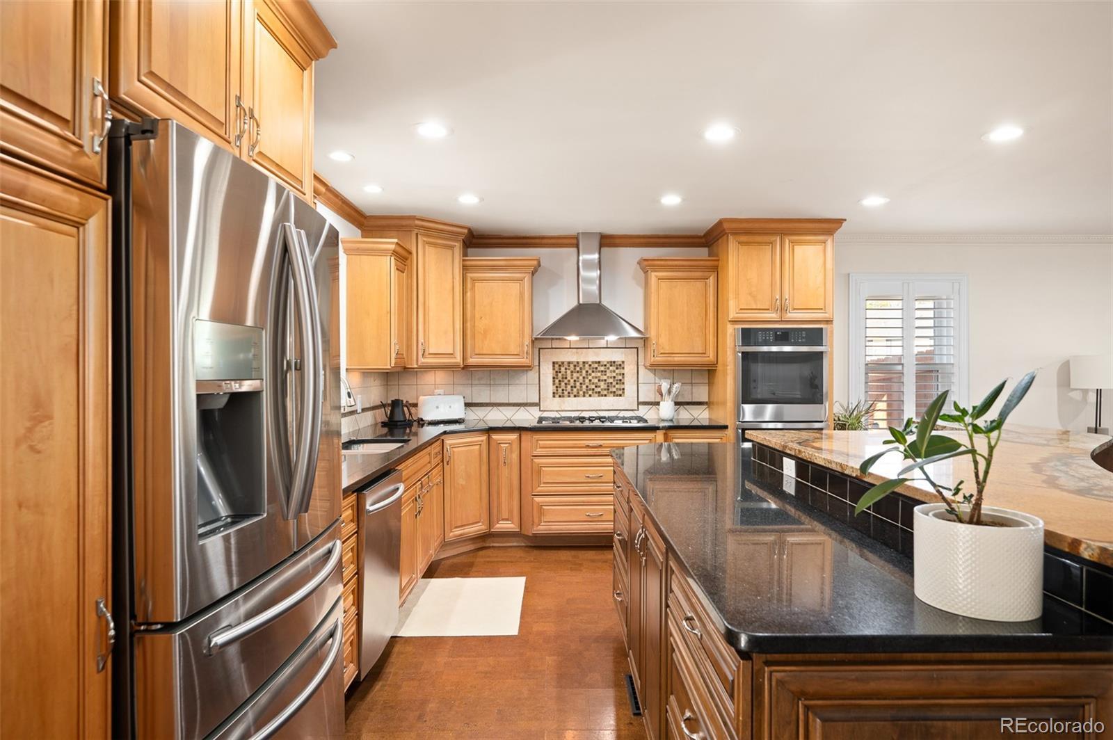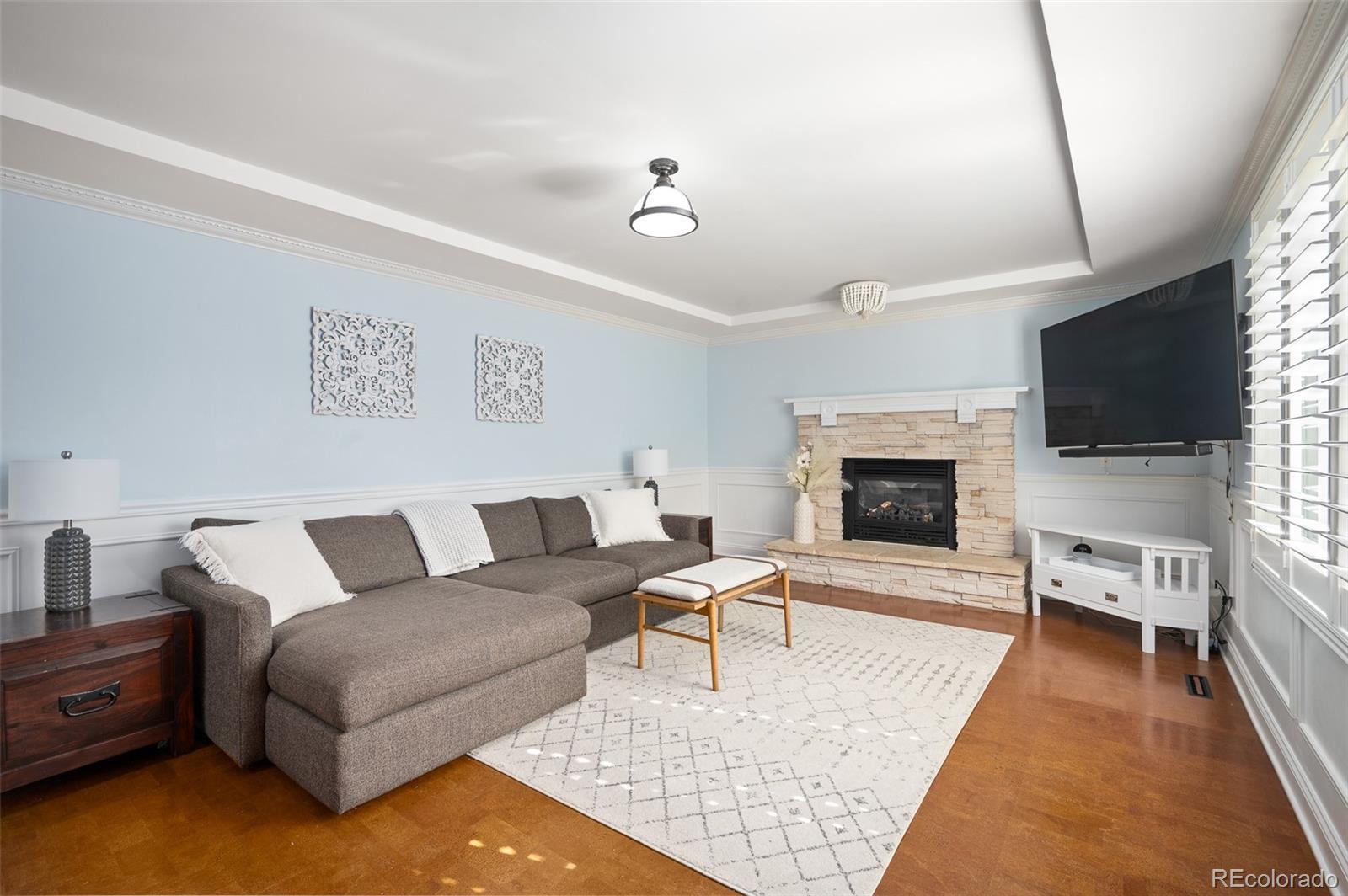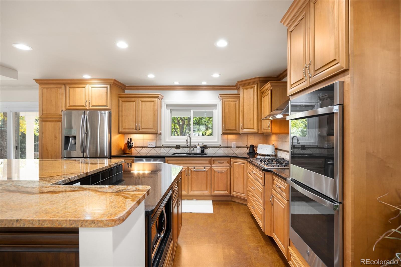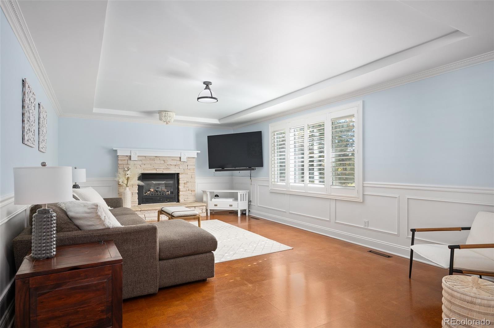 This beautiful Homestead home offers one of the neighborhood’s largest and most desirable floor plans, perfectly positioned on a sprawling, tree-lined lot. With 5 bedrooms and 4 bathrooms - including four bedrooms on the upper level - this residence combines space, function, and timeless style. Step inside to a welcoming foyer that flows effortlessly into the formal dining room, kitchen, and breakfast nook - an entertainer’s dream layout! The kitchen features a full stainless steel appliance package with new double ovens, a gas range, under-cabinet lighting, and a large center island perfect for gatherings. Adjacent, a versatile flex room serves as an ideal home office or playroom, connecting seamlessly to the cozy family room complete with wainscoting, crown molding, plantation shutters, and a gas fireplace. The outdoor living space rivals the indoors - complete with a built-in firepit, outdoor TV, and multiple lounge and dining areas overlooking the flat, private backyard—ideal for both everyday living and entertaining. Upstairs, the primary suite is a showstopper. Thoughtfully remodeled, it features vaulted ceilings, a reading nook with built-ins, and a spa-inspired ensuite bathroom with dual vanities, a designer shower with rainhead, and a custom walk-in closet that looks straight out of a design magazine. The finished basement was remodeled in 2025 and offers a fun and flexible retreat - featuring multiple entertainment zones, a tiered lounge area for movie nights or sleepovers, and an additional guest bedroom and bath. Recent upgrades include a new Class-4 Roof (2025), new water heater (2025), upgraded electrical panel (2023), new garage doors (2021), newer windows (2019-2021), and dual HVAC zones. Located just steps from the North Pool (one of three in the community), residents also enjoy tennis courts, greenbelts, and access to the Willow Springs Open Space and Trail System. All of this, within the highly sought-after Cherry Creek School District.