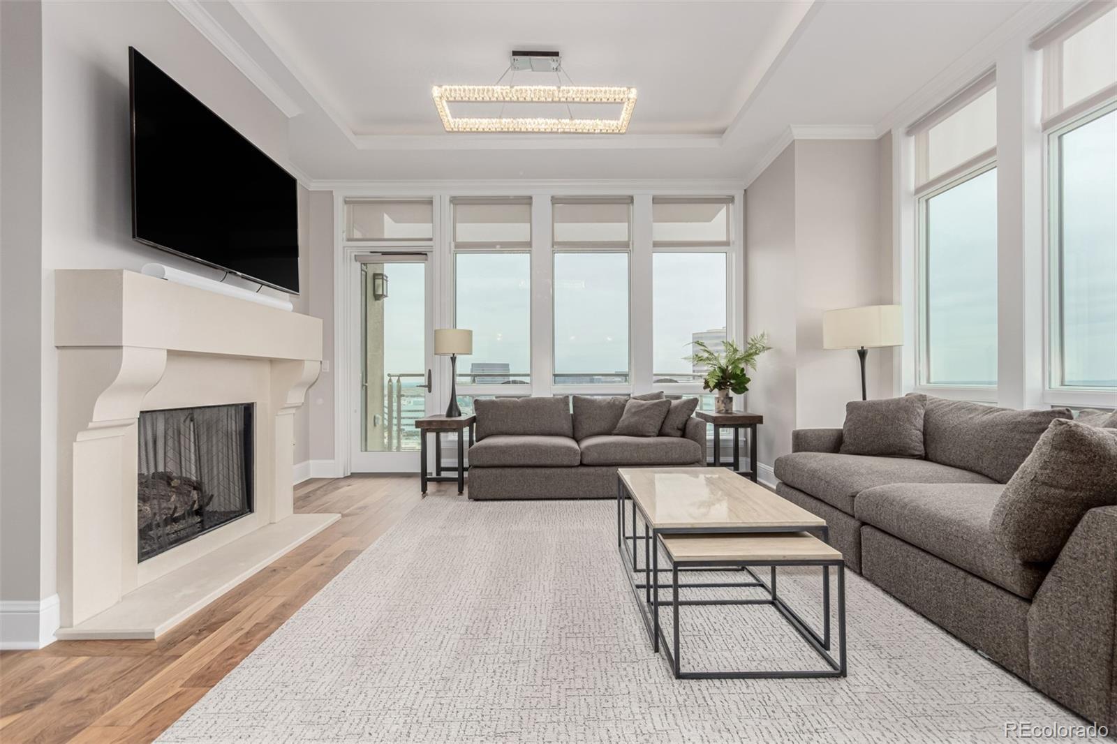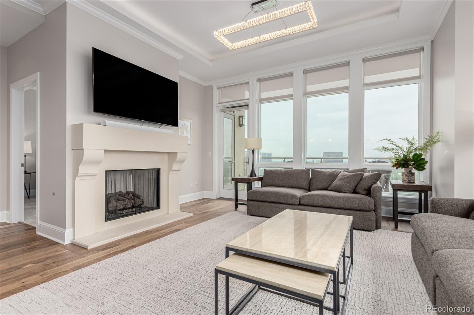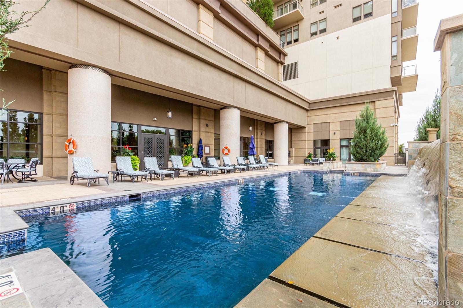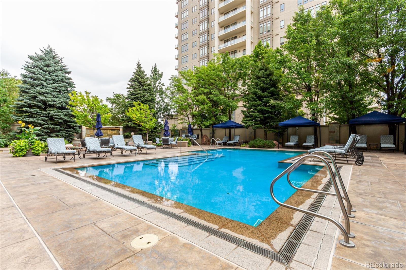 Experience refined living at Landmark Towers in Greenwood Village, where sophistication meets convenience. This corner unit boasts high ceilings, abundant natural light, and thoughtful touches like newer carpet, fresh paint, and custom shades with blackout curtains. Inviting living area features a cozy fireplace, dramatic glass windows, and wood floors, all flowing seamlessly to a private balcony with a gas hookup ideal for grilling while soaking in stunning mountain views. Chef-inspired kitchen showcases stainless steel appliances, wall ovens, a large island with seating for four, granite counters and abundant built-in cabinetry. Primary suite is a true retreat with its own balcony access, spa-like bathroom offering granite counters, double sinks, a glass-enclosed shower, a soaking tub, and custom walk-in closets. A second bedroom also enjoys a custom closet and en-suite bathroom. Living at the Landmark Towers means more than just a home; it’s a lifestyle! Indulge in resort-style amenities such as indoor and outdoor pools, hot tubs, an updated fitness center, wine cellar, theater room, incredible concierge services, entertainment lounges and even fresh cookies in the mornings. As a resident, you’ll also have access to the West Building’s pool, hot tub, and outdoor gathering spaces. The location is unmatched—within the sought-after Cherry Creek High School boundaries and just a short walk to restaurants, coffee shops, the Landmark movie theater, and wellness studios. Commuting is a breeze with easy access to I-25, Belleview Light Rail Station, and Cherry Creek Reservoir for weekend recreation. This unit includes two deeded parking spaces conveniently near the garage entrance, plus a storage unit. Pet-friendly and community-focused, Landmark Towers truly has it all.