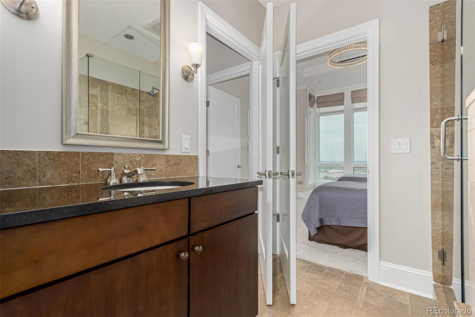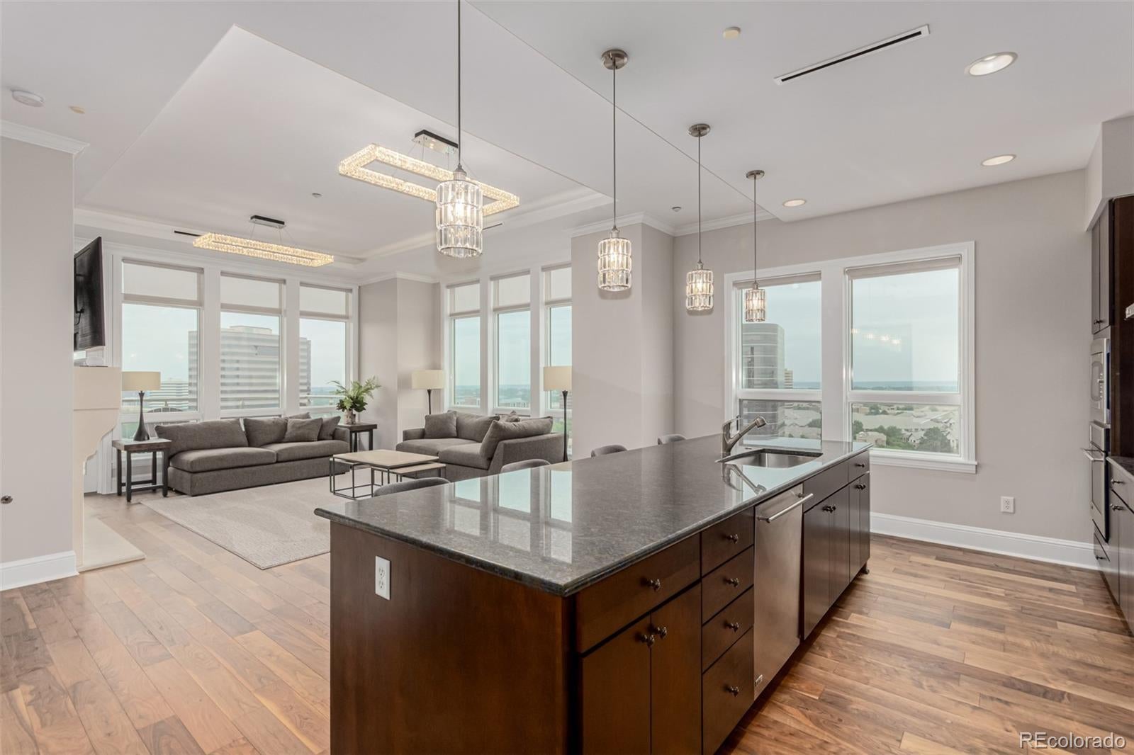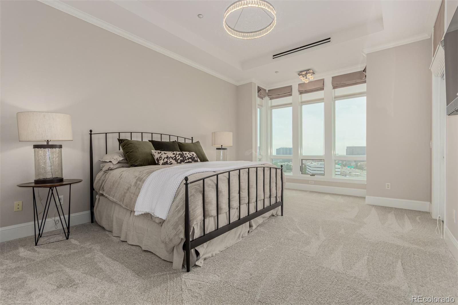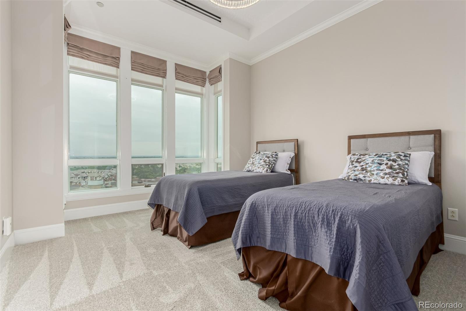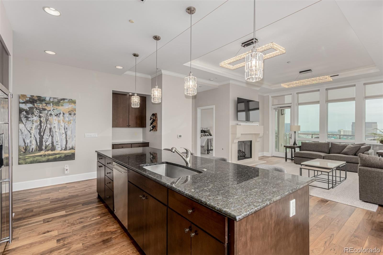 Experience refined living at Landmark Towers in Greenwood Village, where sophistication meets convenience. This corner unit boasts high ceilings, abundant natural light, and thoughtful touches like newer carpet, fresh paint, and custom shades with blackout curtains. Inviting living area features a cozy fireplace, dramatic glass windows, and wood floors, all flowing seamlessly to a private balcony with a gas hookup ideal for grilling while soaking in stunning mountain views. Chef-inspired kitchen showcases stainless steel appliances, wall ovens, a large island with seating for four, granite counters and abundant built-in cabinetry. Primary suite is a true retreat with its own balcony access, spa-like bathroom offering granite counters, double sinks, a glass-enclosed shower, a soaking tub, and custom walk-in closets. A second bedroom also enjoys a custom closet and en-suite bathroom. Living at the Landmark Towers means more than just a home; it’s a lifestyle! Indulge in resort-style amenities such as indoor and outdoor pools, hot tubs, an updated fitness center, wine cellar, theater room, incredible concierge services, entertainment lounges and even fresh cookies in the mornings. As a resident, you’ll also have access to the West Building’s pool, hot tub, and outdoor gathering spaces. The location is unmatched—within the sought-after Cherry Creek High School boundaries and just a short walk to restaurants, coffee shops, the Landmark movie theater, and wellness studios. Commuting is a breeze with easy access to I-25, Belleview Light Rail Station, and Cherry Creek Reservoir for weekend recreation. This unit includes two deeded parking spaces conveniently near the garage entrance, plus a storage unit. Pet-friendly and community-focused, Landmark Towers truly has it all.