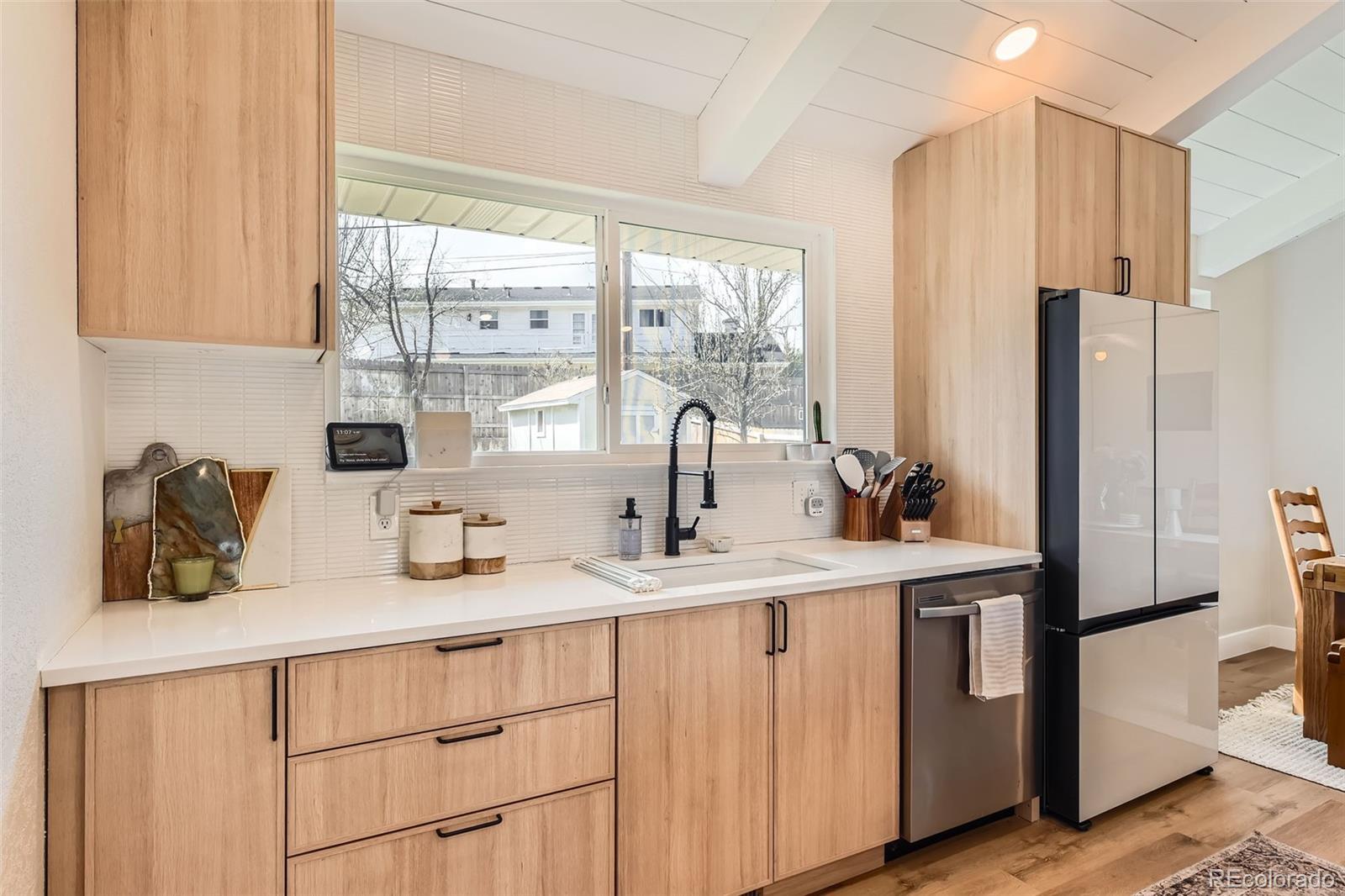 ***NO SHOWINGS UNTIL OCTOBER 4th*** SHOWING DAYS & TIMES: TH - FR 4-7 pm, Sa 10-2 pm **ACTIVE LITIGATION | STRUCTURAL DAMAGE | SOLD 'AS-IS' *NO REPAIRS* | OFFERS REQUIRE 3RD PARTY APPROVAL | DOES NOT QUALIFY FOR FINANCING - CASH ONLY** Welcome to a fully renovated split level home showcasing contemporary design and designer upgrades throughout. An open floor plan seamlessly connects the spacious great room, dining room and kitchen providing an exceptional living space. The gourmet kitchen is equipped with a massive quartz island, modern appliances, and a cheerful prep space with windows. Newer: roof/furnace/windows. Abundant natural light fills this beautiful home. As you wander upstairs, discover a generously sized primary ensuite with dual shower heads and frameless glass enclosure for an indulgent spa experience. The lower level features a spacious family room equipped with a wet bar, wine fridge, and a cozy wood burning fireplace. The lower level provides convenient access to the covered patio and expansive yard. Tucked away from the rest of the home for ultimate privacy, the finished basement includes a private retreat featuring a media room, laundry room, and ensuite bedroom with a giant spa shower. The backyard has a covered patio and the landscaped backyard offers two areas for outdoor activities. Located in Littleton's Leawood neighborhood, just a few blocks east of Foothills Park, Clement Park, Raccoon Creek Golf Course, Columbine High School, and Southwest Plaza's shopping/restaurants. PLEASE NOTE: All renovations completed by previous fix/flip owners, without permits, prior to owners purchase in May 2024. Disclosures are uploaded to the supplemental section. ***NO SHOWINGS UNTIL OCTOBER 4th*** SHOWING DAYS & TIMES: TH - FR 4-7 pm, Sa 10-2 pm *ACTIVE LITIGATION | STRUCTURAL DAMAGE | SOLD 'AS-IS' *NO REPAIRS* | OFFERS REQUIRE 3RD PARTY APPROVAL | DOES NOT QUALIFY FOR FINANCING - CASH ONLY*