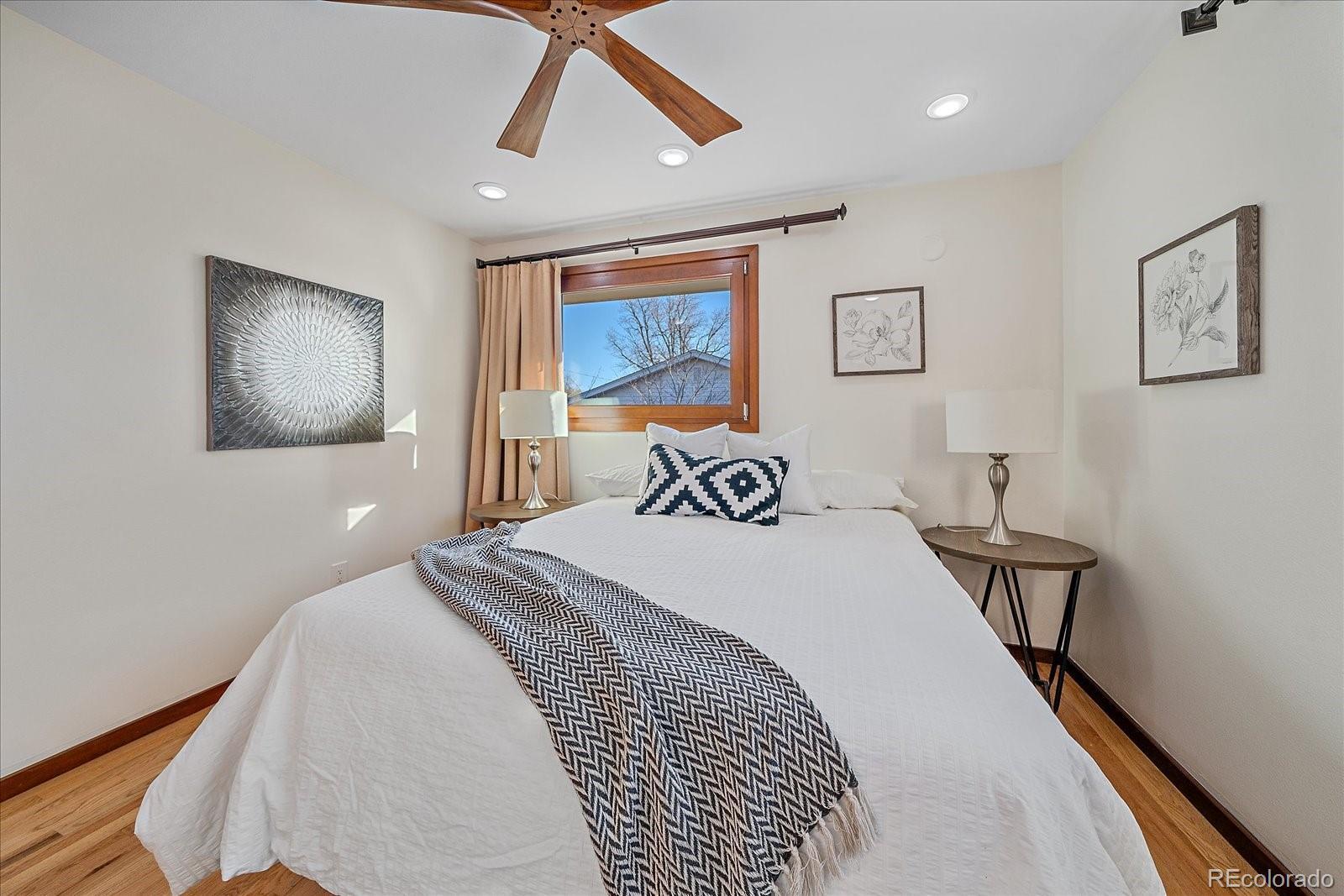 Effortless luxury in established Maplewood Estates. This curated residence blends timeless materials, exceptional craftsmanship, and low-maintenance living. Designed for long-term ownership, the home has been comprehensively upgraded with an emphasis on quality, efficiency, and enduring style. Interior features sleek hardwoods, custom African Mahogany doors, trim & baseboards, Amantii BI-Slim electric fireplace + new interior paint. Well appointed kitchen w/ Cesarstone countertops, custom Woodland cabinetry, under-cabinet lighting, GE Café appliances & new Samsung gas range w/ pot filler. Major systems have been thoughtfully modernized, including Marvin Clad Magnum tilt-and-turn triple-pane Mahogany windows for superior insulation and elegant European design + brand new roof, 200-AMP electrical service, tankless water heater, and updated high-efficiency Trane furnace and air conditioning. Tastefully updated baths. LED lighting throughout. DC ceiling fans in bedrooms & living areas. EasyClosets system in primary. Intentionally designed exterior adds beauty and low upkeep. Hardie Board siding, custom cedar fencing, hand-laid industrial-grade paver sidewalks & driveway. Elevated outdoor living - Italian porcelain tile patio, low-water natural landscaping, mature fruit trees, bepsoke garden artwork, cedar garden shed & integrated landscape lighting. Home featured in both Arvada Historic Garden Tour and Lakewood Art Center Garden Tour. Extraordinary opportunity for buyers seeking refined, low-maintenance living where craftsmanship, comfort, and quiet luxury converge.