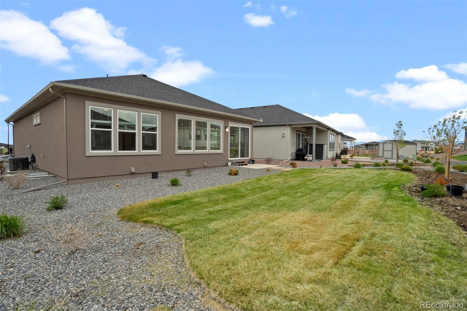 Built in 2023 by David Weekley Homes, this like-new Tibbetts floor plan is located in the highly desirable Revel at Wolf Ranch community and offers a perfect blend of style, space, and functionality. The main level showcases 10’ ceilings and an open-concept layout that seamlessly connects the living room, dining area, and gourmet kitchen. Designed with both comfort and convenience in mind, the main level also features a dedicated office, laundry room, and a spacious primary suite. The kitchen is a chef’s dream with white cabinetry, Tofino quartz countertops, a large island, and upgraded appliances—including a 36” gas cooktop, vent hood, built-in microwave, and electric oven. The primary suite offers a spa-shower, double vanity, and walk-in closet with built-in wood shelving. The finished basement includes a second living room space, two additional bedrooms, and a full bath, with unfinished space currently used as large storage room but perfect for a future home gym, office, or future bedroom. Additional highlights include front and rear landscaping, quartz countertops in all full bathrooms, and abundant natural light throughout. Revel at Wolf Ranch offers fantastic community amenities including a lake, clubhouse, park hosting family friendly community events, dog park, walking trails—all within the award-winning D20 school district. This is a rare opportunity to own a move-in ready home in one of Colorado Springs’ premier neighborhoods.