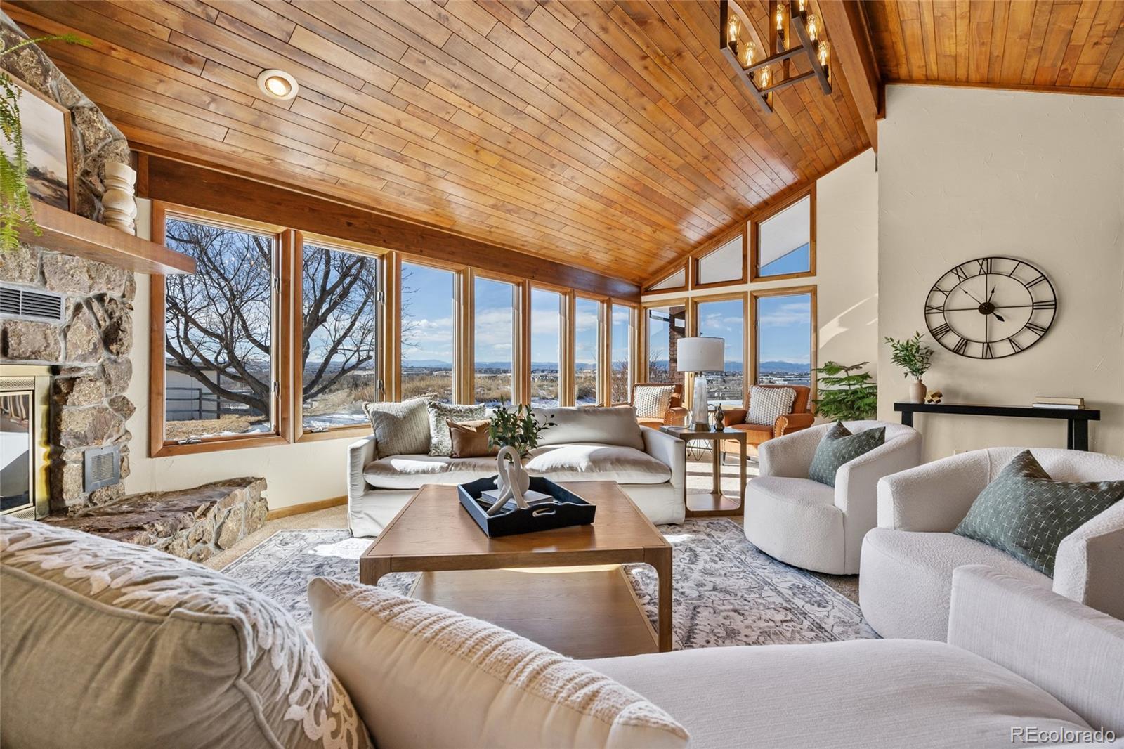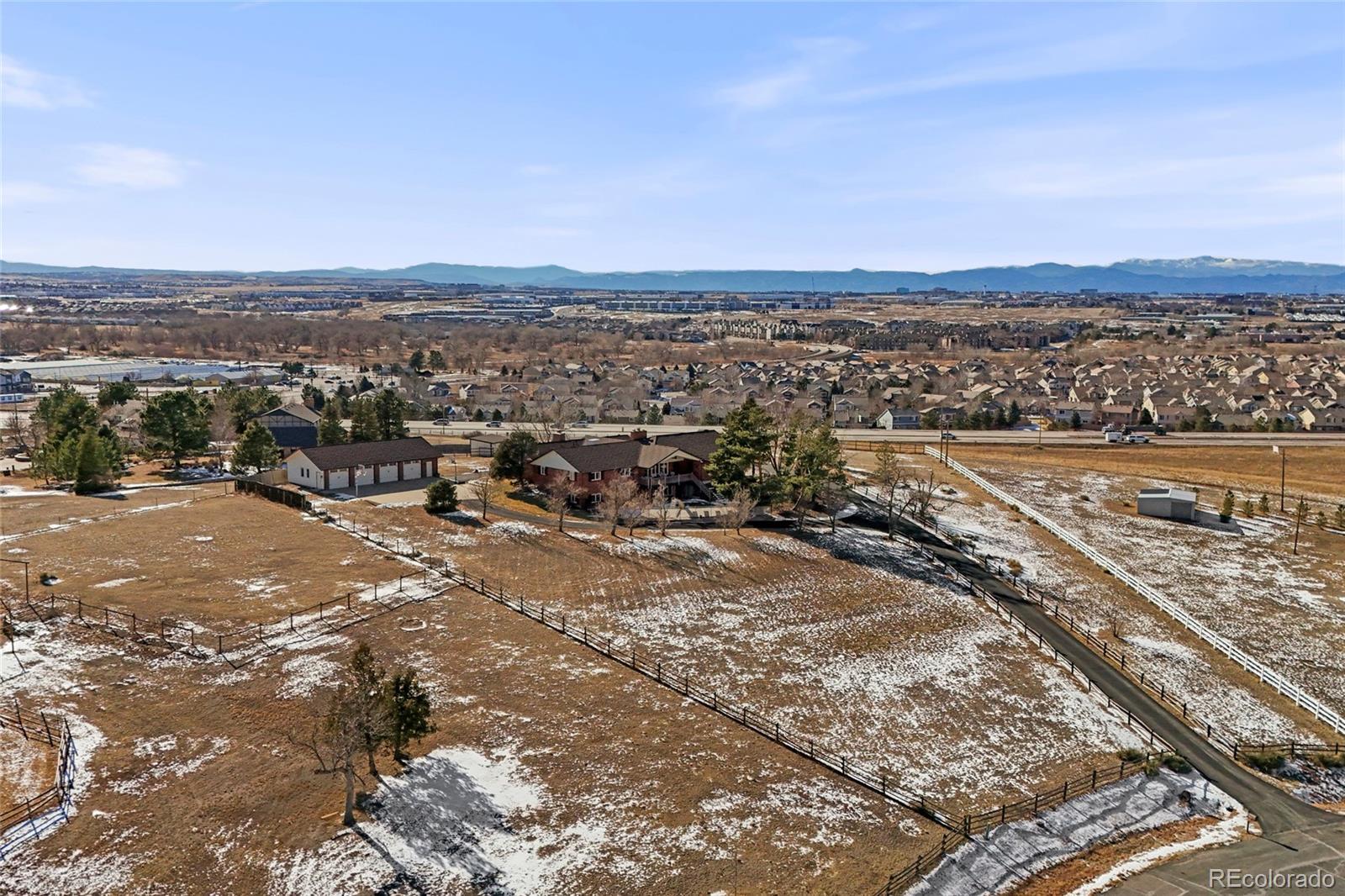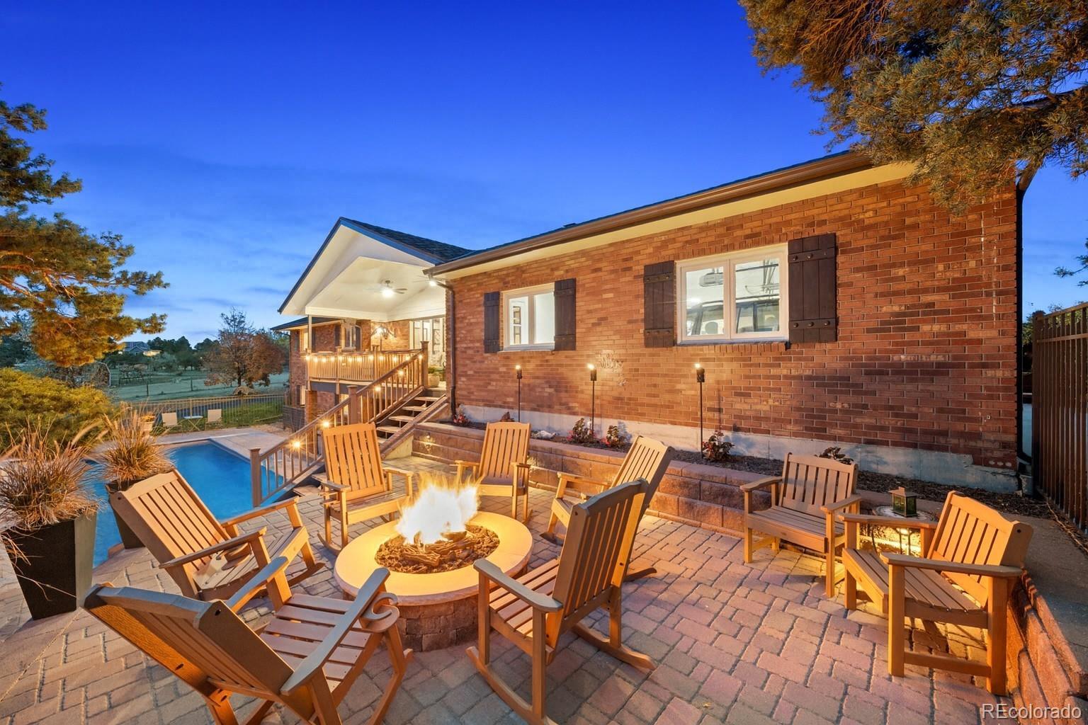 With panoramic mountain views, enjoy acreage living within city-limits in this stunning Foxfield ranch! Perfectly situated on over two acres, this property is zoned for horses; features a finished, walkout basement; outdoor pool; & detached 4-car garage. As you step in, enjoy vaulted ceilings in the south-facing living & dining areas which offer an abundance of natural light as well as a cozy, gas fireplace. The kitchen features floor-to-ceiling cabinets, stainless steel appliances, & a dual-sized fireplace. This space opens up to both dining and family room areas, perfect for entertaining, where you can relax on your private deck which overlooks your pool. The garage, mudroom & laundry are easily accessible from the kitchen - truly the center of the home. The main floor is complete with the primary suite & three auxiliary bedrooms. The primary suite is perfectly tucked away for optimal privacy with an en-suite bath & closet. The auxiliary bedrooms are well-sized & could easily be transformed into your home office. The basement creates more flexible living space offering an additional two bedrooms, one bathroom & bonus space. Enjoy the walkout basement which is adjacent to the outdoor patio, pool & firepit areas. The property is complete with extensive upgrades & features including a newer DECRA stone-coated steel roof (2 years old with a 50-year lifespan), full interior & exterior painting, an upgraded well pump, new water softener systems & a prepaid water tap available. The attached 3-car garage includes polyaspartic flooring & the detached 4-car garage is perfect for extra vehicles, your workshop, toys, & additional recreation. The Town of Foxfield features no HOA, includes gated-access for minimal thru traffic, & is located in the award-winning Cherry Creek School District. With just a short drive to Cherry Creek State Park, Southlands Mall, LifeTime Fitness, multiple golf courses, & Regis Jesuit High School, you’ll experience an oasis just outside of suburbia.