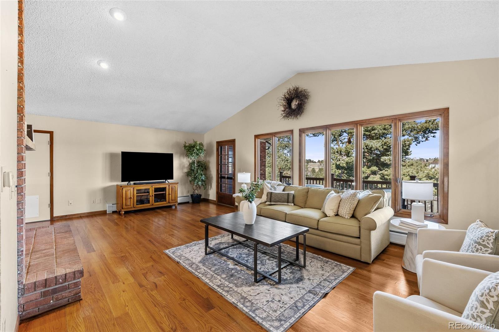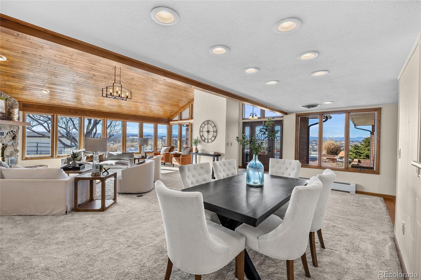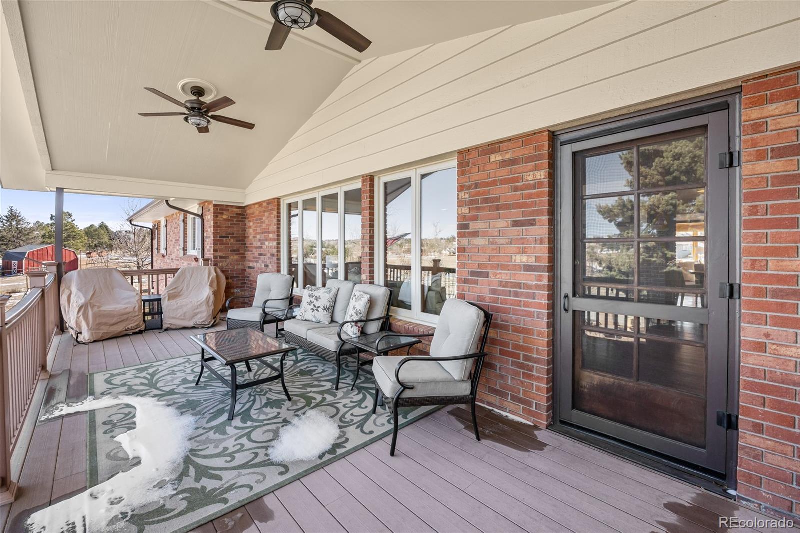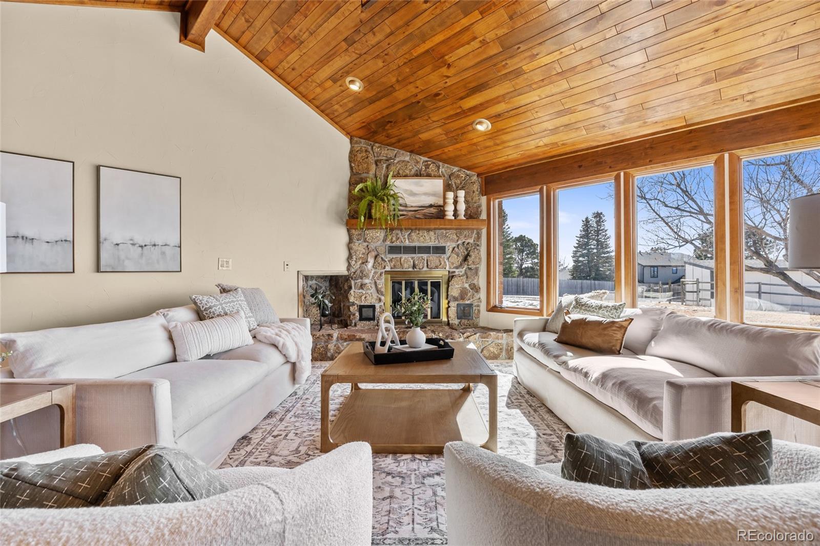 With panoramic mountain views, enjoy acreage living within city-limits in this stunning Foxfield ranch! Perfectly situated on over two acres, this property is zoned for horses; features a finished, walkout basement; outdoor pool; & detached 4-car garage. As you step in, enjoy vaulted ceilings in the south-facing living & dining areas which offer an abundance of natural light as well as a cozy, gas fireplace. The kitchen features floor-to-ceiling cabinets, stainless steel appliances, & a dual-sized fireplace. This space opens up to both dining and family room areas, perfect for entertaining, where you can relax on your private deck which overlooks your pool. The garage, mudroom & laundry are easily accessible from the kitchen - truly the center of the home. The main floor is complete with the primary suite & three auxiliary bedrooms. The primary suite is perfectly tucked away for optimal privacy with an en-suite bath & closet. The auxiliary bedrooms are well-sized & could easily be transformed into your home office. The basement creates more flexible living space offering an additional two bedrooms, one bathroom & bonus space. Enjoy the walkout basement which is adjacent to the outdoor patio, pool & firepit areas. The property is complete with extensive upgrades & features including a newer DECRA stone-coated steel roof (2 years old with a 50-year lifespan), full interior & exterior painting, an upgraded well pump, new water softener systems & a prepaid water tap available. The attached 3-car garage includes polyaspartic flooring & the detached 4-car garage is perfect for extra vehicles, your workshop, toys, & additional recreation. The Town of Foxfield features no HOA, includes gated-access for minimal thru traffic, & is located in the award-winning Cherry Creek School District. With just a short drive to Cherry Creek State Park, Southlands Mall, LifeTime Fitness, multiple golf courses, & Regis Jesuit High School, you’ll experience an oasis just outside of suburbia.