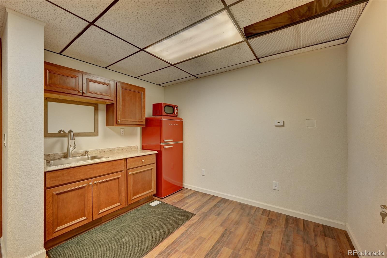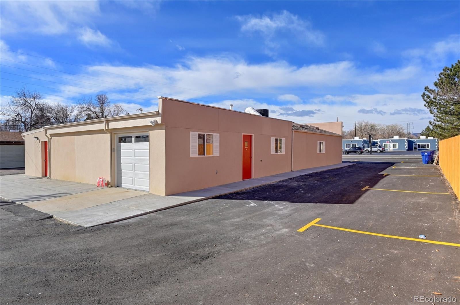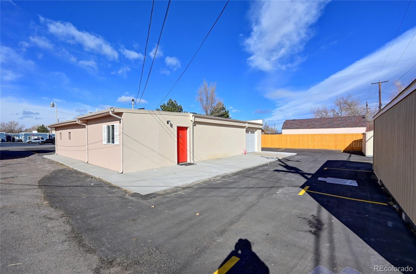 Great location for business or investment property located in the heart of Lakewood. Newly renovated and updated, this transformative space allows flexibility for multi-use. 3,900 sq ft building with 4 newly renovated bathrooms able to offer 6 separate units/businesses or can combine to create larger spaces. Each unit has new lighting, skylights, flooring and windows. Unit A, the largest has private office and large functional consumer area. Unit B is nicely situated with a gas fireplace. Unit C has a pantry equipped with microwave, sink and refrigerator and potential for private office. Unit D has bonus washer and dryer hook-up. Unit E (currently rented) has private back entrance. Unit F has endless uses (i.e. shop, garage, warehouse, flex space) with new heavily insulated automatic garage door, heat and private entrance. Lot also includes 2 separate sheds available for rent and easy to bring electrical to each. Owners have transformed the flexibility and use of this space. Parking lot has been repaved, exterior stucco redone as well as a new fencing on north side put up. SO much other potential income with storage sheds, and parking rental history.