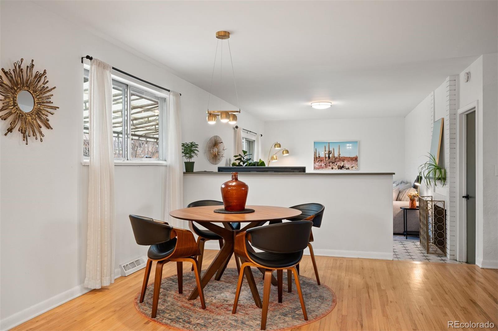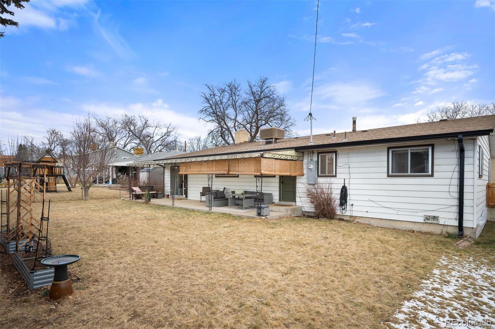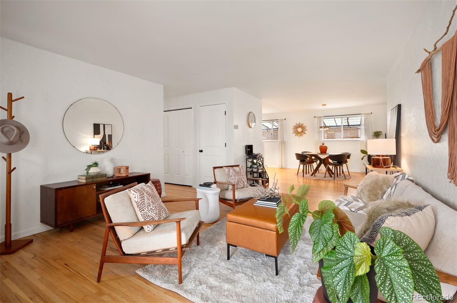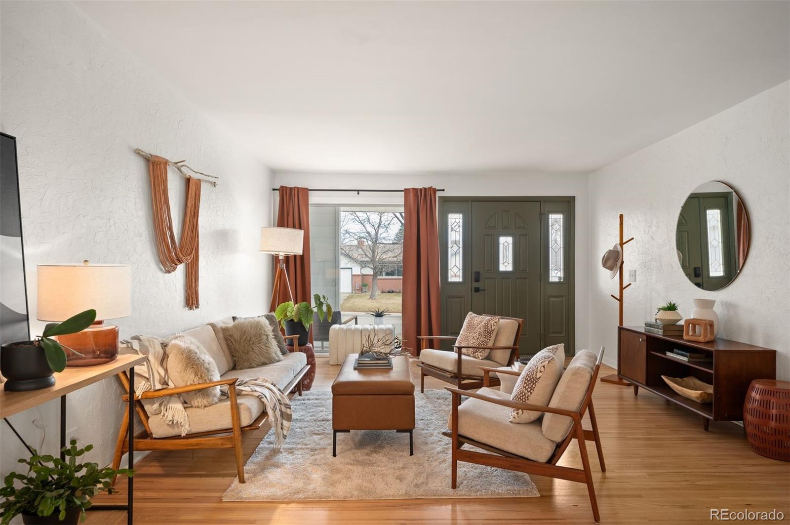 This truly remarkable mid-mod era ranch has it all. Enjoy main floor living with gracious and open living/dining/family rooms, a rare large primary suite, and a prime lot in a terrific location. Impeccably maintained, and tastefully updated through-out, this classic home blends mid-mod charm with modern updates. Stainless appliances, granite counters and designer tile complete the large fully updated kitchen that opens to the dining/family/living rooms with a handy door right out to the sprawling covered patio and big backyard. Enjoy gorgeous refinished wood floors throughout, large windows for tons of natural light, updated paint, window coverings, and new lighting. New Washer/Dryer included. Both baths are fully updated with high-end tile and finishes. The large lot is elevated from the street which adds nice privacy. The attached oversized 2-car garage, large backyard and sprawling covered back patio make this ranch super livable and completely move-in ready. So close to Olde Town Arvada, transit, many restaurants, shops, trails, and parks. Welcome home!