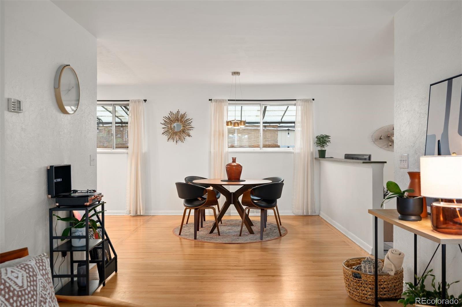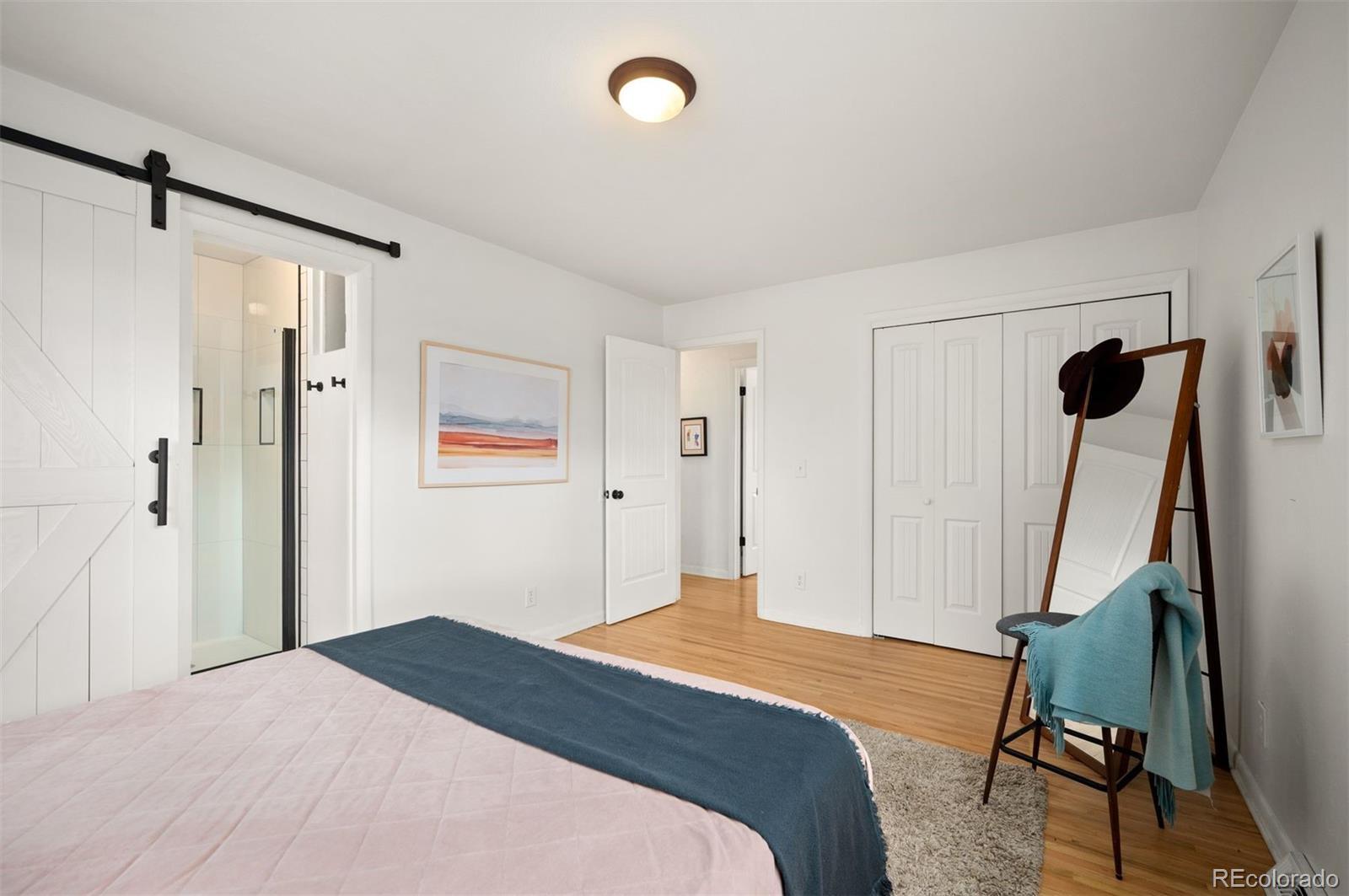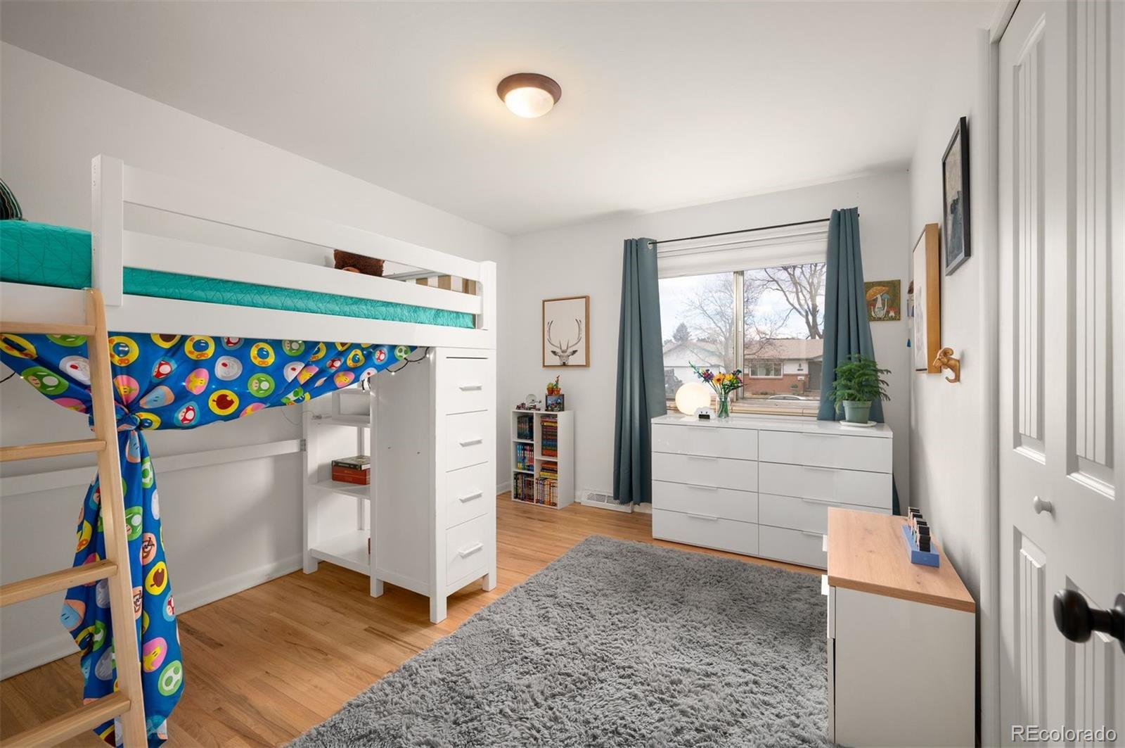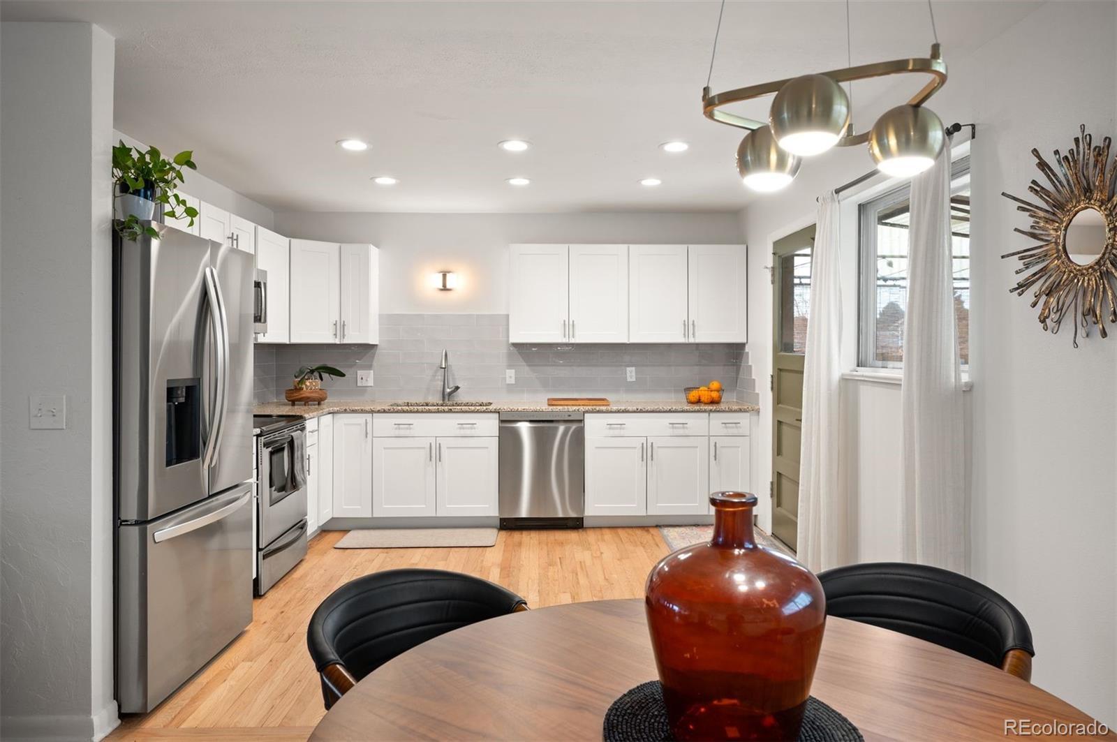 This truly remarkable mid-mod era ranch has it all. Enjoy main floor living with gracious and open living/dining/family rooms, a rare large primary suite, and a prime lot in a terrific location. Impeccably maintained, and tastefully updated through-out, this classic home blends mid-mod charm with modern updates. Stainless appliances, granite counters and designer tile complete the large fully updated kitchen that opens to the dining/family/living rooms with a handy door right out to the sprawling covered patio and big backyard. Enjoy gorgeous refinished wood floors throughout, large windows for tons of natural light, updated paint, window coverings, and new lighting. New Washer/Dryer included. Both baths are fully updated with high-end tile and finishes. The large lot is elevated from the street which adds nice privacy. The attached oversized 2-car garage, large backyard and sprawling covered back patio make this ranch super livable and completely move-in ready. So close to Olde Town Arvada, transit, many restaurants, shops, trails, and parks. Welcome home!