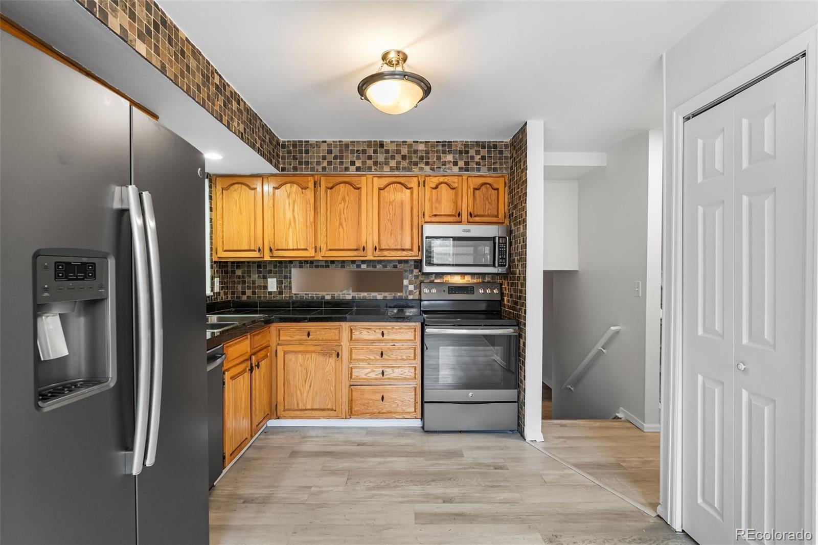 Taking back up offers!! This beautifully maintained 4-bedroom, 3-bathroom home boasts a spacious layout designed for both relaxation and entertaining. The inviting family room features a cozy wood-burning fireplace, perfect for chilly Colorado evenings. A 5th bedroom with direct access to the backyard offers flexibility for guests, a home office, or a private retreat plus a finished basement that adds valuable additional living space! The home includes an extended driveway, a generous 2-car garage, and has been freshly painted inside, giving it a clean, modern feel. Newer solar panels add energy efficiency and help reduce monthly utility costs—an ideal blend of comfort and sustainability.Step outside to a backyard perfect for gardening, entertaining, or simply enjoying the Colorado sunshine. Whether hosting a summer barbecue or planting your dream garden, this outdoor space delivers Conveniently located just one minute from Powerline Trail, which connects you to Horseshoe Park with its playground, picnic areas, and baseball diamond. Commuters and frequent fliers will love being just 15 miles from Denver International Airport. Situated in Aurora- the Gateway to the Rockies—you’ll enjoy access to diverse dining, shopping, entertainment, and year-round special events. This home truly offers the best of suburban living with city convenience.