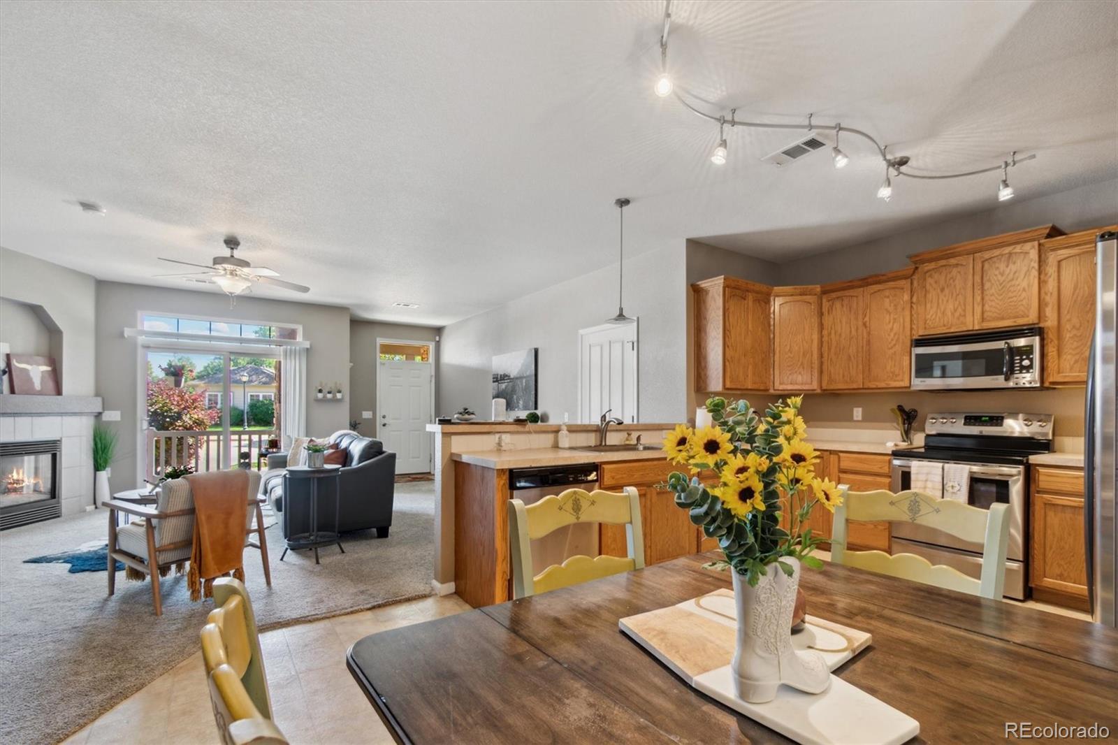 This charming main-level condo in Firestone offers the perfect blend of comfort and convenience. From the moment you enter, you’ll notice the natural light, open floor plan, and cozy gas fireplace — all creating a warm, inviting space. The extended front porch is a standout feature, perfect for enjoying quiet mornings or relaxing evenings. Inside, you’ll find two spacious bedrooms and two full bathrooms. The primary suite includes its own private bath and a generously sized closet. The second bedroom is flexible — ideal for guests, a home office, or even a hobby room. The open-concept kitchen includes ample cabinet space, modern appliances, and a convenient breakfast bar that flows easily into the dining and living areas. Additional highlights include in-unit laundry, an attached two-car garage, and a truly accessible layout with no stairs. The HOA provides exceptional value, covering internet, cable, water, trash, and exterior insurance — simplifying your monthly expenses. Located in a quiet community with quick access to Denver, Longmont, Boulder, Loveland, Greeley, and DIA, this home is the perfect low-maintenance retreat for any stage of life.