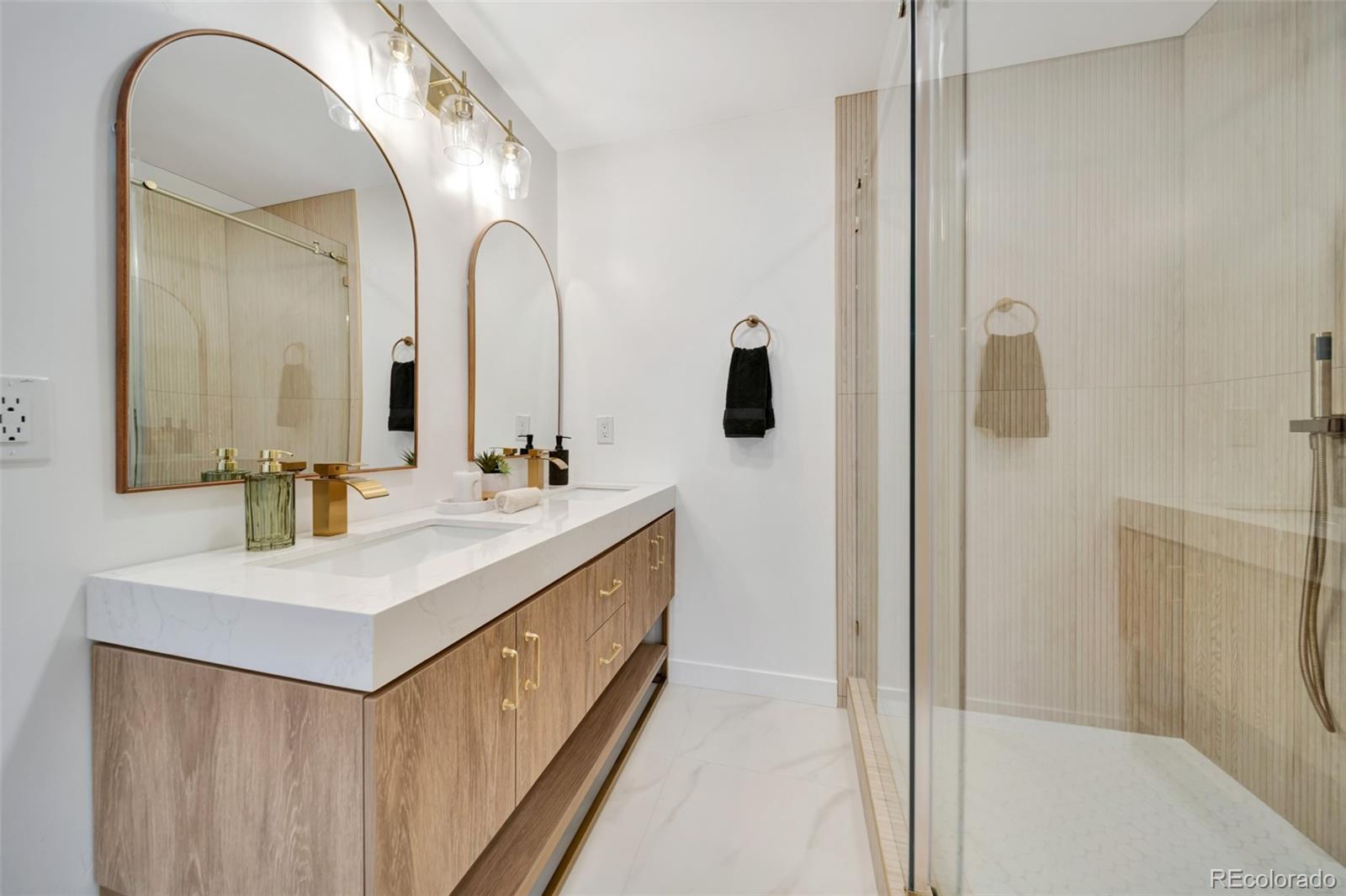Open House this Saturday, December 20th from 1:00 pm to 3:00pm and Sunday, December 21st from 12:00 pm to 3:00 pm. Discover refined modern living in this beautifully renovated 5-bedroom, 3-bath home nestled in one of Littleton’s most desirable neighborhoods. Every detail has been thoughtfully designed, blending contemporary finishes with timeless charm. Step inside to find an open-concept main level featuring a bright living room anchored by sleek accent lighting and wide-plank flooring. The chef’s kitchen is a true highlight, showcasing quartz countertops, custom cabinetry, stainless steel appliances, and a spacious island perfect for entertaining. The primary suite provides a peaceful retreat with a luxurious en-suite bath featuring designer tile, double vanities, and a walk-in shower. Two additional bedrooms and a full bath complete the upper level, offering flexibility for family or guests. The fully finished basement expands your living space with a large flex space, two additional bedrooms, and a full bath — perfect for a media room, home gym, or private guest area. Step outside to your private backyard with a large patio and room to relax or host summer barbecues. With a recently renovated and upgraded exterior, updated systems, and high-end modern touches throughout, this home is truly move-in ready. Conveniently located near parks, trails, top-rated schools, and the charm of Downtown Littleton, this property offers the perfect balance of comfort, style, and location.