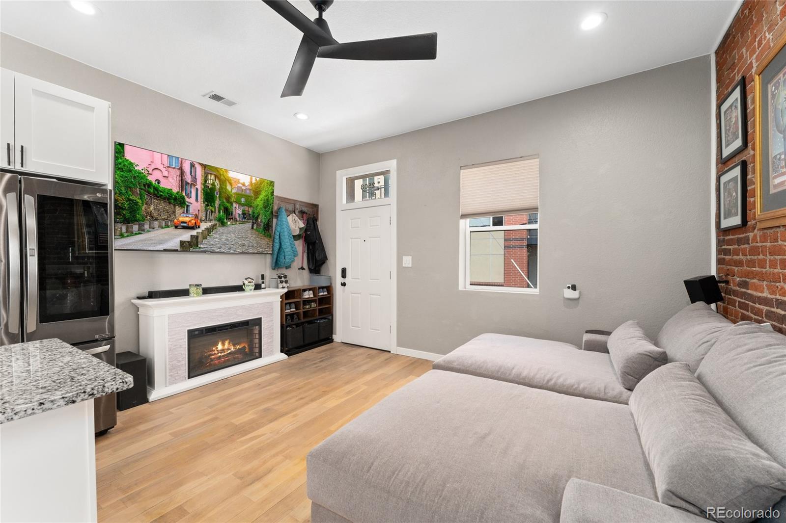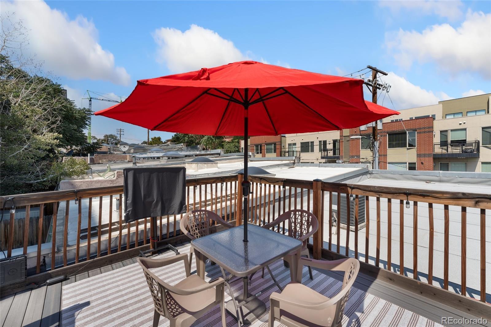 No HOA fees!! Parking, privacy fenced backyard w/dog door, and private roof top deck. Stylish lot-and-a-half sized end-unit townhome in highly sought-after Lower Highlands (LoHi). Entire house rehabbed approx 5 years ago. Inside you have tall ceilings, white oak flooring, and brick accent wall. Modern kitchen with granite countertops, stainless steel appliances, and a center island. Drinking water lines recently replaced by the City – no lead here. New custom closet (Aug 2025). Finished basement offers a versatile second bedroom or office and brand new carpet (Sept 2025). Outdoor living is where this home truly shines. The privacy-fenced backyard is complete with a dog door, fire pit, grass area, and sunny patio. Head up the newly built Trex/cedar stairs (April 2025) to the private roof top deck to enjoy panoramic views of the mountains, Mile High Stadium, and even Coors Field fireworks. You can take out some or all of the grass (concrete underneath) and have even more parking for additional cars or trailer. Additional highlights include custom blinds, new ceiling fans with remotes, new Nest thermostat, and a radon system with warranty for peace of mind. No monthly HOA fees or rules (party wall agreement only). Located a block from the Highlands pedestrian bridge, you’ll have easy access to parks, the river, Union Station, the 16th Street Mall bus, and multiple sports arenas. Walk to baseball, football, hockey, or basketball games—or simply enjoy the endless dining and nightlife options right outside your door. A truly unique and private unicorn in the heart of the action.
