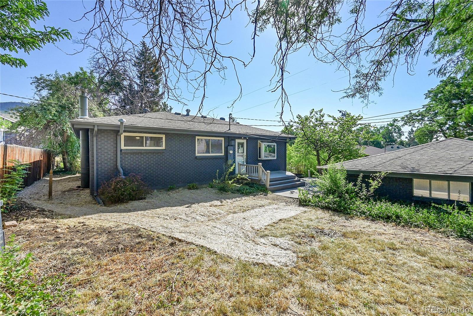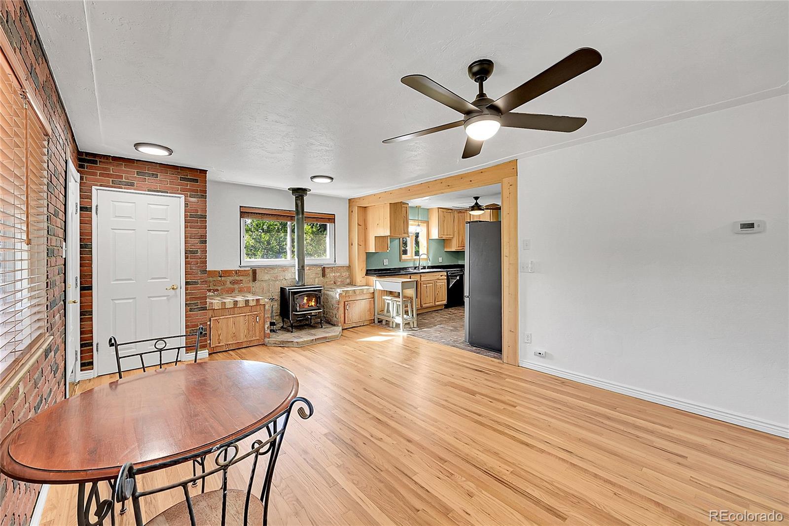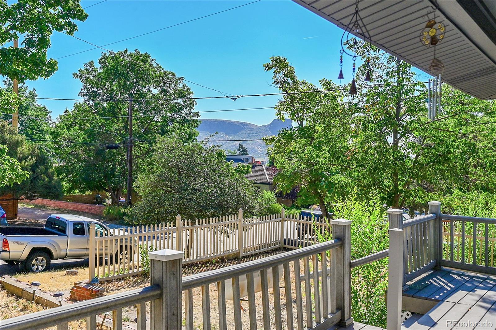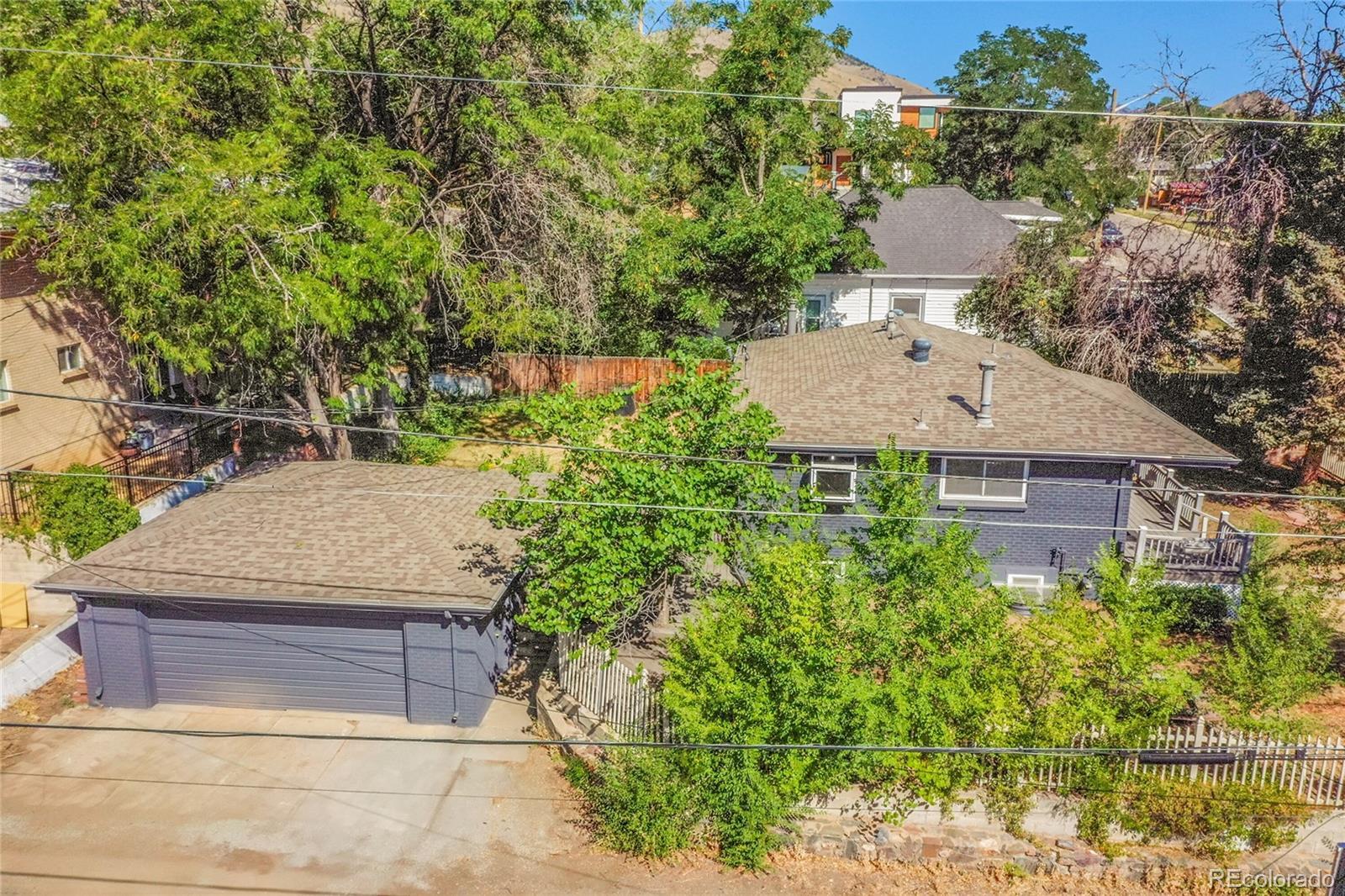 Welcome to this charming midcentury brick ranch, perfectly positioned on a spacious 7,000 sq ft corner lot in a desirable Golden neighborhood. Surrounded by mature trees that offer privacy and shade, the east-facing home with 2 trex type decks features thoughtfully landscaped garden beds on the south side and a backyard shed for additional storage. A generous two-car garage provides ample parking and workspace.Step inside from the welcoming front deck into an open and inviting floorplan. The main level boasts beautifully maintained hardwood floors, replaced windows that bring in abundant natural light, and a cozy wood-burning stove. This level includes three comfortable bedrooms with new blinds and a tastefully remodeled three-quarter bath. The updated kitchen is a true highlight, featuring warm hickory cabinetry, quartz countertops, unique brick-look tile flooring, bright greenhouse windows, and stainless steel appliances. The adjoining dining area and living room offer great space for gathering and entertaining.The fully finished lower level has been refreshed with brand new carpet and offers excellent versatility. It includes a large family room with a gas stove, an additional bedroom with an egress window, another remodeled three-quarter bath, and a spacious laundry room complete with a utility sink.Enjoy the convenience of being within walking distance to downtown Golden, with its vibrant shops, restaurants, and community amenities. With easy access to the mountains, Clear Creek Canyon, trails, parks, downtown Denver, Boulder, and beyond, this home offers the perfect blend of comfort, style, and location. Open house on 11/23 is canceled.