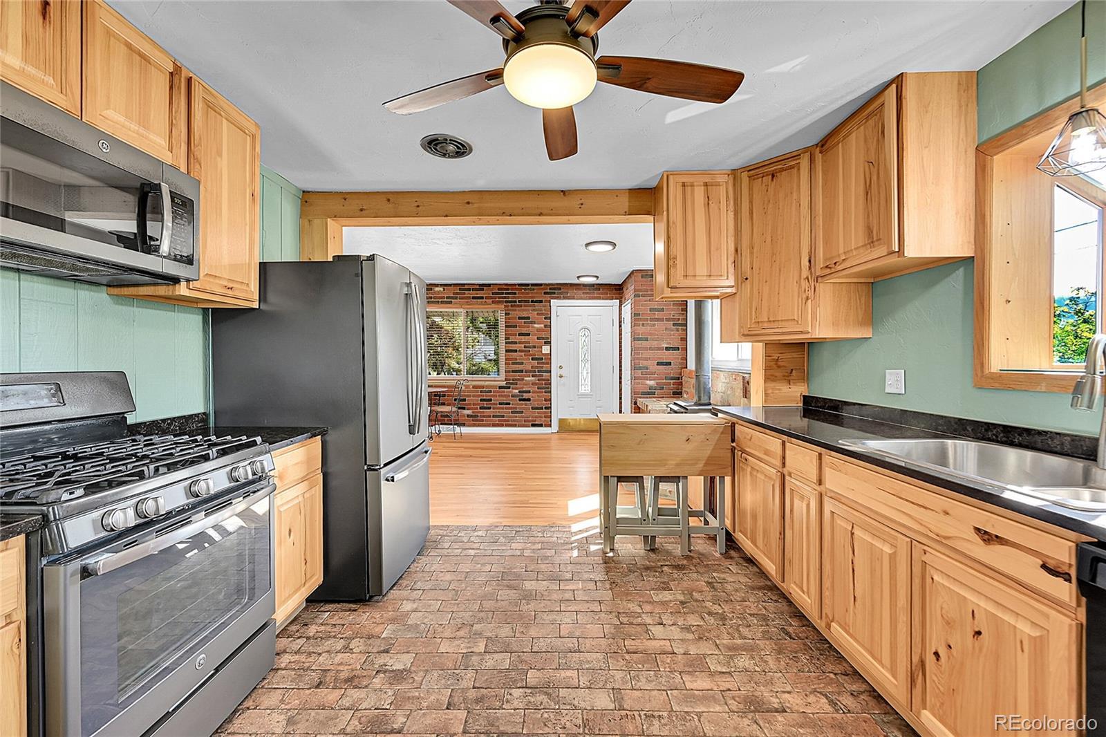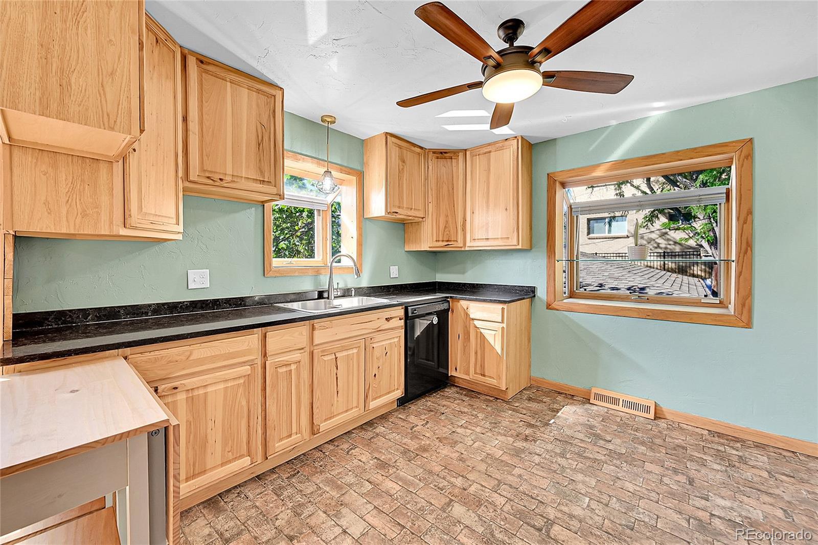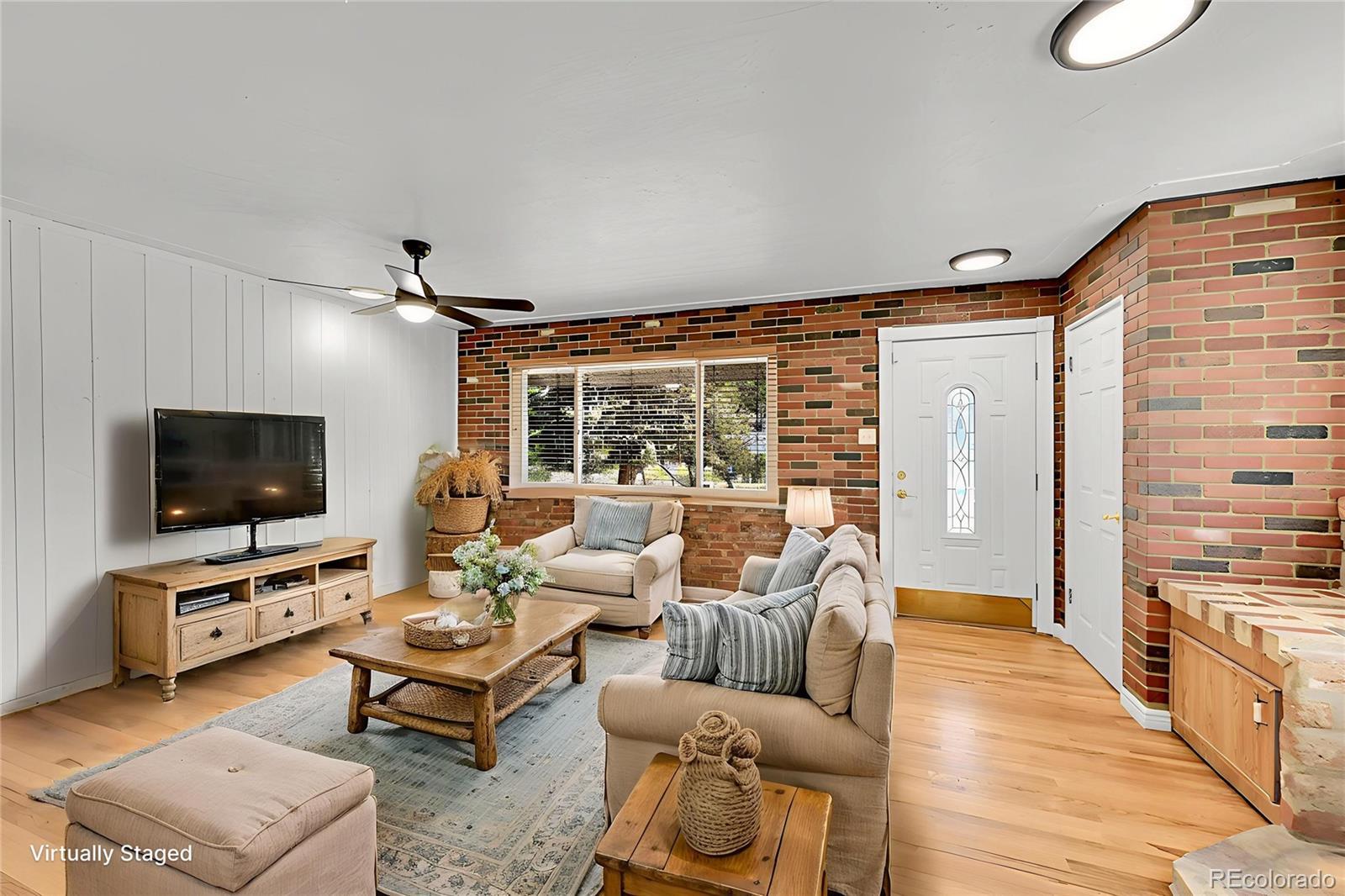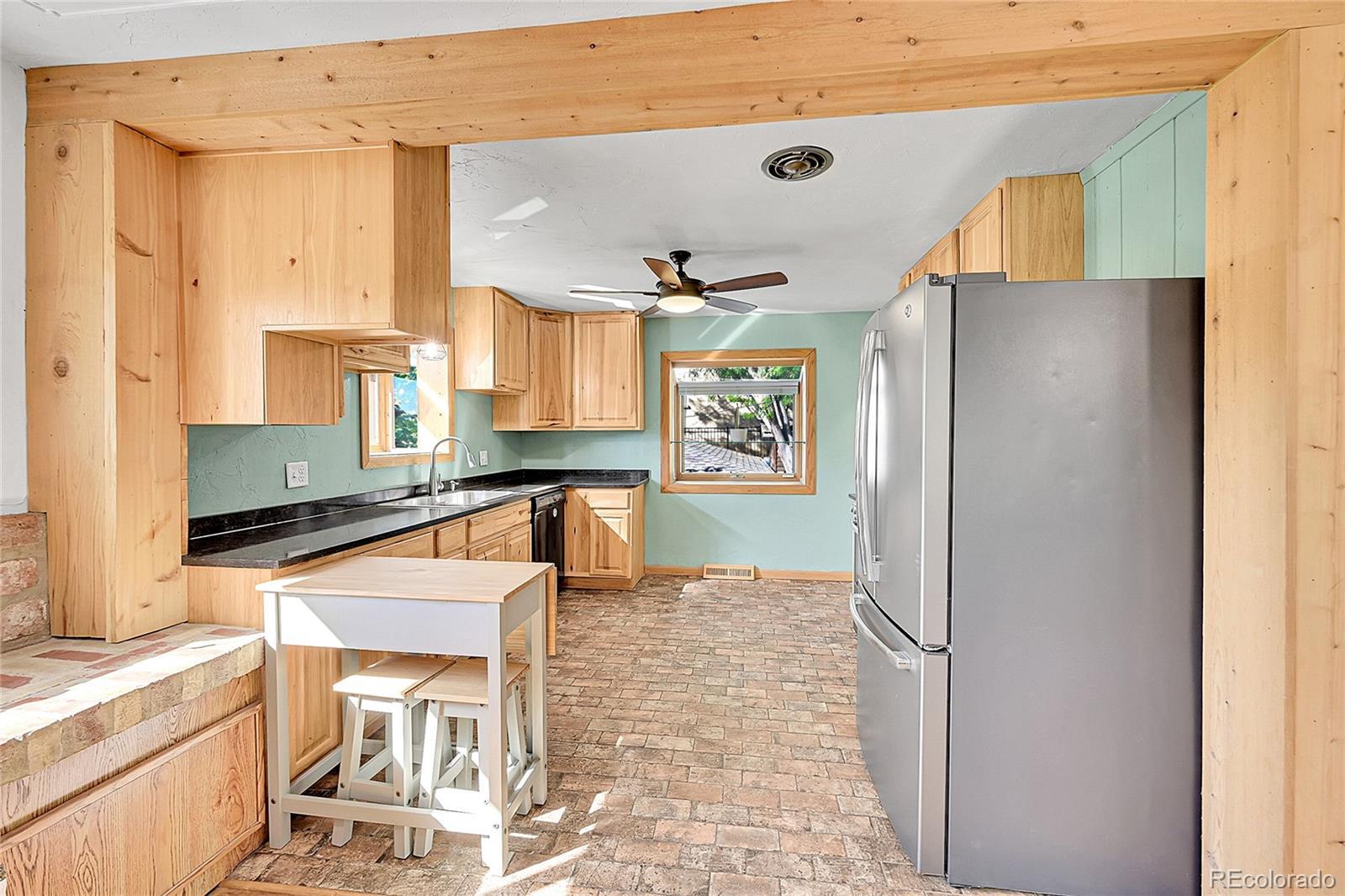 Welcome to this charming midcentury brick ranch, perfectly positioned on a spacious 7,000 sq ft corner lot in a desirable Golden neighborhood. Surrounded by mature trees that offer privacy and shade, the east-facing home with 2 trex type decks features thoughtfully landscaped garden beds on the south side and a backyard shed for additional storage. A generous two-car garage provides ample parking and workspace.Step inside from the welcoming front deck into an open and inviting floorplan. The main level boasts beautifully maintained hardwood floors, replaced windows that bring in abundant natural light, and a cozy wood-burning stove. This level includes three comfortable bedrooms with new blinds and a tastefully remodeled three-quarter bath. The updated kitchen is a true highlight, featuring warm hickory cabinetry, quartz countertops, unique brick-look tile flooring, bright greenhouse windows, and stainless steel appliances. The adjoining dining area and living room offer great space for gathering and entertaining.The fully finished lower level has been refreshed with brand new carpet and offers excellent versatility. It includes a large family room with a gas stove, an additional bedroom with an egress window, another remodeled three-quarter bath, and a spacious laundry room complete with a utility sink.Enjoy the convenience of being within walking distance to downtown Golden, with its vibrant shops, restaurants, and community amenities. With easy access to the mountains, Clear Creek Canyon, trails, parks, downtown Denver, Boulder, and beyond, this home offers the perfect blend of comfort, style, and location. Open house on 11/23 is canceled.