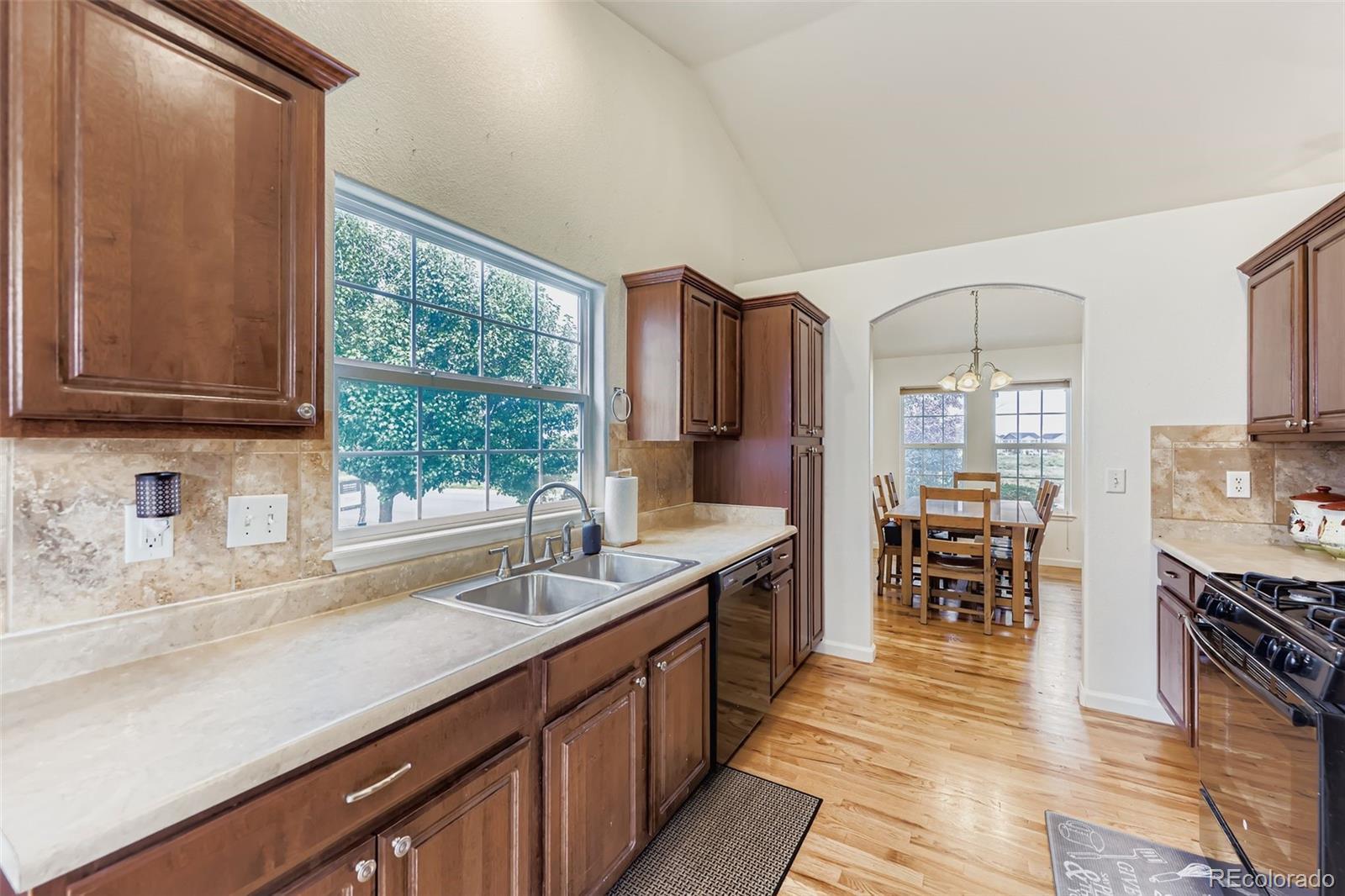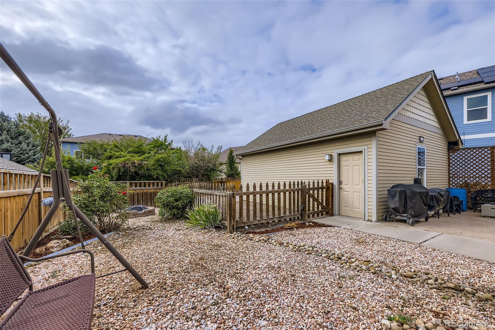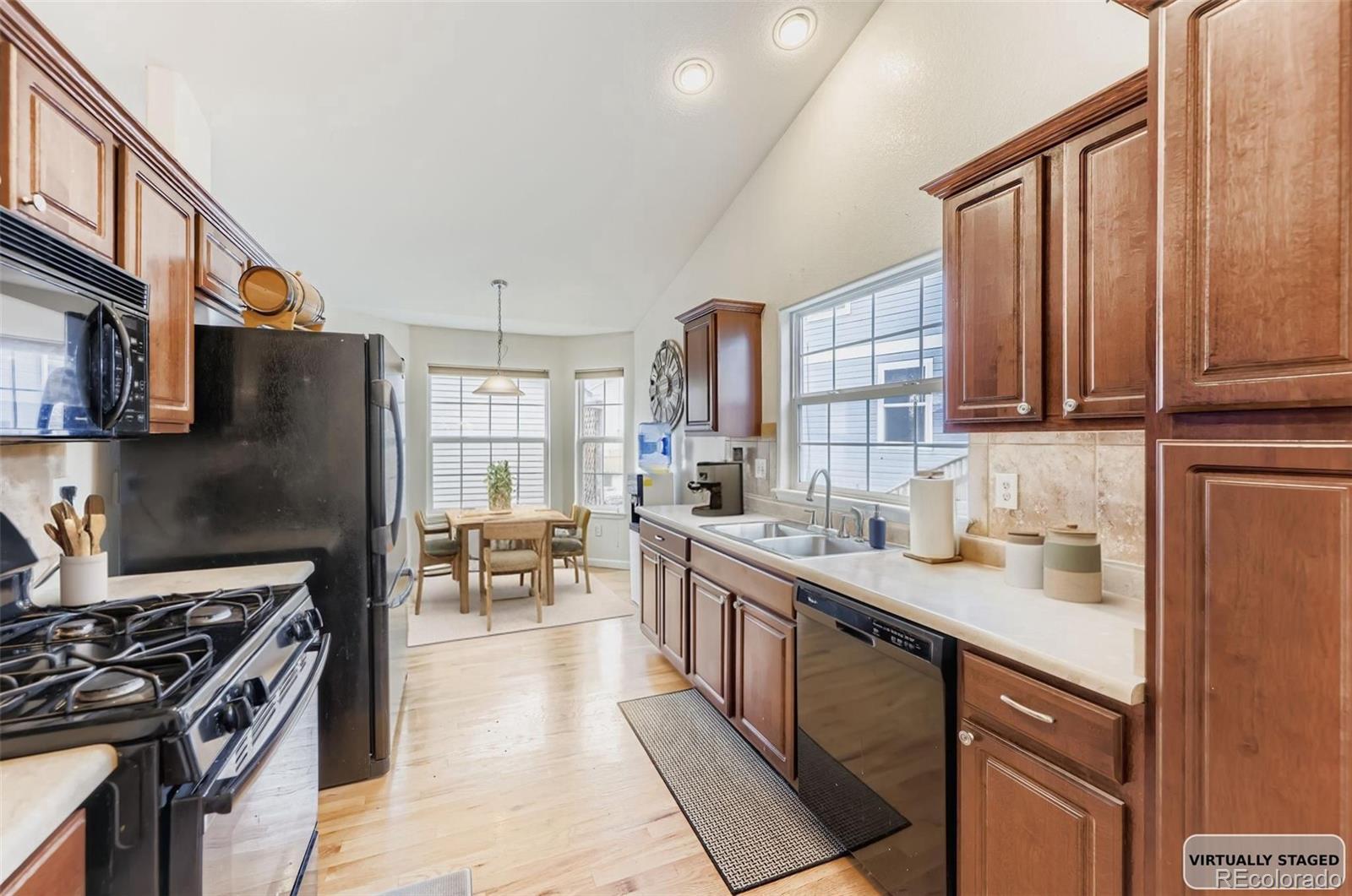 A BRAND-NEW HVAC system—Furnace and AC unit—was just installed 3/1/2026 and includes a 10 YEAR TRANSFERABLE WARRANTY! Nestled in the desirable Silver Peaks neighborhood, this home sits directly across from protected open space that will remain untouched—your own forever view of nature waking up each morning. Ramada Park and its playground are just steps away, and Meadow Ridge Elementary is an easy five-minute stroll. The main level welcomes you with sunshine and charm. You’ll find three bedrooms, two full bathrooms, and a bright layout that feels instantly inviting. The primary bedroom features a beautiful bay window overlooking your private backyard, a walk-in closet, and brand-new ceiling fan. Enjoy breakfast in the cozy nook framed by a bay window and dinners in the formal dining room with its soaring vaulted ceilings. The kitchen features rich maple cabinetry and gleaming hardwood floors that add warmth and character. Downstairs you will enjoy a true Home Theater, fully furnished, featuring six stadium-style reclining leather chairs, a high-definition projector, immersive surround sound with premium audio and subwoofer, and a wall-mounted projection screen. A sleek bar and snack station sits just behind the seating—perfect for movie marathons, game nights, or cheering on your favorite team. The basement also offers a dedicated storage room, a separate utility room with washer and dryer (plus potential for a future third bathroom), and a spacious multipurpose room ready to bloom into whatever you need: a fourth bedroom, office, gym, playroom, or guest suite. Step outside to your own backyard retreat, where a stamped and stained concrete patio sets the stage for outdoor dining, gardening, or simply unwinding by the fire pit as the evenings grow mild. An oversized detached two-car garage offers abundant storage, plus a bonus third parking space for extra vehicles, a trailer, or future expansion. Come see the perfect place to let your next chapter blossom!
