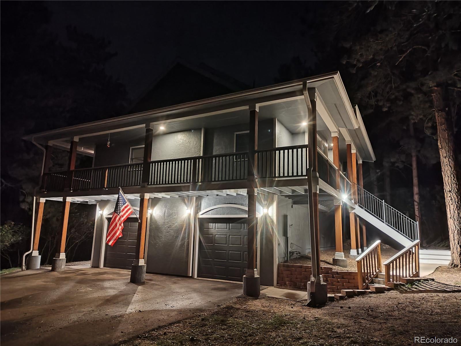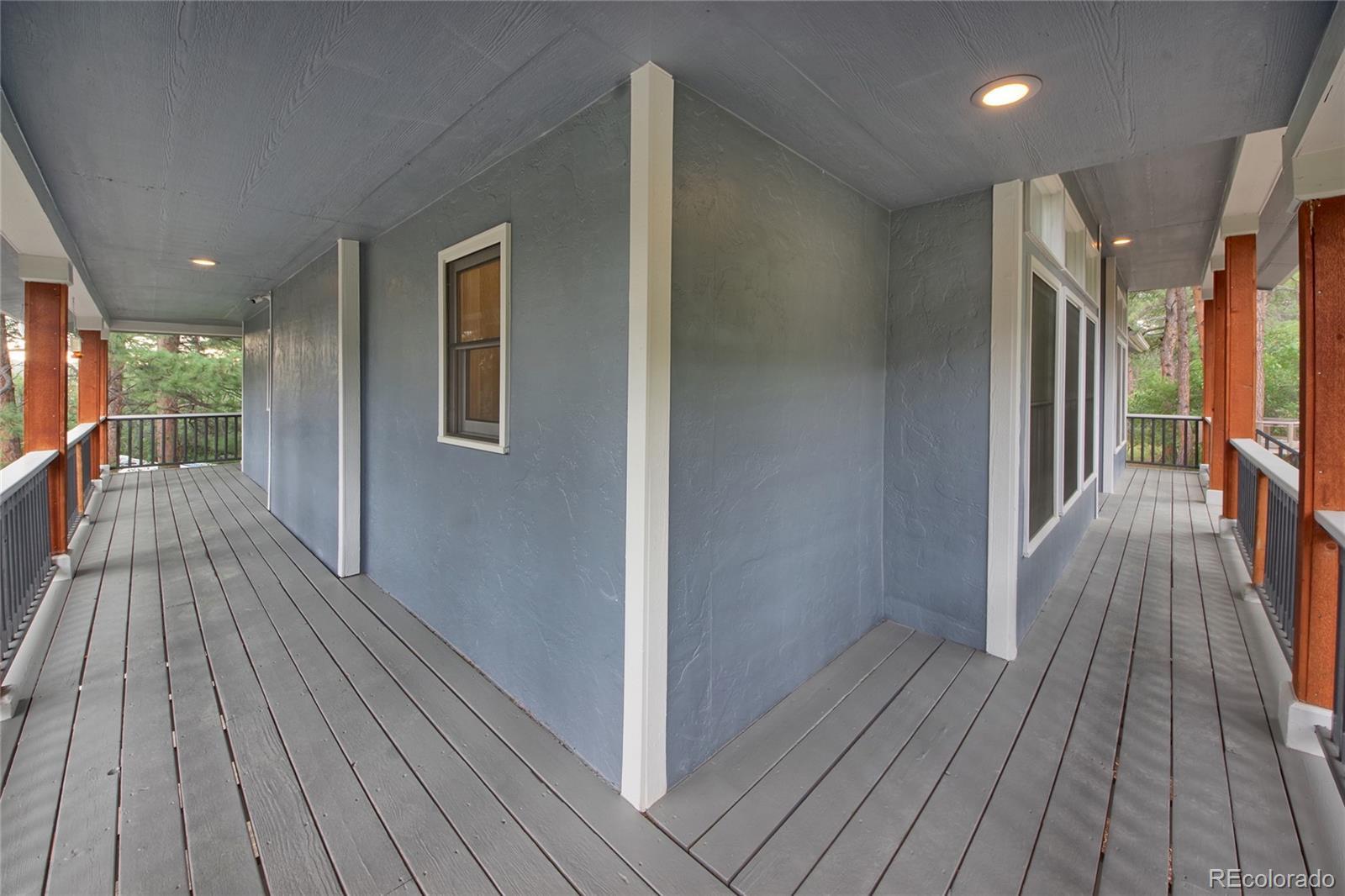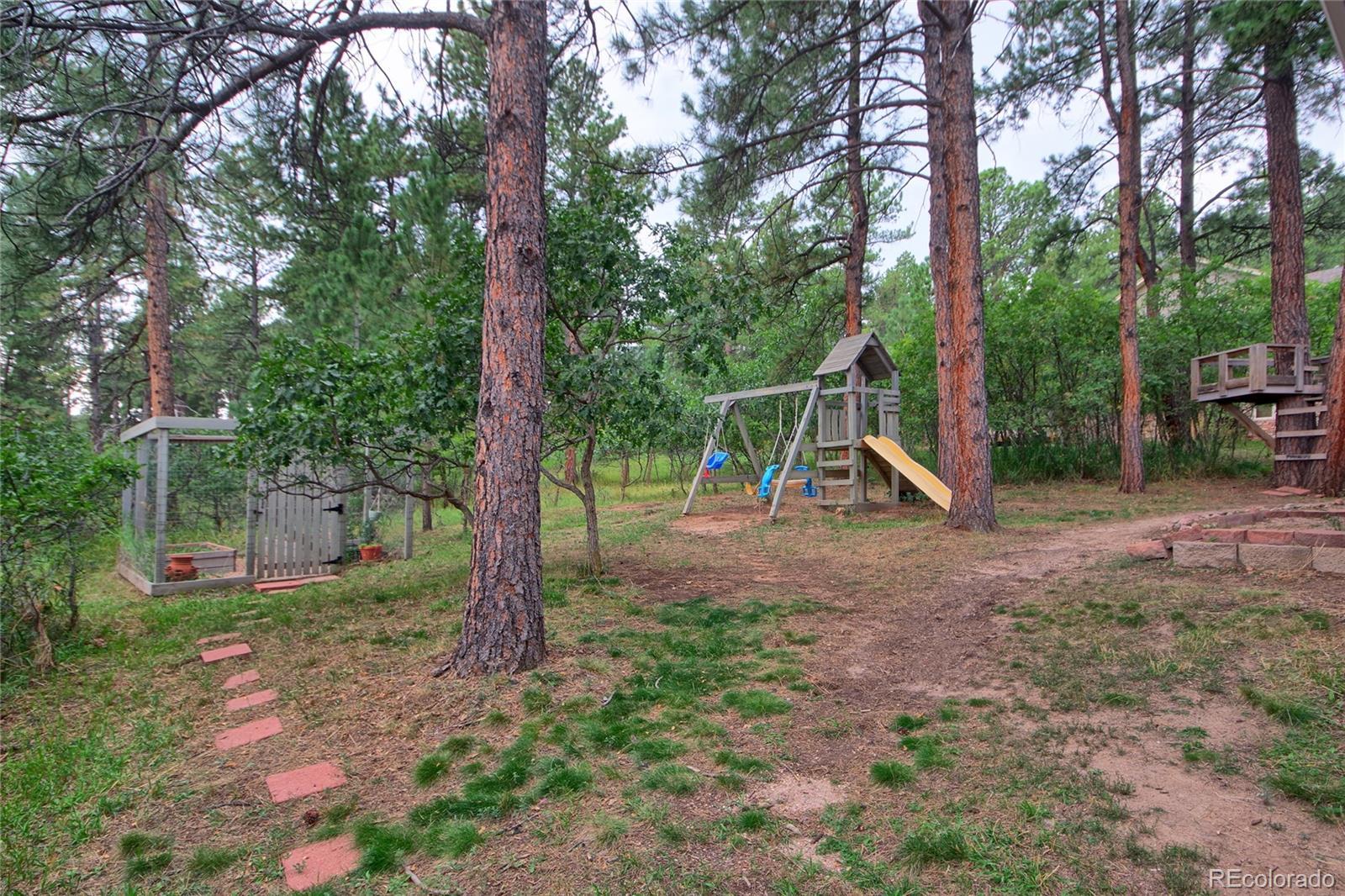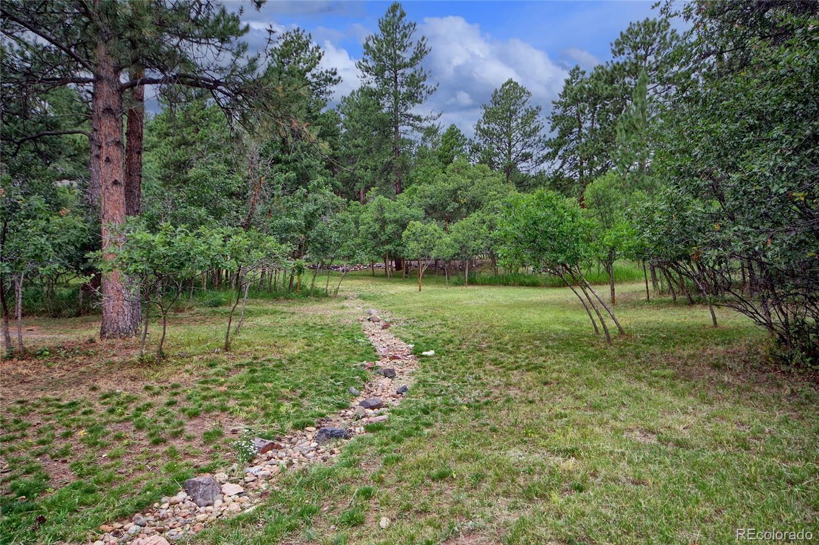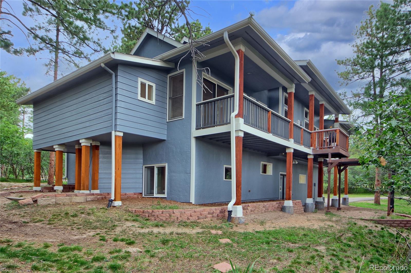 Imagine a story-book custom home nestled in pine trees and scrub oak on almost 1 acre in prestigious Perry Park! The beautiful flat lot adds lots of privacy with varying types of trees. Home backs to open space! Approaching the home you notice fresh paint, wood windows and composite decking. Steps leading to a grand entrance. You walk up to a wrap-around deck (3 sides of the house). Once inside you are invited to a warm entrance with hardwood flooring, an office with french doors, a formal dining room and a living room with gas fireplace. The 9' ceilings and natural lighting make a statement! The updated kitchen has a gas stove, stainless steel appliances, door to the deck and breakfast area, a pantry, butler's pantry and convenient half-bath! Then down the hall is the master bedroom, hardwood floors with a huge walk-in closet. Adjacent is a custom bath with walk-in shower, with deep soaking tub, double vanity and another door to the deck! Downstairs are two ample bedrooms, a family room with outside access, a full bath and utility room. The boiler provides efficient gas in floor radiant heat, heating including the garage! Plenty of room for RVs, golf-carts, toys, etc. with no HOA! Put this on the TOP of your list!