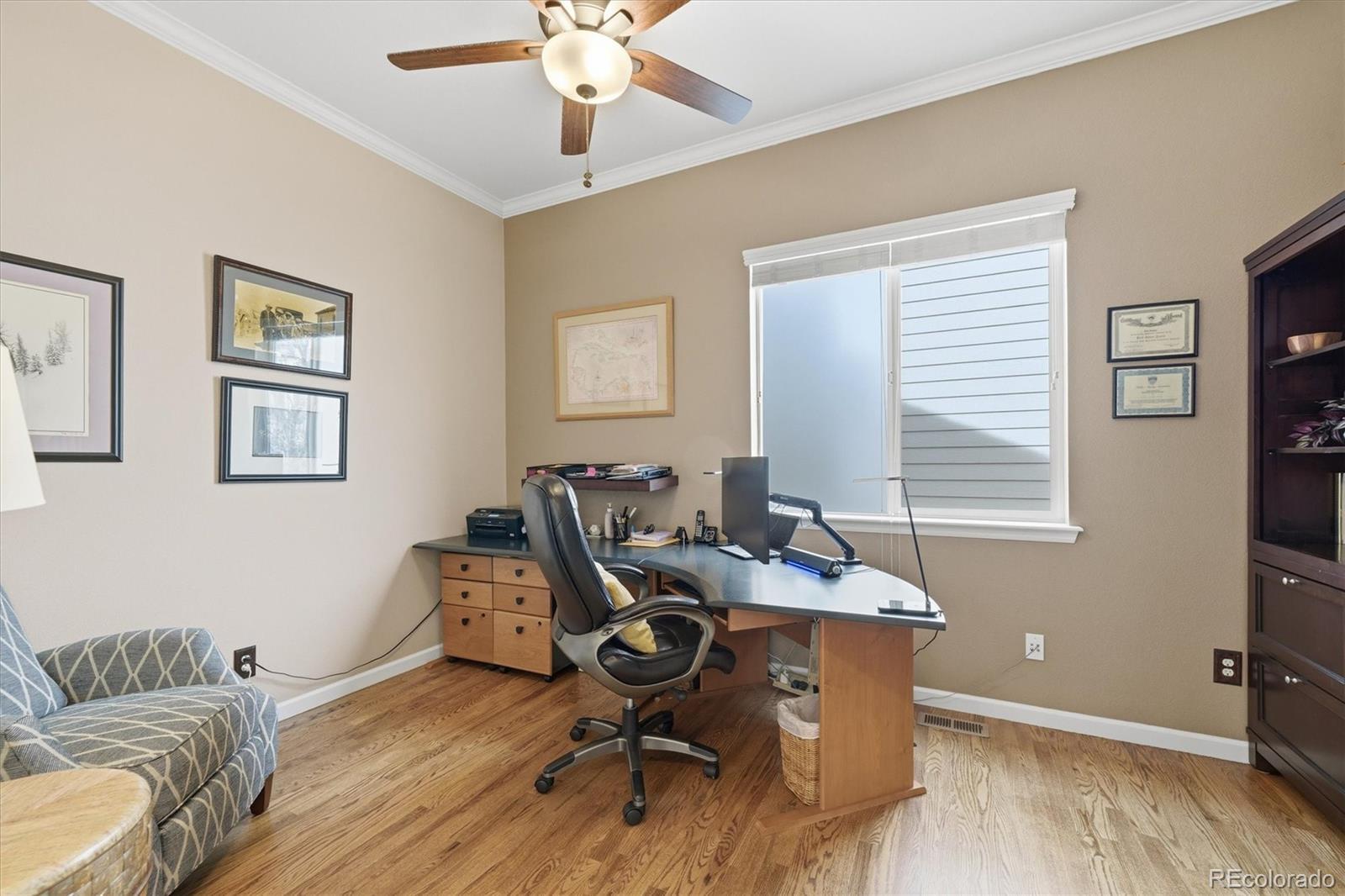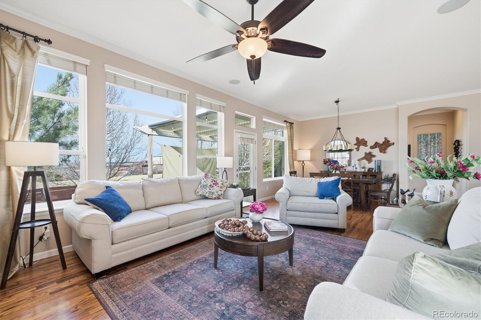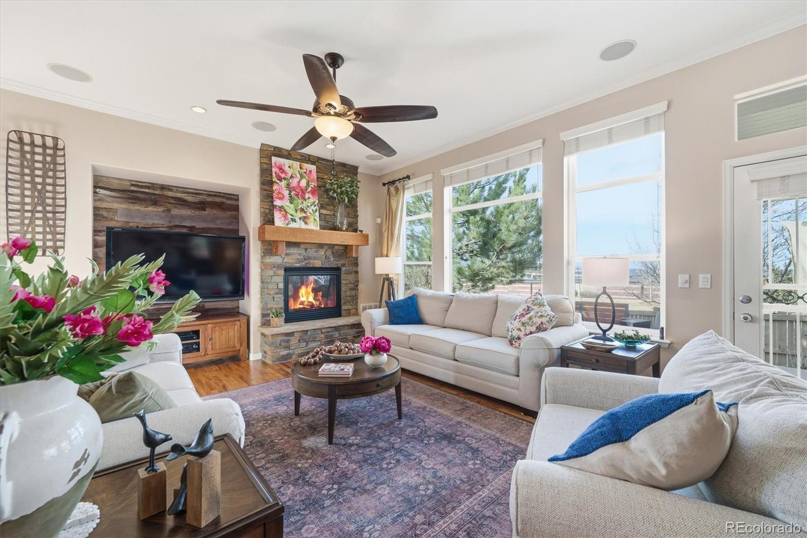 Welcome Home to 7760 Verandah Ct — where comfort, thoughtful design, and Colorado’s natural beauty come together. Perfectly positioned in one of Littleton’s most scenic foothill communities, this beautifully maintained home offers the space, features, and lifestyle today’s buyers are looking for! Step inside to dramatic 10' ceilings and an open, inviting layout designed for both everyday living and effortless entertaining. Just off the main level, a private office/study provides a quiet, focused workspace—ideal for remote work or creative projects. The warm and welcoming living area is anchored by a cozy fireplace and flows seamlessly into the Builder-Upgraded Kitchen, featuring Granite Countertops, Abundant Cabinetry, Built-in buffet, Island, Double Oven, Walk-In Pantry, and Stainless-Steel Appliances. Additional upgrades include Crown Molding throughout the living areas, Builder-Installed 4-gang data ports in the Great Room, Bedrooms, and Office, plus a Builder Entertainment Package—a rare find in the neighborhood with this feature! The Spacious Primary Suite is a true retreat, featuring a beautifully Remodeled ¾ bath (2025) with new Cabinetry, Sinks, Mirrors, Flooring, Bench Seating, and a Stunning Spa-like Shower, along with a Generous Walk-In Closet. Step outside to your Covered Back Patio and enjoy peaceful mornings with a fresh cup of coffee while taking in the Enchanting Foothill Views! Living in Roxborough Village means easy access to the incredible Colorado lifestyle—near Roxborough State Park, Chatfield Reservoir, miles of trails, parks, near Waterton Canyon and golf at Arrowhead, all while remaining within convenient reach of Denver and the Tech Center. And that’s just the beginning—this home includes many additional upgrades and thoughtful features, far too many to list here. Be sure to review the complete list in the MLS supplements. ***You MUST See the Fly-Through Virtual Tour!***