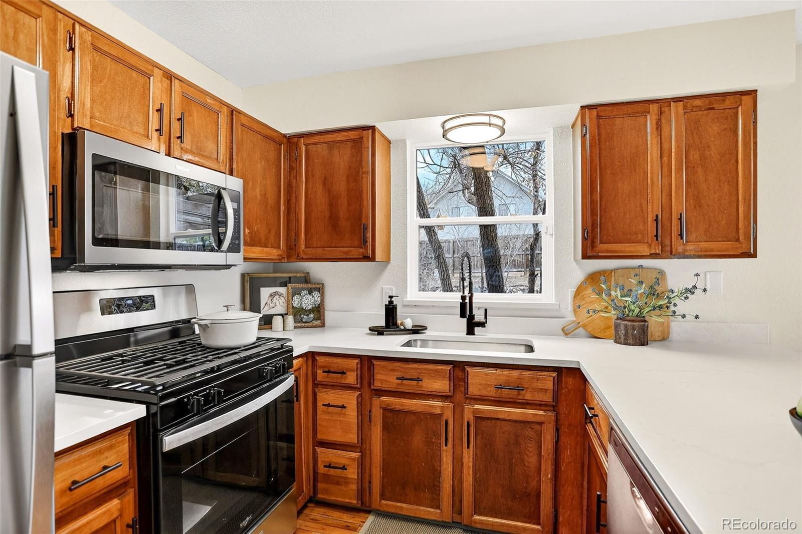Welcome to this updated 3-bedroom, 1.5-bathroom single-family brick home located in the highly desirable Pride’s Crossing neighborhood, within the acclaimed Cherry Creek School District. This charming property offers the perfect blend of comfort, convenience, and valuable updates. Inside, the home features a spacious, light-filled layout with a cozy fireplace, central air conditioning, and generously sized bedrooms—several with vaulted ceilings. Recent improvements include new interior paint, new quartz kitchen countertops and stainless-steel appliances, new carpet, new ceiling fans/modern lighting, updated bathrooms and MORE! Step outside to discover a large fully fenced backyard with mature landscaping, deck and a patio. This space is perfect for outdoor dining, entertaining, or simply enjoying Colorado’s beautiful seasons. A 1-car attached garage adds even more appeal. Ideally located near parks, trails, shopping, dining, Southlands Mall, Smoky Hill Library, Cherry Creek State Park, and major commuter routes, this home offers an unbeatable combination of lifestyle and location.