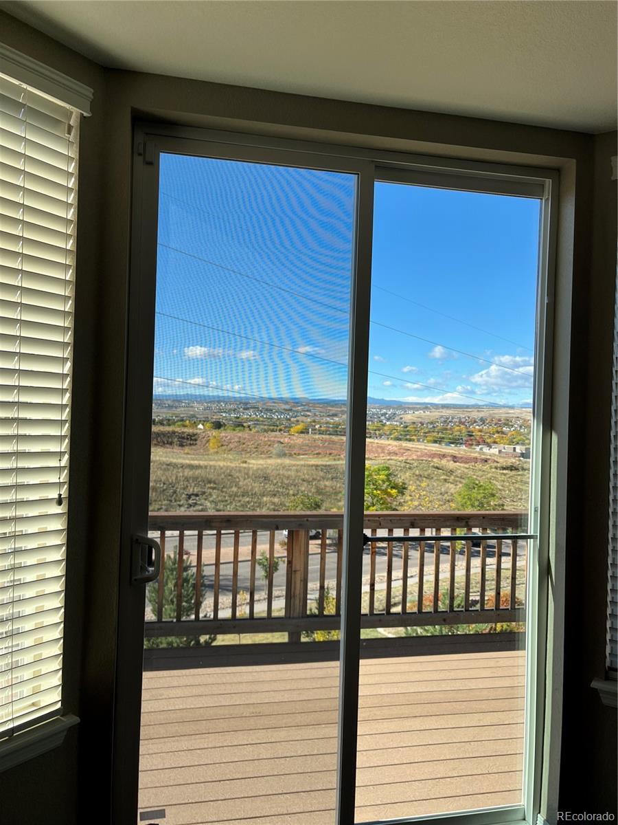 This beautiful 4 bd 5 bath home sits high and has amazing mountain views with a 3 car Garage tandum. The home is designed thoughtfully featuring a private office on the main level, that flows into the living room with a fire place. It has an amazing kitchen with a dinning area that creates a seamless space for entertaining. There are high ceilings with lots of windows that makes the home bright and open. The main floor has a laundry room with utility sink & a half bath. The primary bedroom has large suite with a walk in closet and 5 piece bathroom. The second bedroom has a full bathroom. The 3rd and 4th bedroom share a full bathroom. It has an impressive basement that includes a bar, cabinets, full size refrigerator (second), high ceilings, 3/4 bath and a storage room. This walkout basement heads to the covered back patio and has a nice landscaped backyard with great views. This home is located near shopping centers and great restaurants. It is close to two major highways I25 and C470 as well.